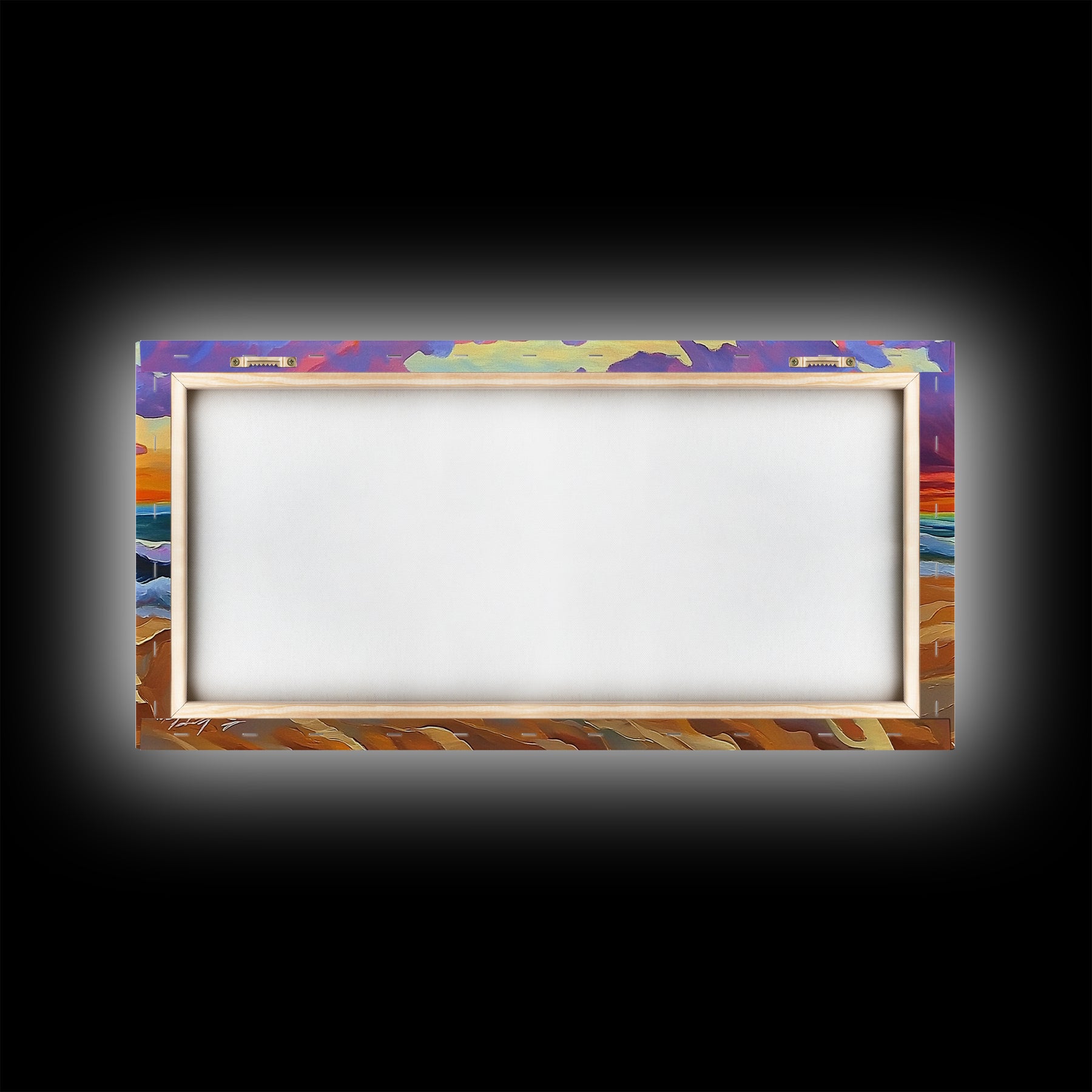 Beach Wagon, Sunset, Decor, Framed Canvas Print western wall art, desert decor, living room boho art, rustic coastal art, beach house
