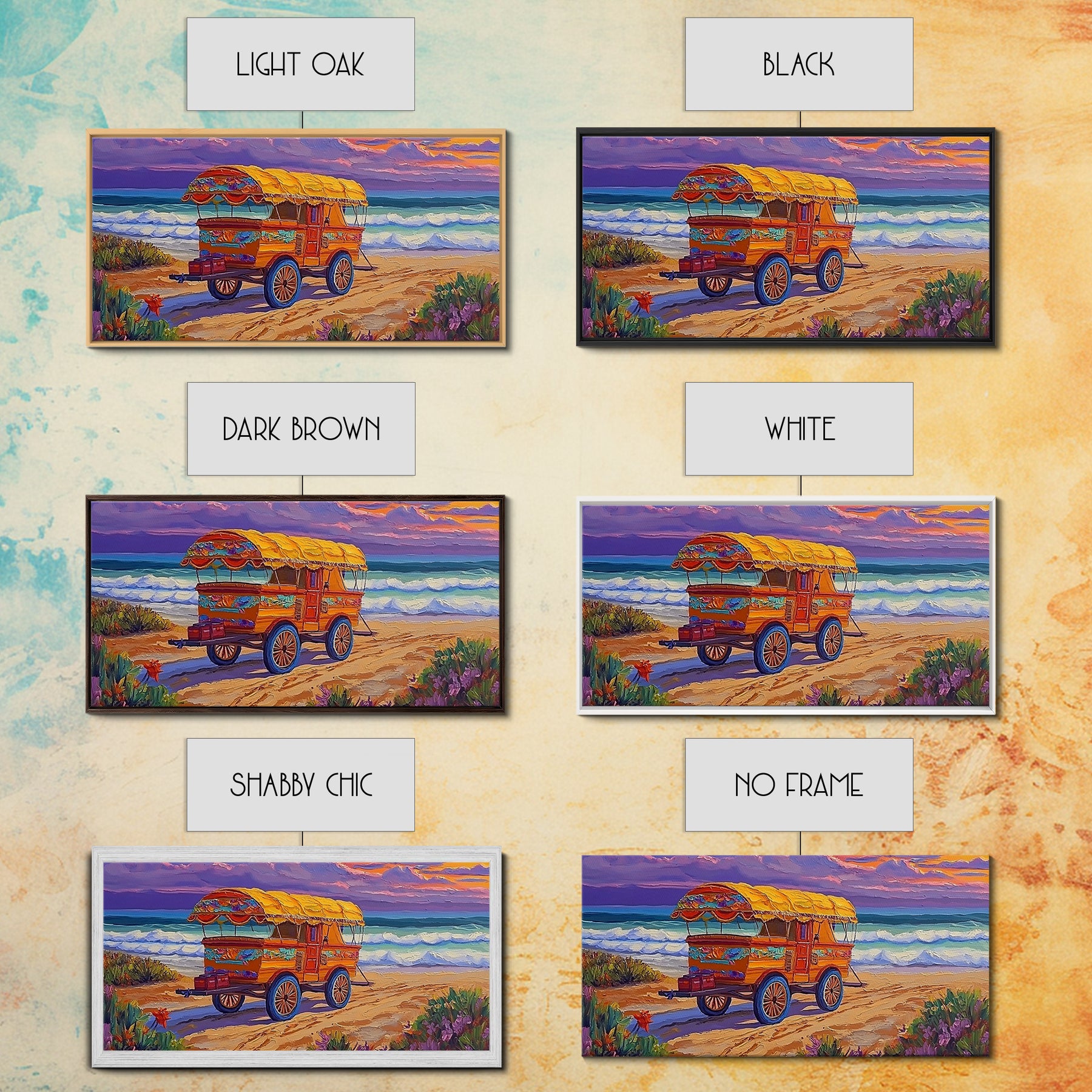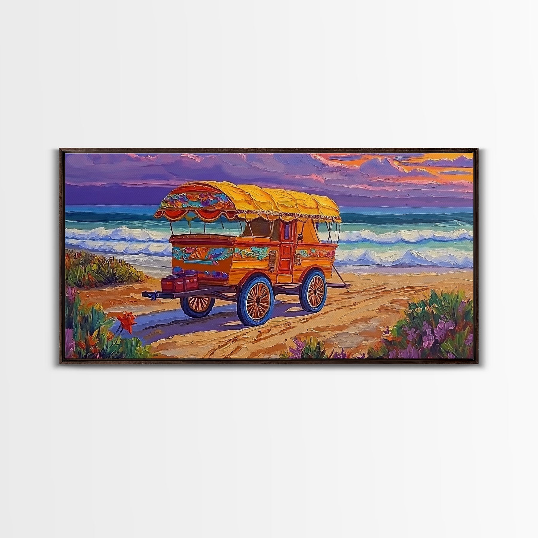 Beach Wagon, Sunset, Nostalgia, Canvas Print vintage coastal travel art Living Room Wall Art boho beach scene summer home vibe