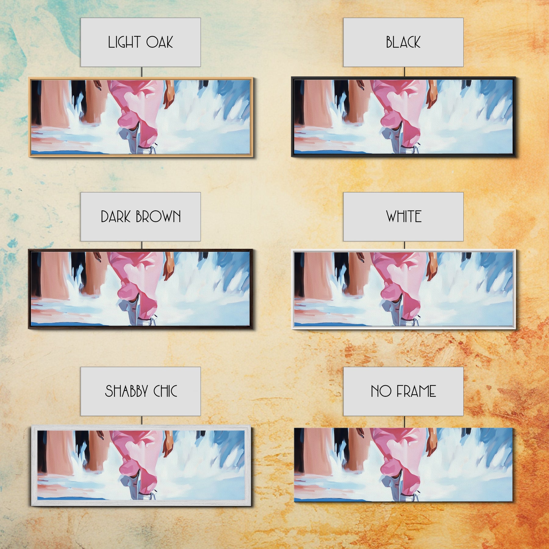 *Optional frames add a total of 1.5 inches to each dimension, for example a 10x20 canvas with a frame will be 11.5 by 21.5 inches total. All framed canvas are 1.5" total depth.