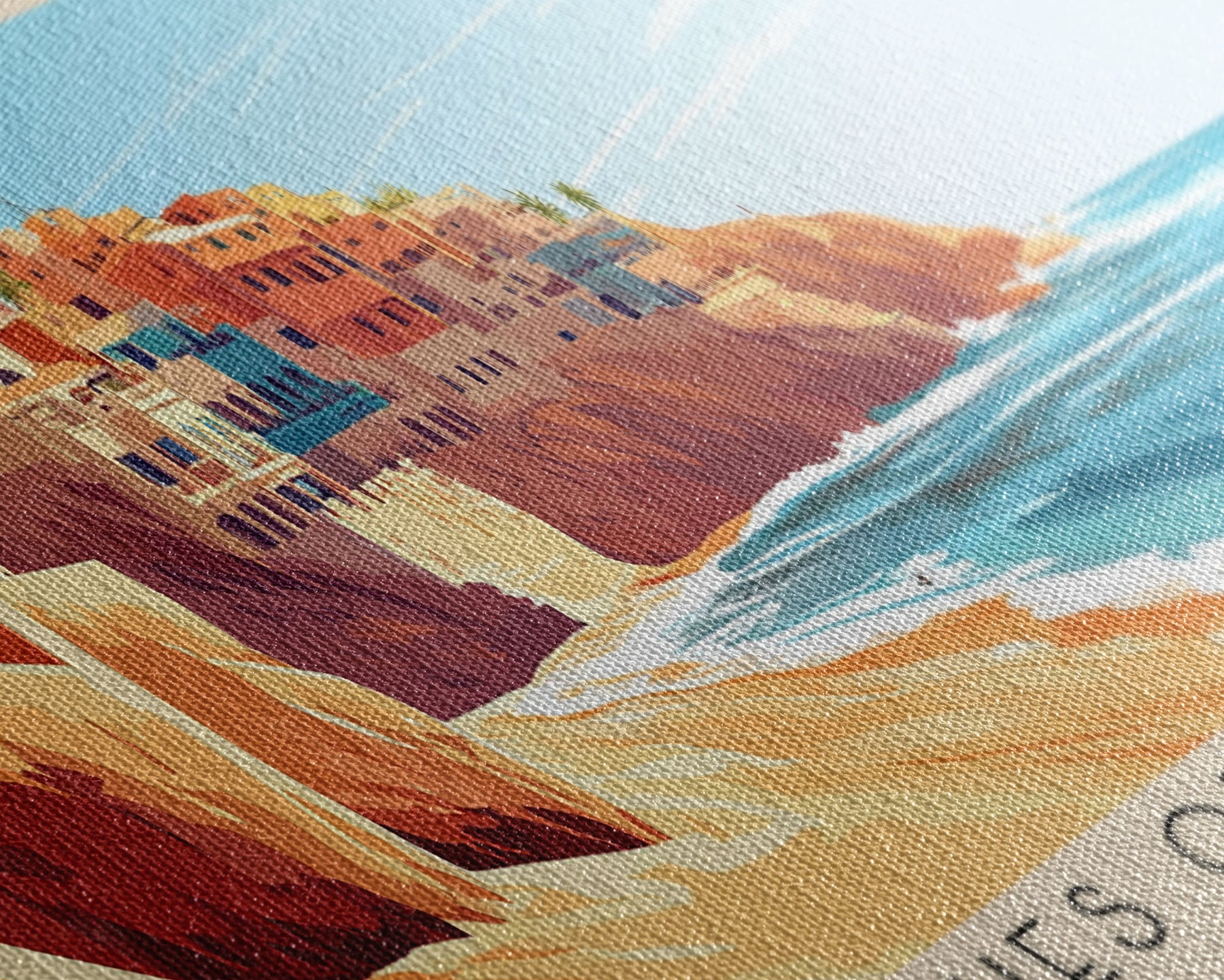 Most of our canvases are made in the USA, with the exception of canvases ordered with the light oak unstained frames, and any large canvases (24x48, 30x60, 16x48 and 20x60) ordered WITH a frame. These are temporarily made in and shipped from Europe, while we try to find a more consistent supplier in the USA.