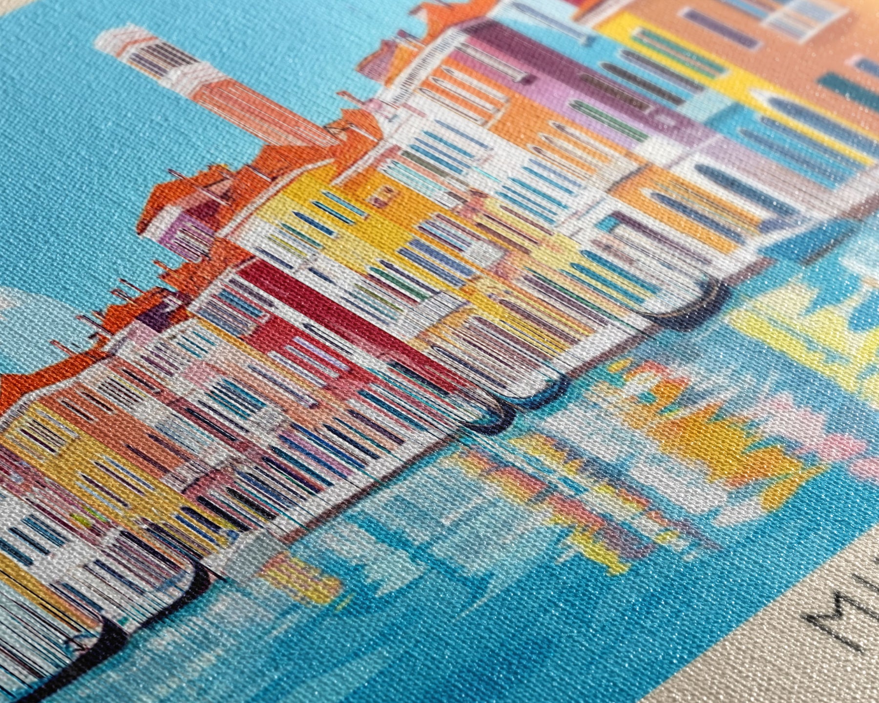 Most of our canvases are made in the USA, with the exception of canvases ordered with the light oak unstained frames, and any large canvases (24x48, 30x60, 16x48 and 20x60) ordered WITH a frame. These are temporarily made in and shipped from Europe, while we try to find a more consistent supplier in the USA.