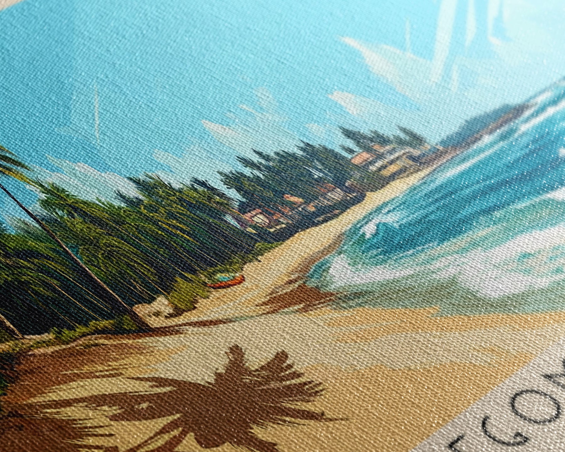 Most of our canvases are made in the USA, with the exception of canvases ordered with the light oak unstained frames, and any large canvases (24x48, 30x60, 16x48 and 20x60) ordered WITH a frame. These are temporarily made in and shipped from Europe, while we try to find a more consistent supplier in the USA.