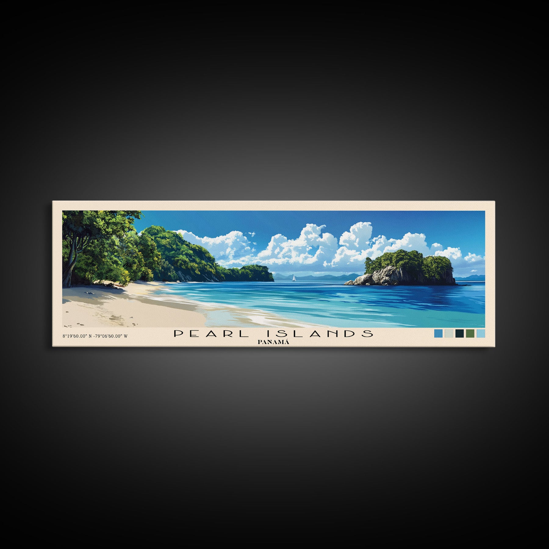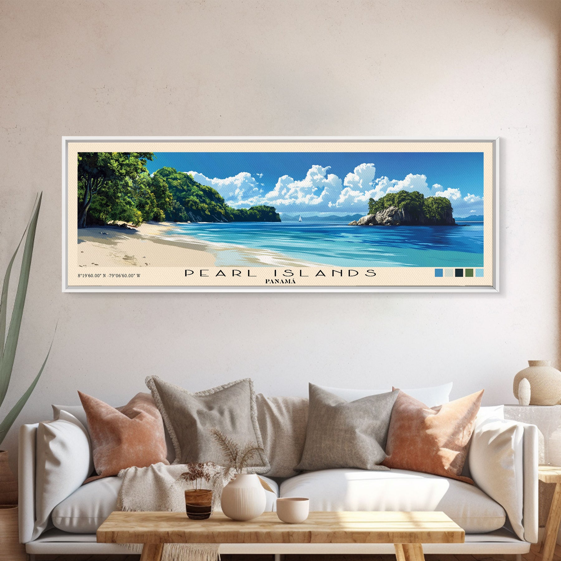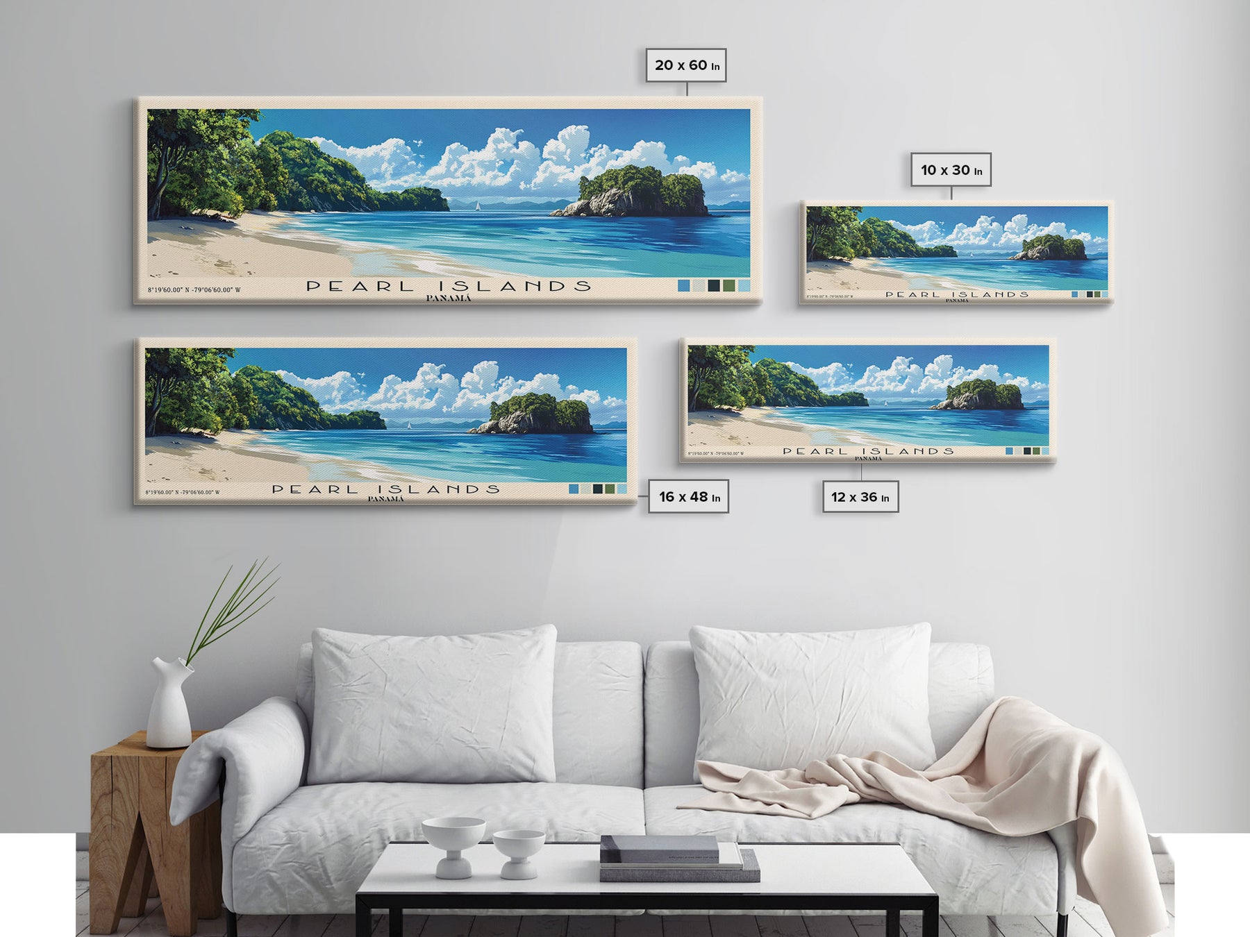 Pearl Islands, Panamá Panoramic Beach Print, Vacation Gift, Panamá Wall Art, Framed Canvas Print, Framed Beach Painting