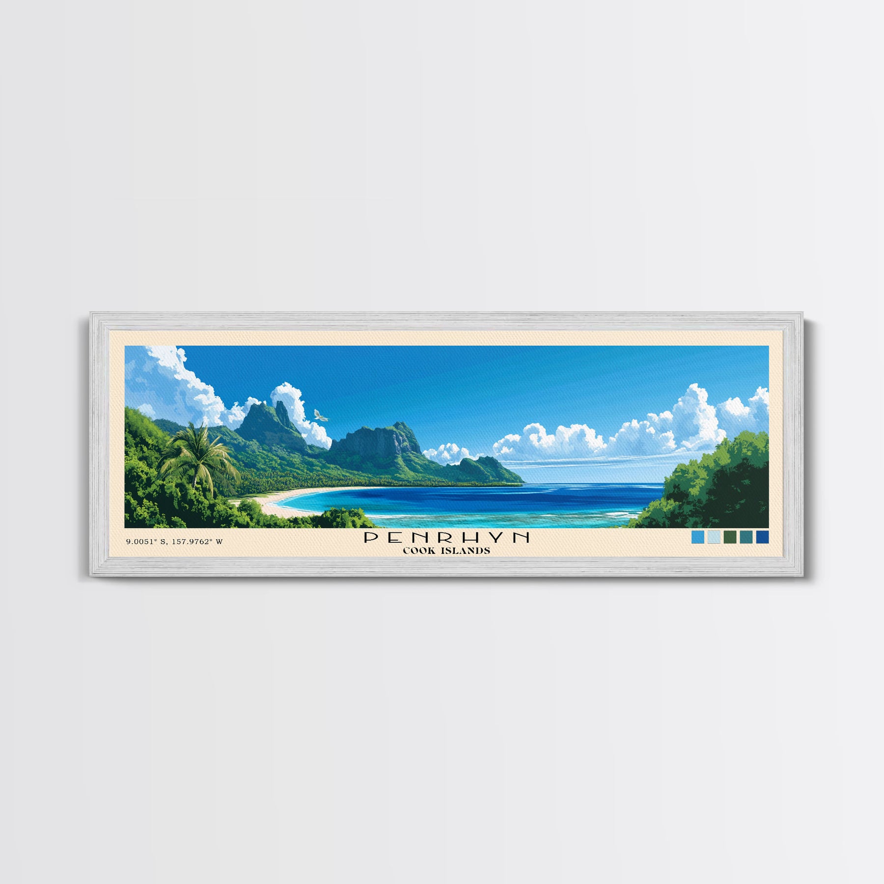 Penrhyn, Cook Islands Panoramic Beach Print, Vacation Gift, Cook Islands Wall Art, Framed Canvas Print, Framed Beach Painting