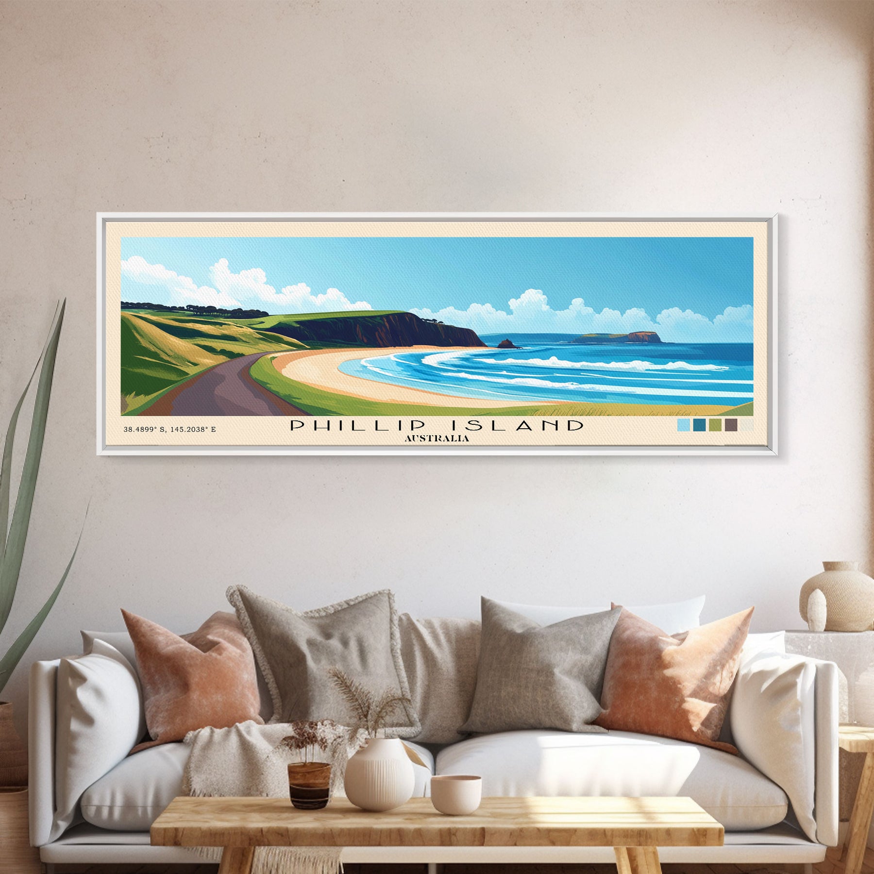 Phillip Island, Australia Panoramic Print, Vacation Gift, Australia Wall Art, Beach Painting, Beach Decor, Beach Or Lakehouse Art