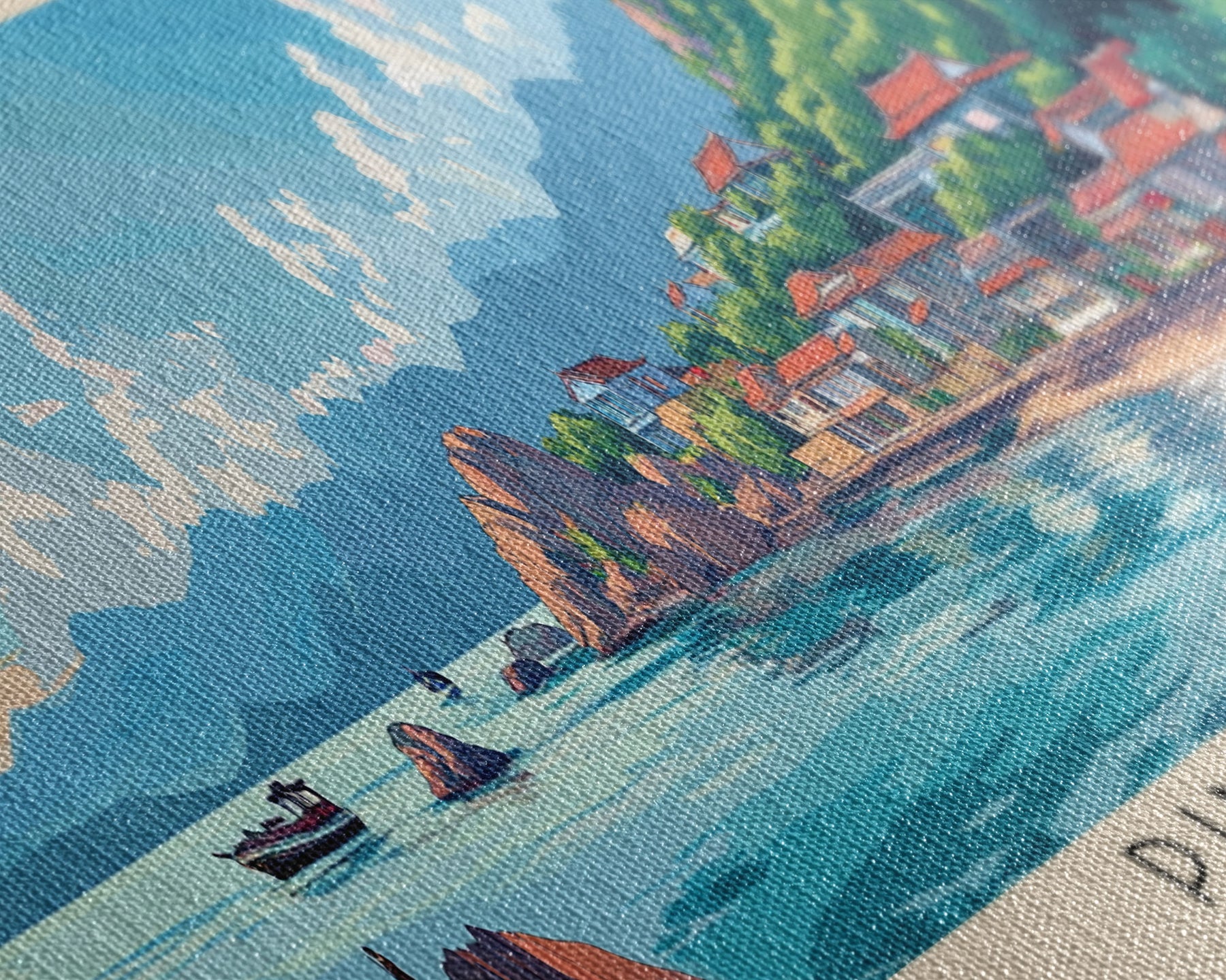Most of our canvases are made in the USA, with the exception of canvases ordered with the light oak unstained frames, and any large canvases (24x48, 30x60, 16x48 and 20x60) ordered WITH a frame. These are temporarily made in and shipped from Europe, while we try to find a more consistent supplier in the USA.