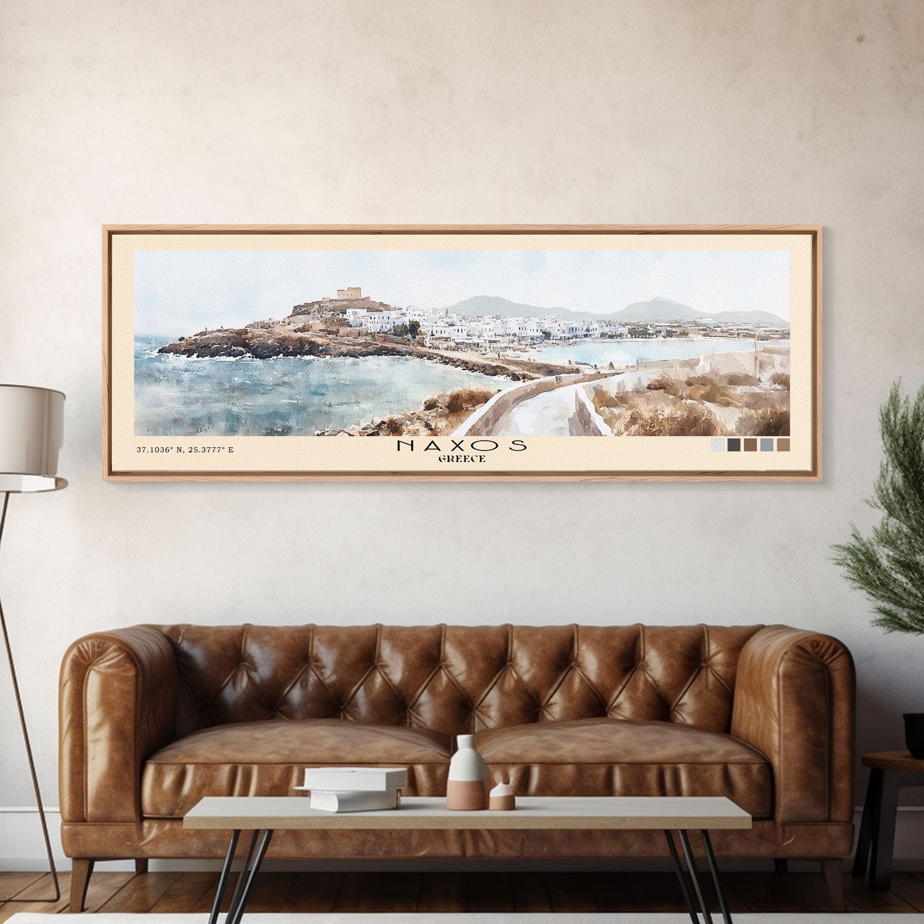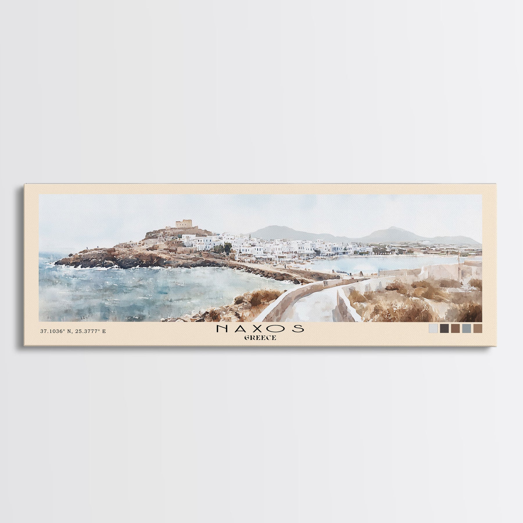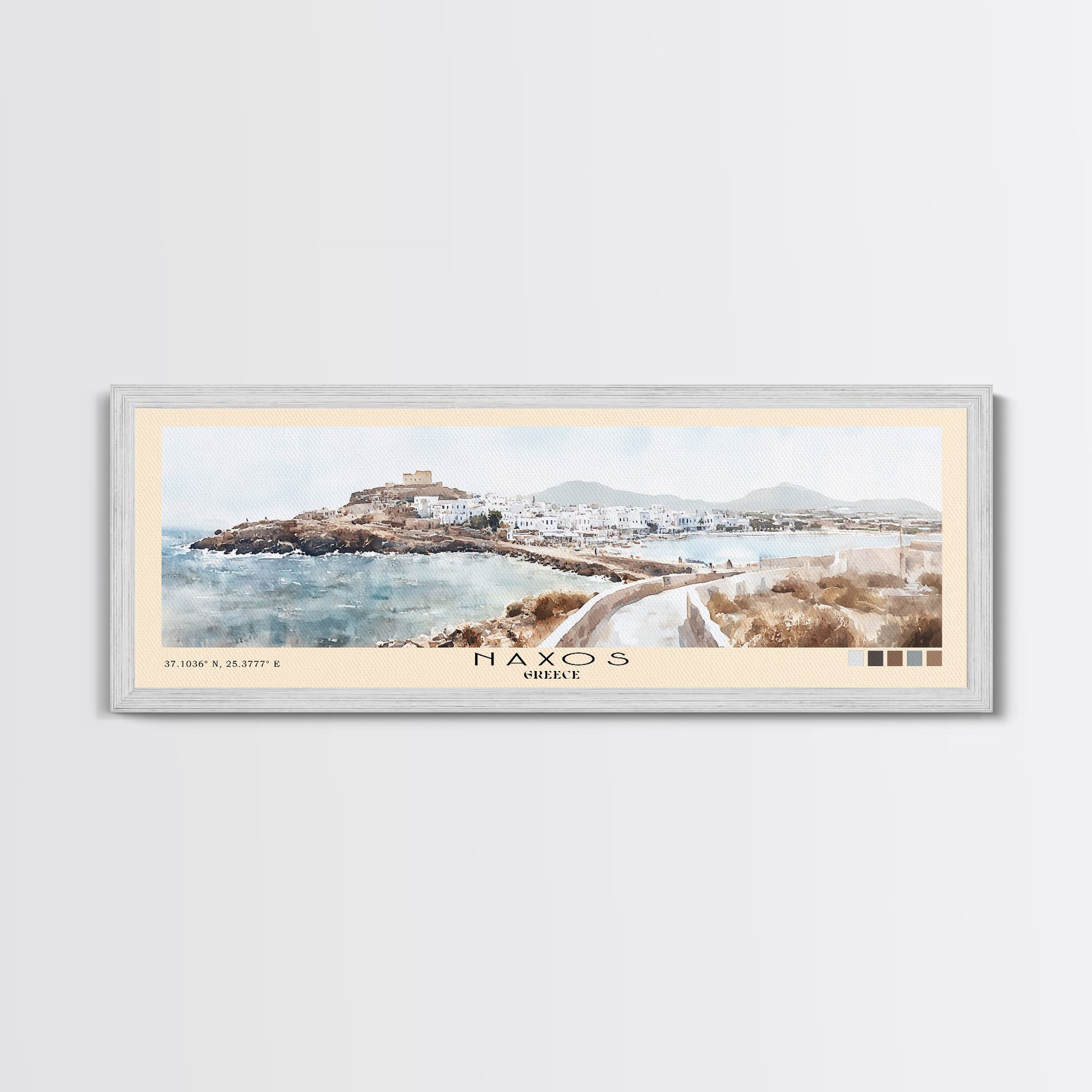Naxos, Greece Watercolor Beach Print, Vacation Gift, Greece Wall Art, Framed Canvas Print, Framed Beach Painting