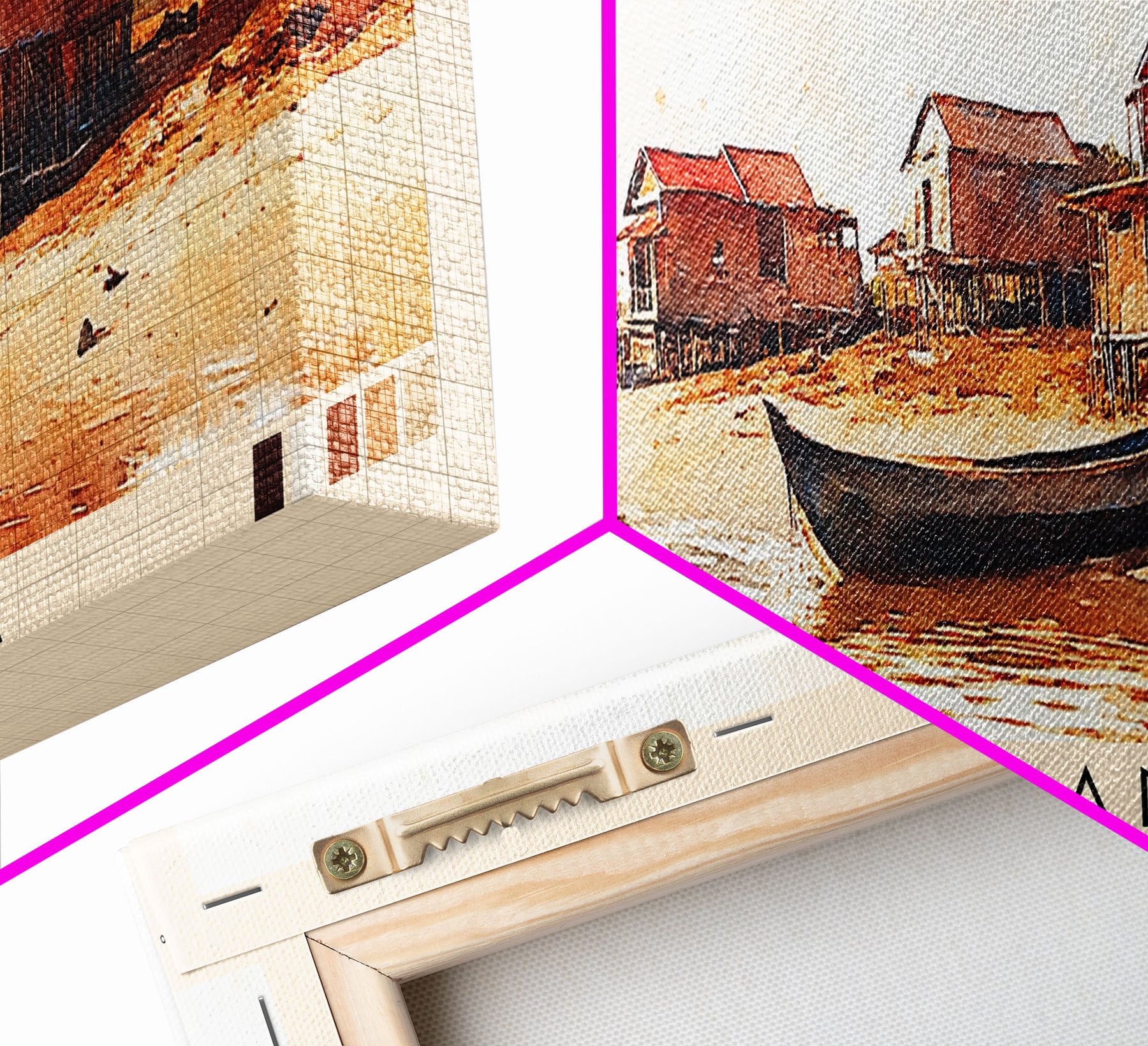 Most of our canvases are made in the USA, with the exception of canvases ordered with the light oak unstained frames, and any large canvases (24x48, 30x60, 16x48 and 20x60) ordered WITH a frame. These are temporarily made in and shipped from Europe, while we try to find a more consistent supplier in the USA.