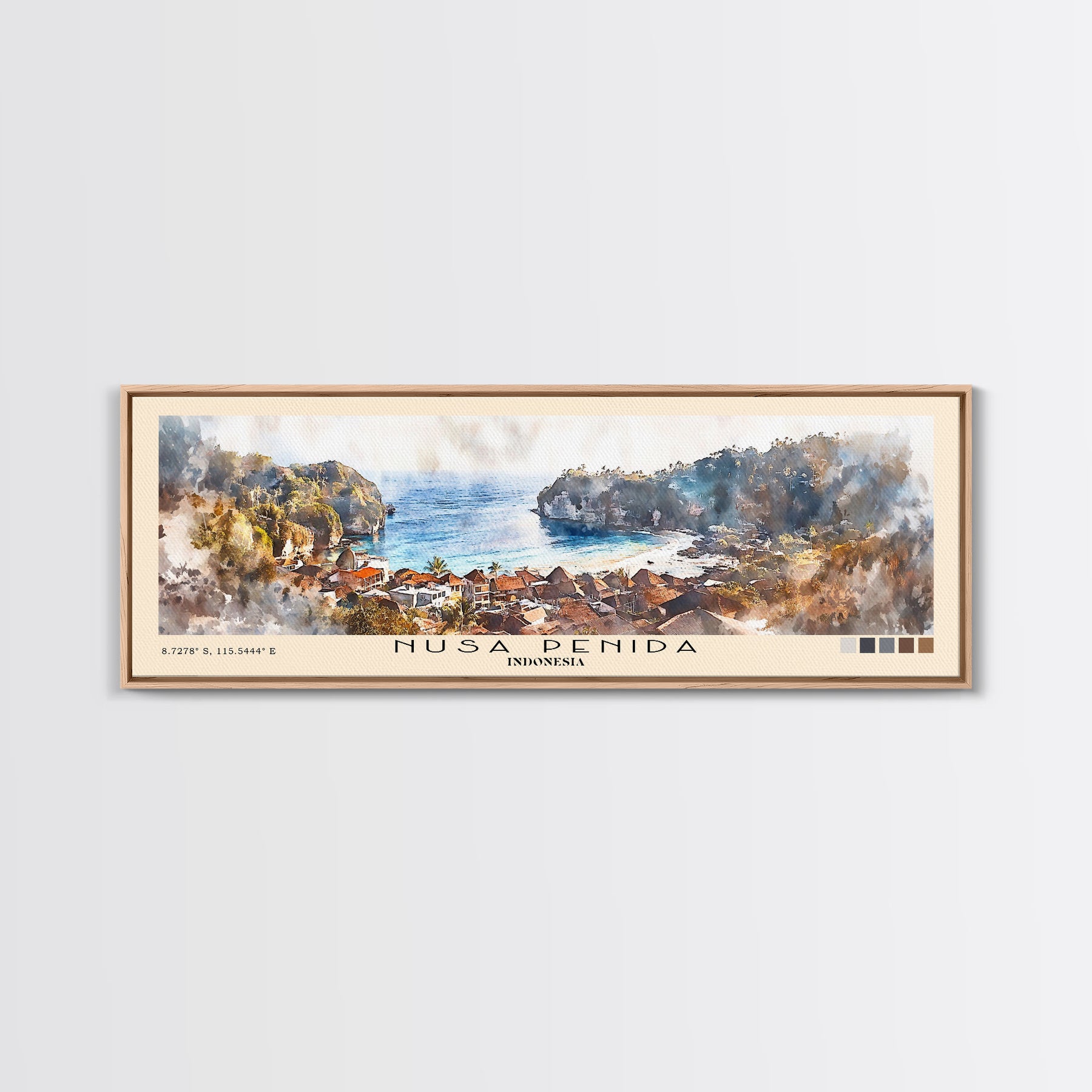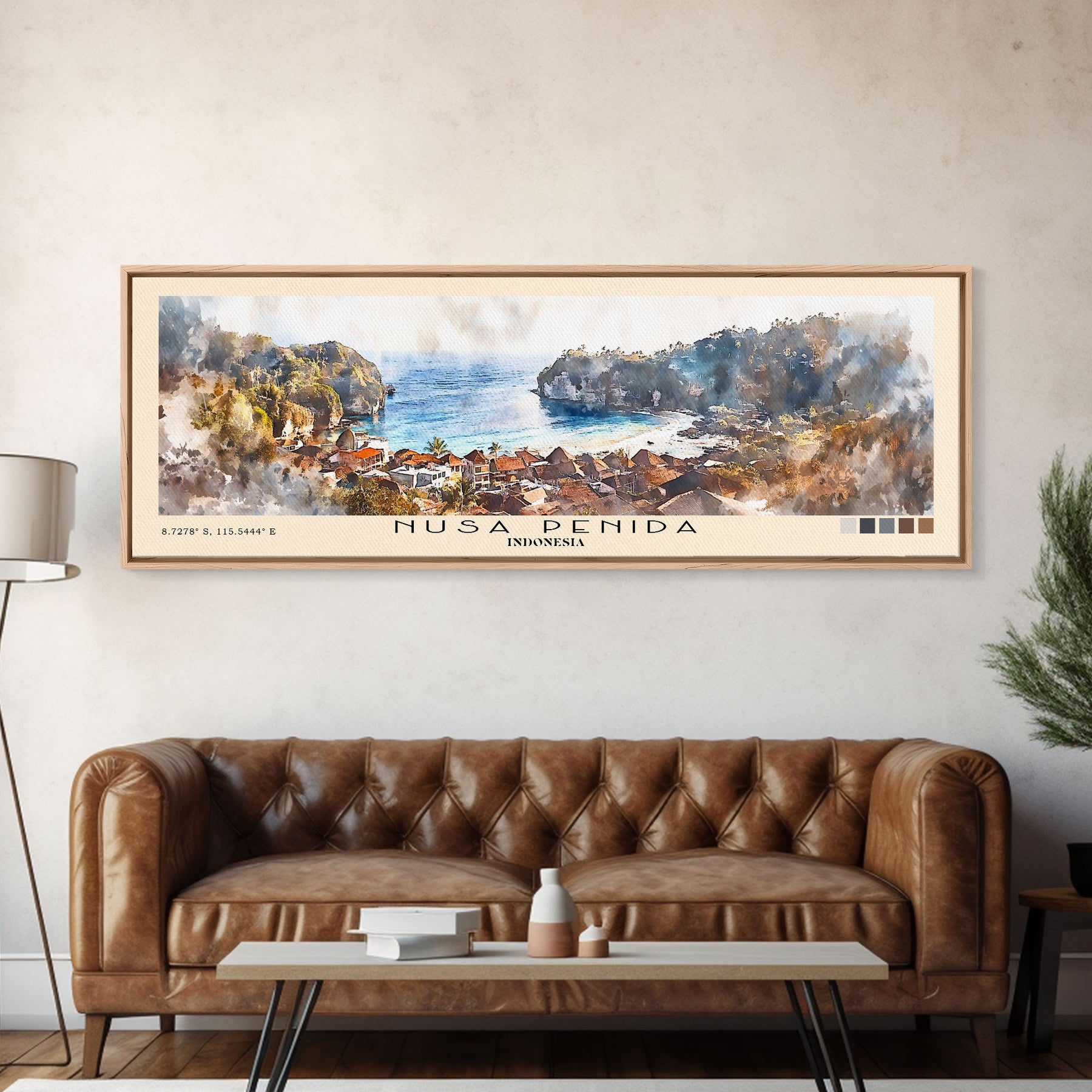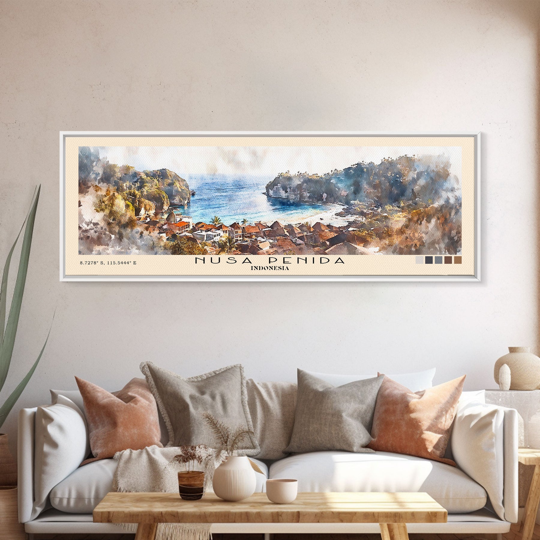 Nusa Penida, Indonesia Watercolor Beach Print, Vacation Gift, Indonesia Wall Art, Framed Canvas Print, Framed Beach Painting