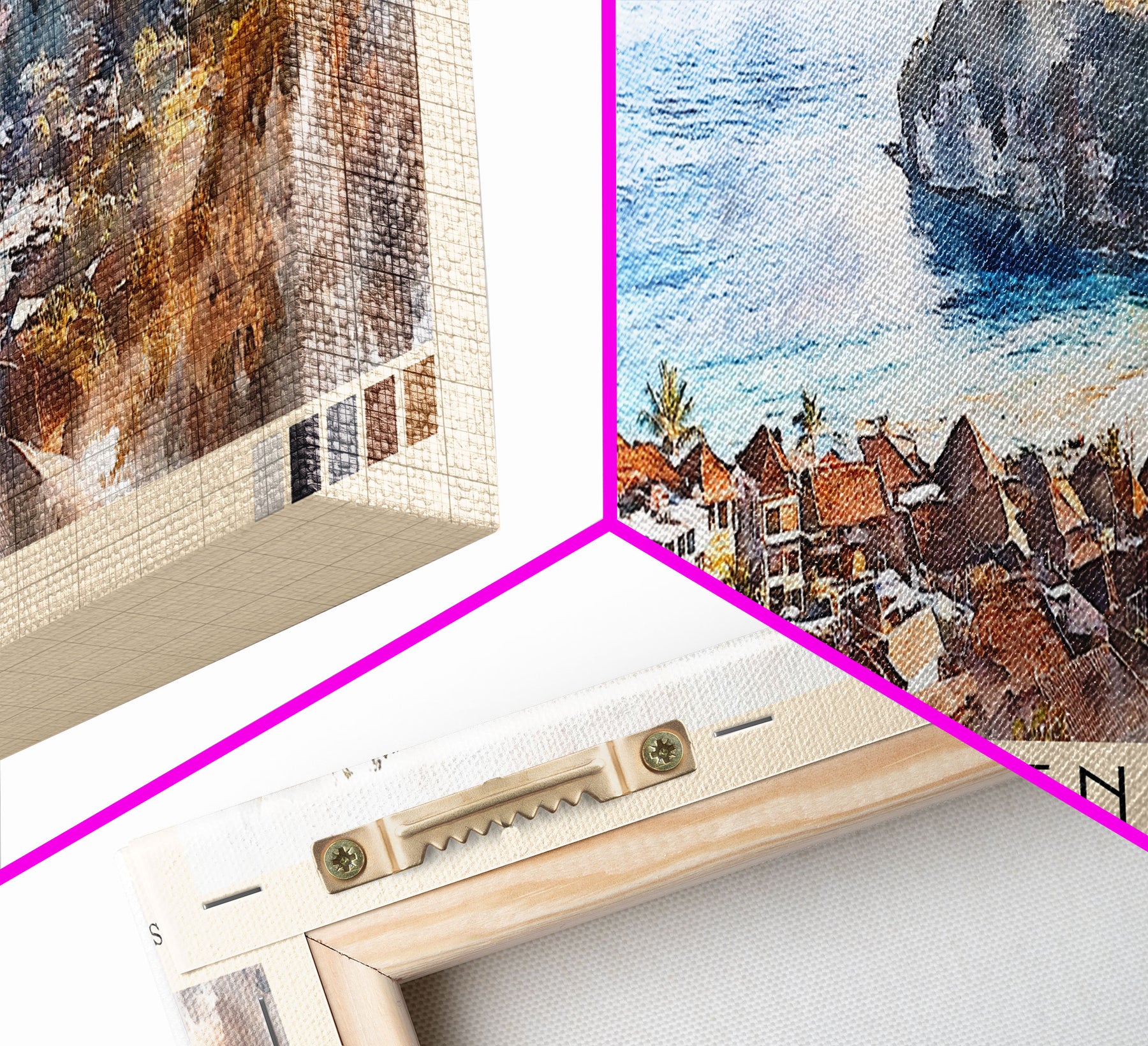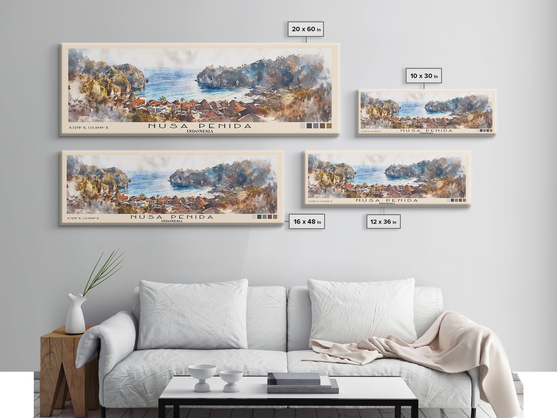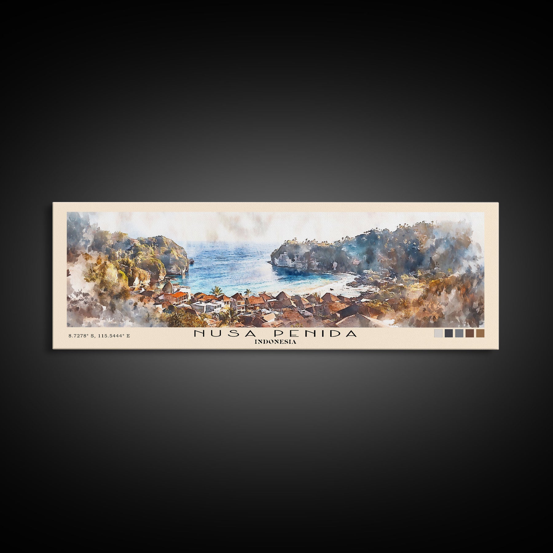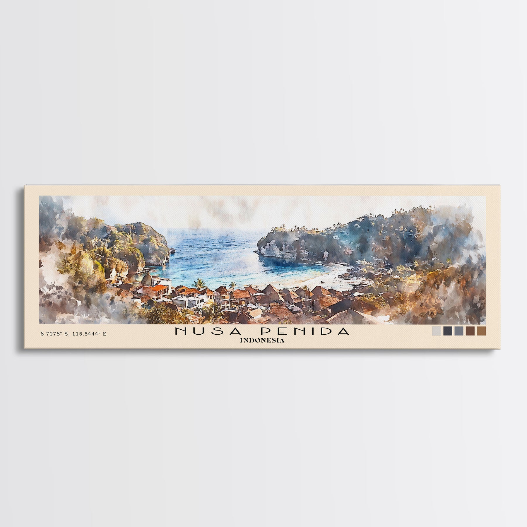 Nusa Penida, Indonesia Watercolor Beach Print, Vacation Gift, Indonesia Wall Art, Framed Canvas Print, Framed Beach Painting