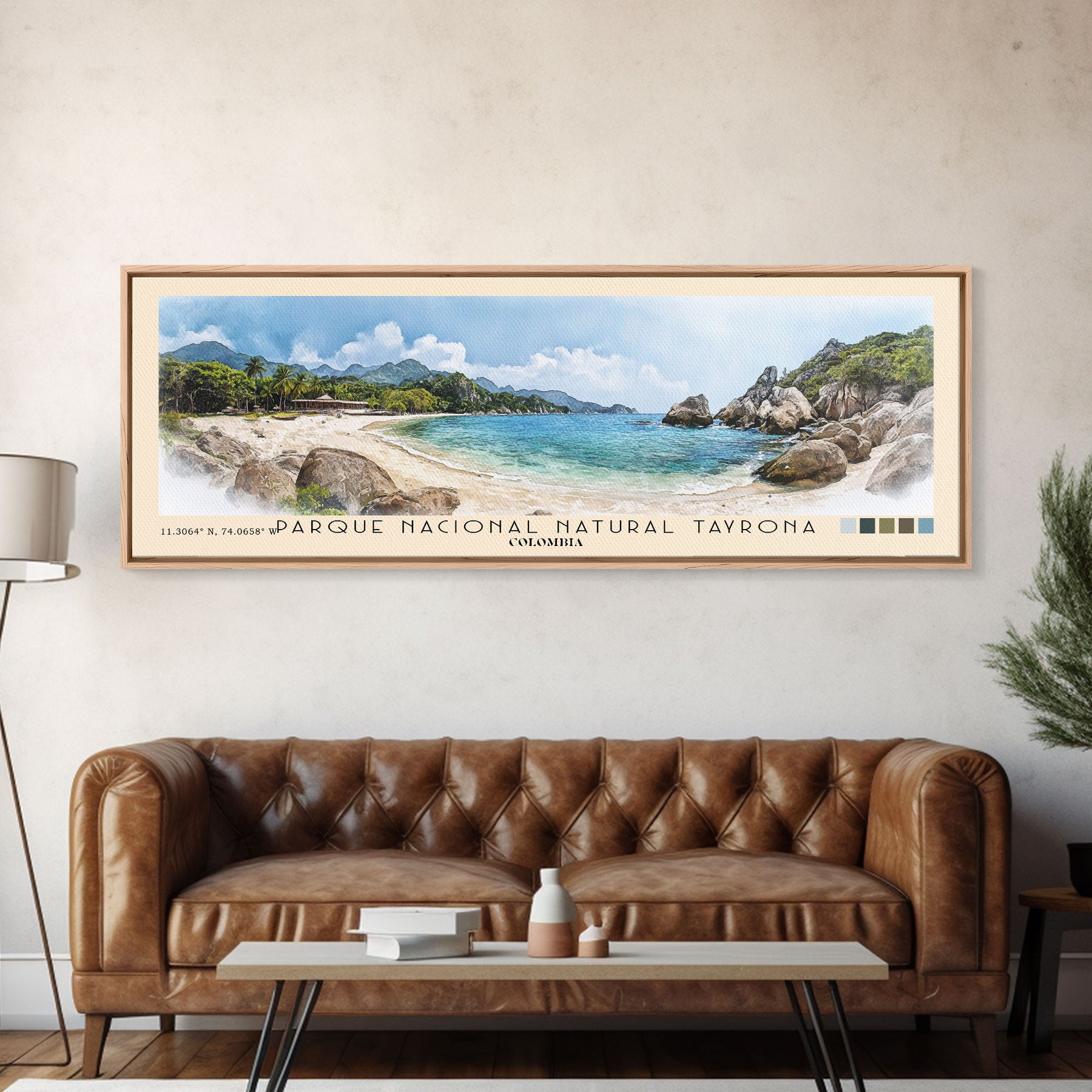 Parque Nacional Natural Tayrona, Colombia Watercolor Print, Vacation Gift, Colombia Wall Art, Beach Painting, Beach Decor, Large Wall Art, Wood Frame Art