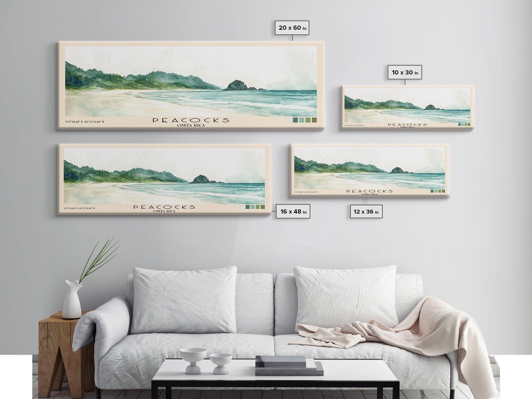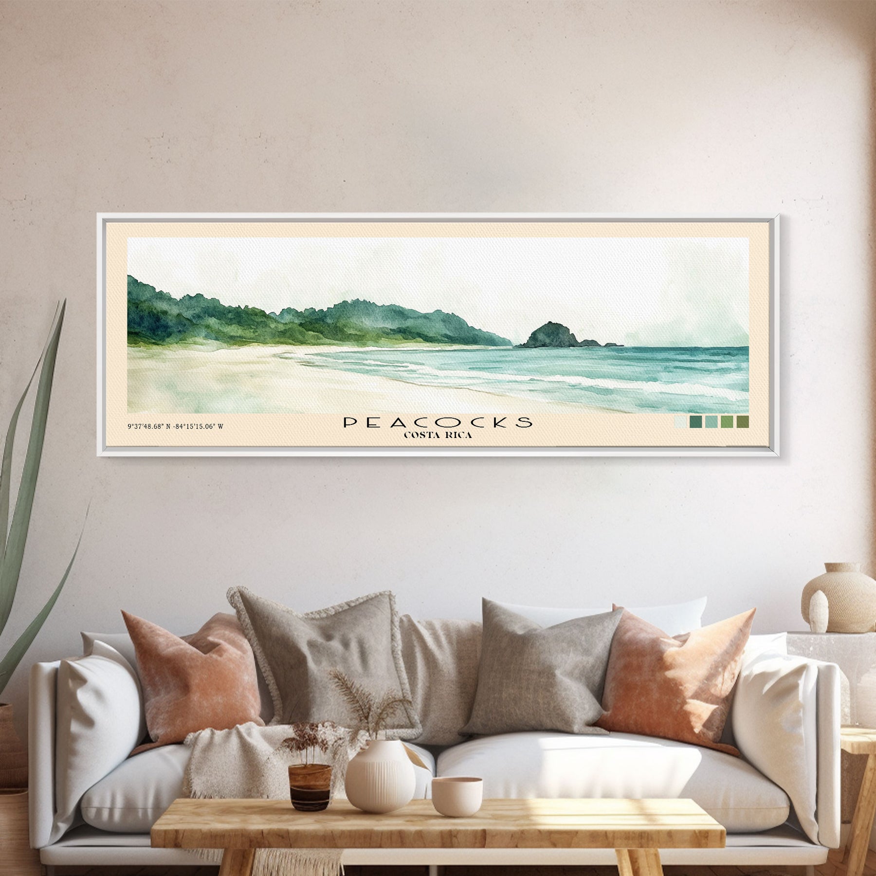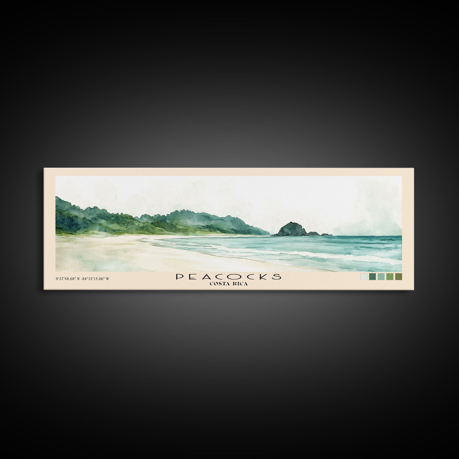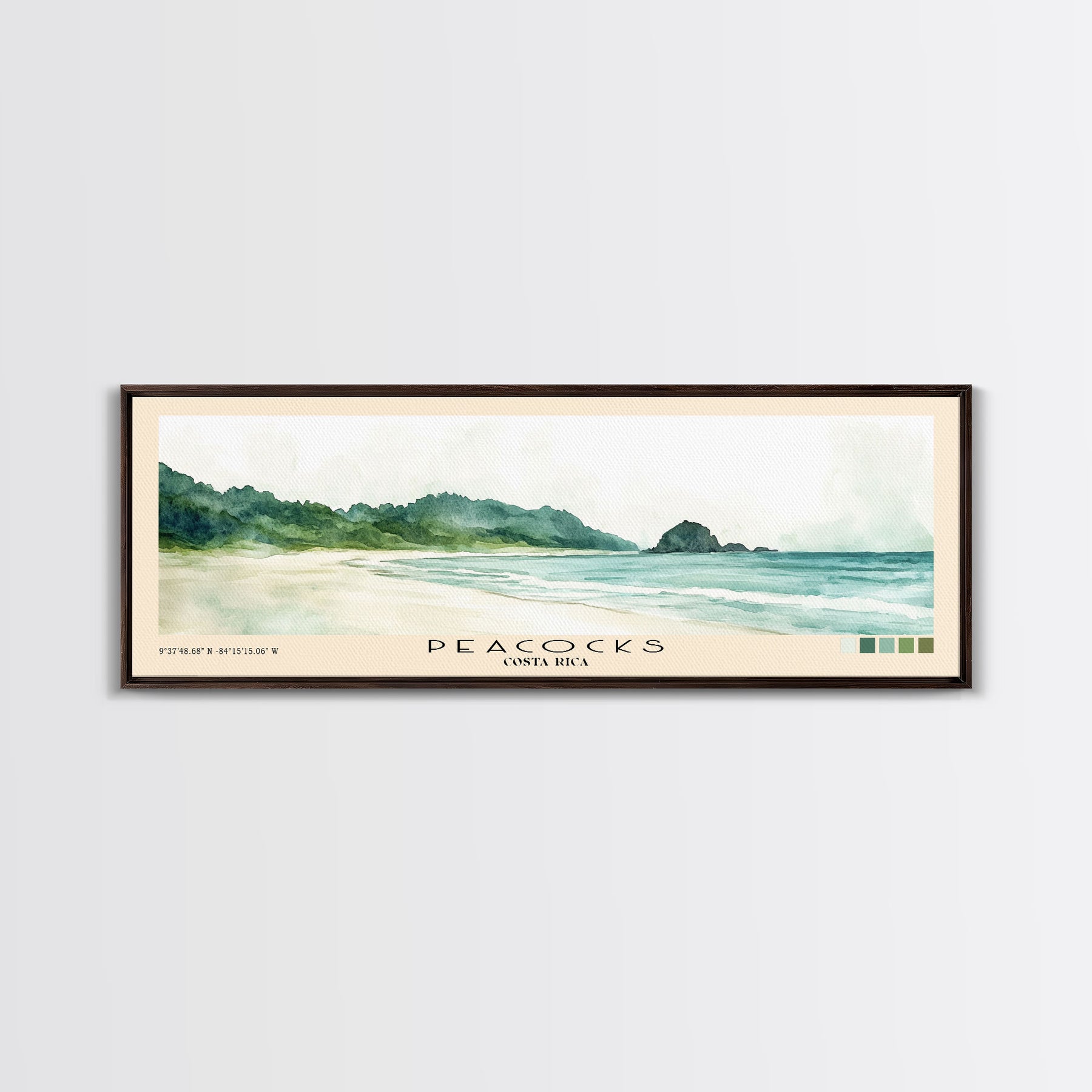 Peacocks, Costa Rica Watercolor Beach Print, Vacation Gift, Costa Rica Wall Art, Framed Canvas Print, Framed Beach Painting