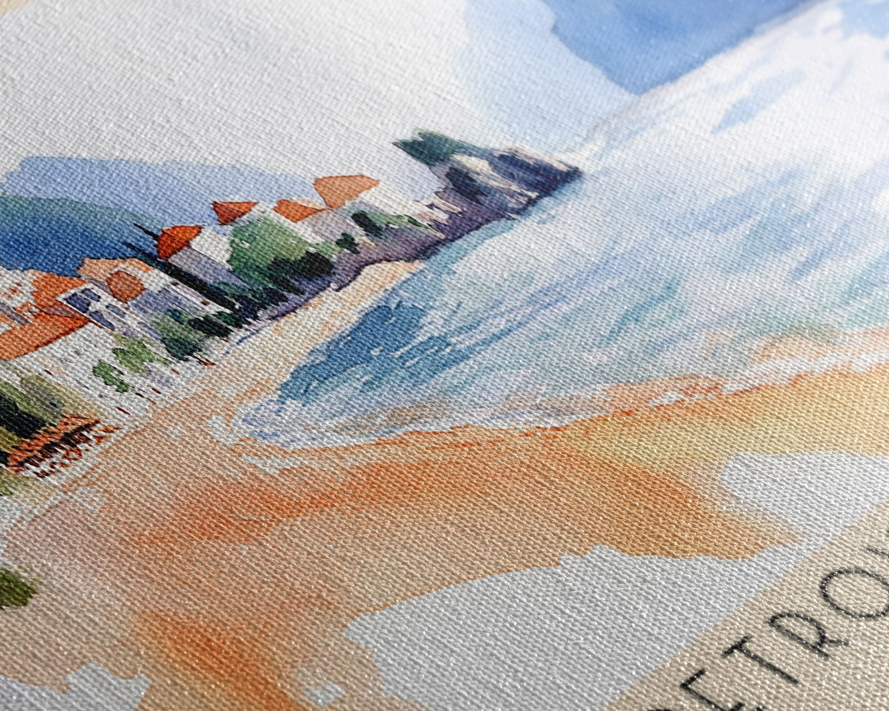 Most of our canvases are made in the USA, with the exception of canvases ordered with the light oak unstained frames, and any large canvases (24x48, 30x60, 16x48 and 20x60) ordered WITH a frame. These are temporarily made in and shipped from Europe, while we try to find a more consistent supplier in the USA.