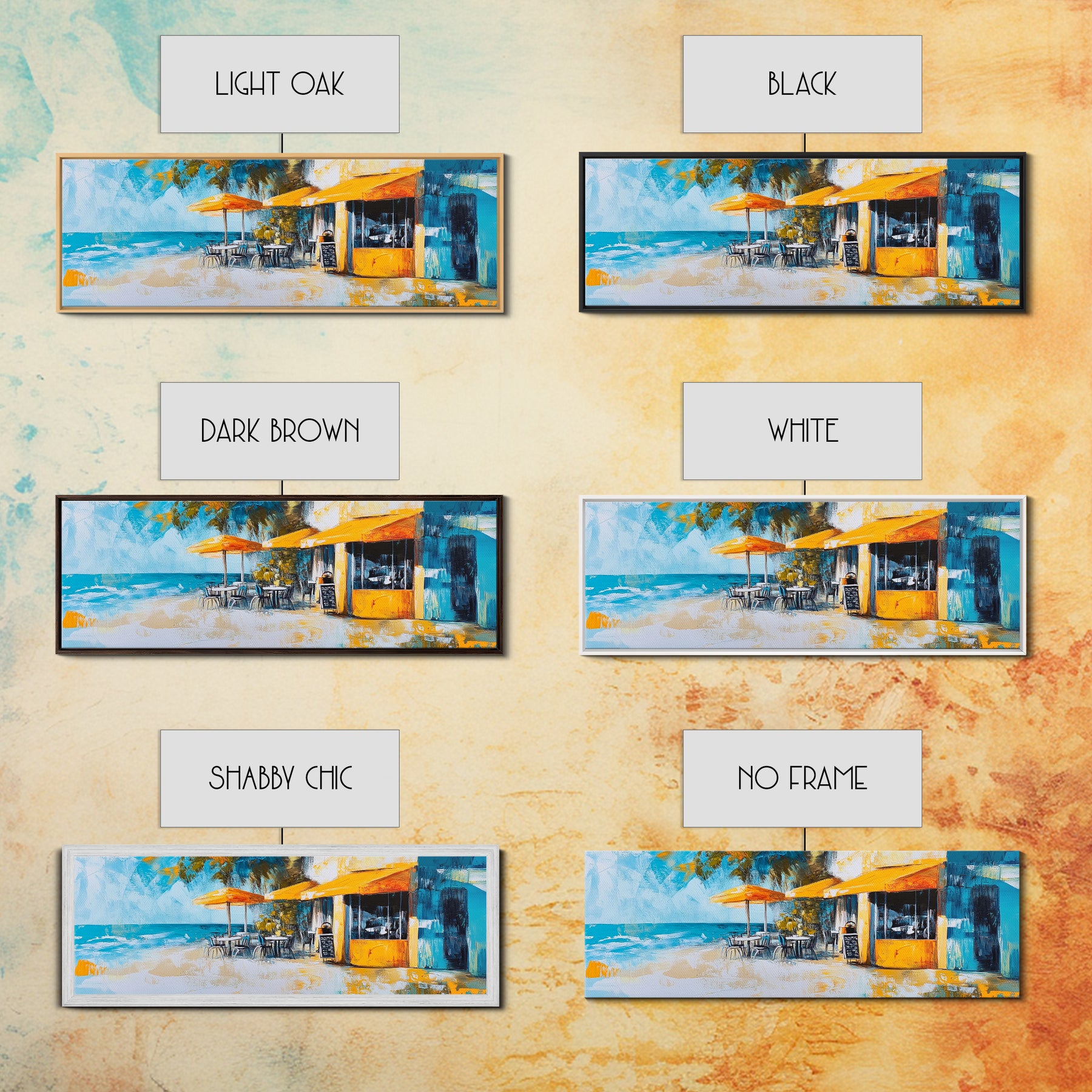 Beachfront Café Painting, Rustic Coastal Restaurant Art, Vibrant Nautical Wall Decor, Warm and Inviting Kitchen, Canvas Print