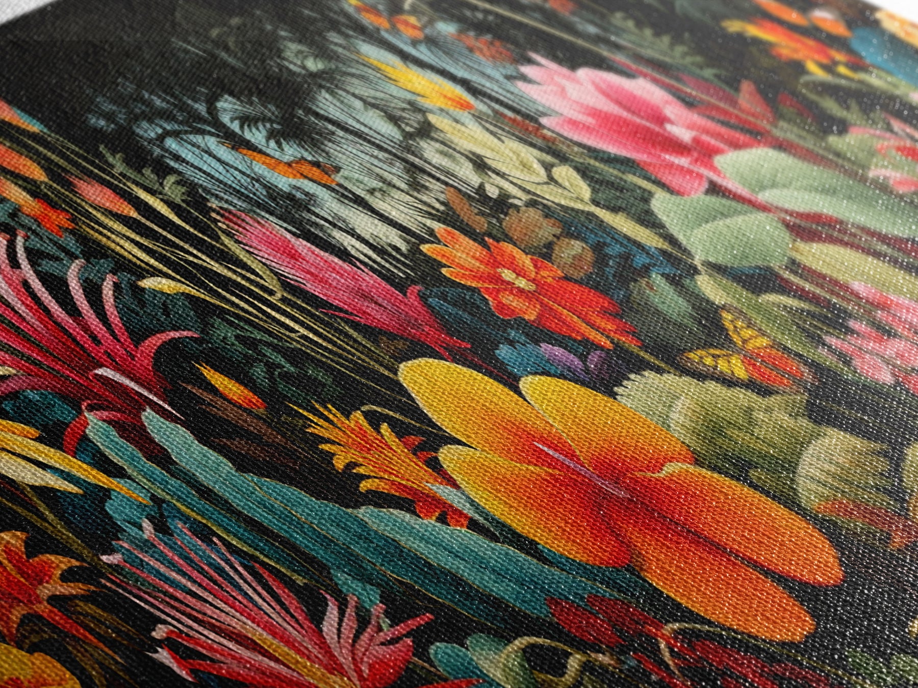 Beautiful Tropical Print "The Jungle" Framed Canvas Print, Panoramic Art, Extra Wide Wall Decor, Living Room Decor