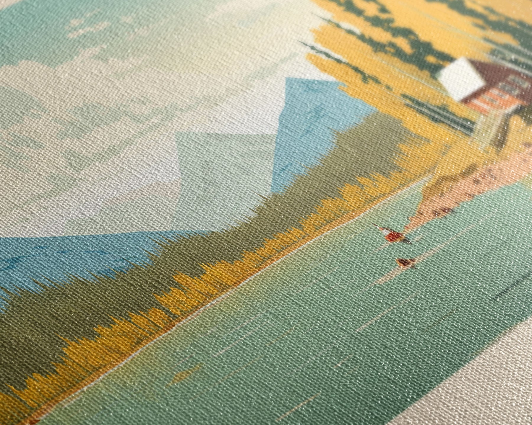 Most of our canvases are made in the USA, with the exception of canvases ordered with the light oak unstained frames, and any large canvases (24x48, 30x60, 16x48 and 20x60) ordered WITH a frame. These are temporarily made in and shipped from Europe, while we try to find a more consistent supplier in the USA.