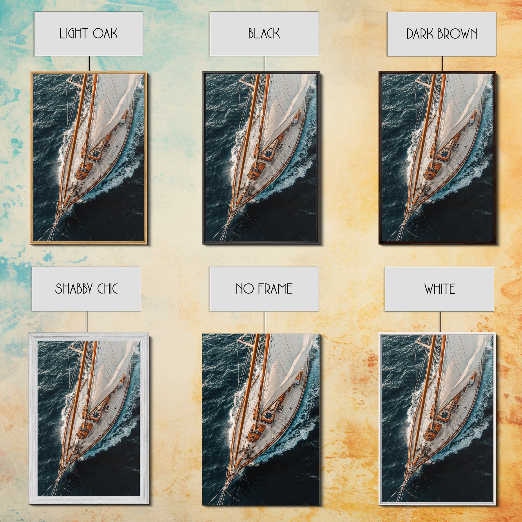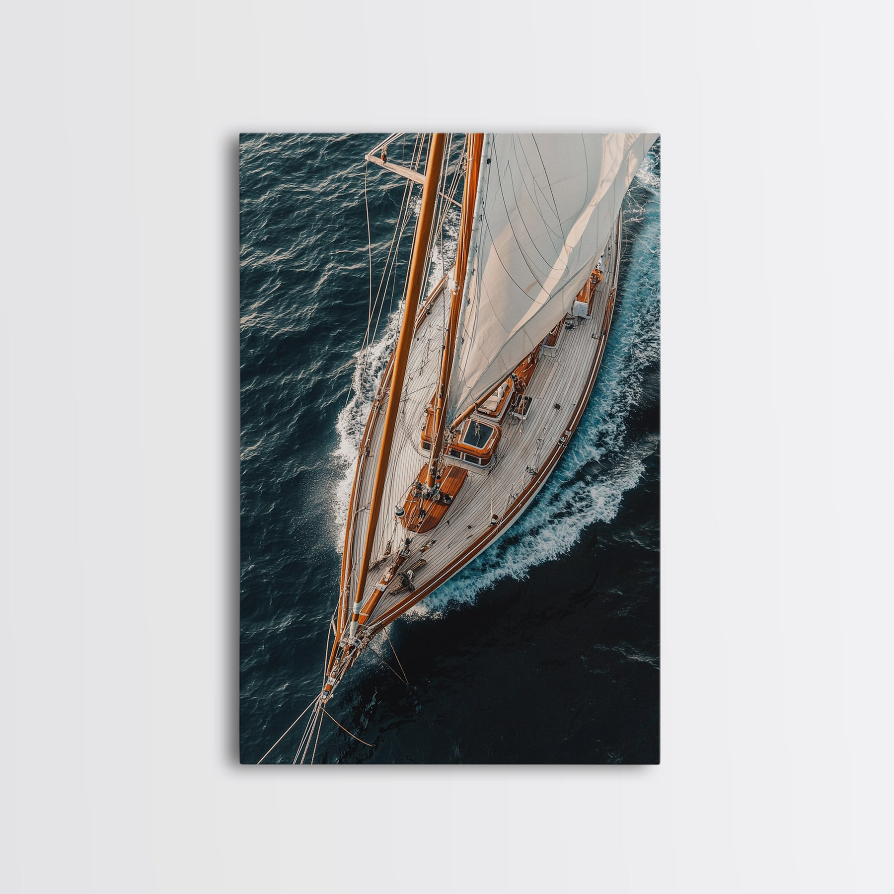 Bird's Eye View Of A Sailboat, Framed Canvas Print, Sail Boat Photography Print, Sailboat Painting, Nautical Decor, Nautical Wall Art