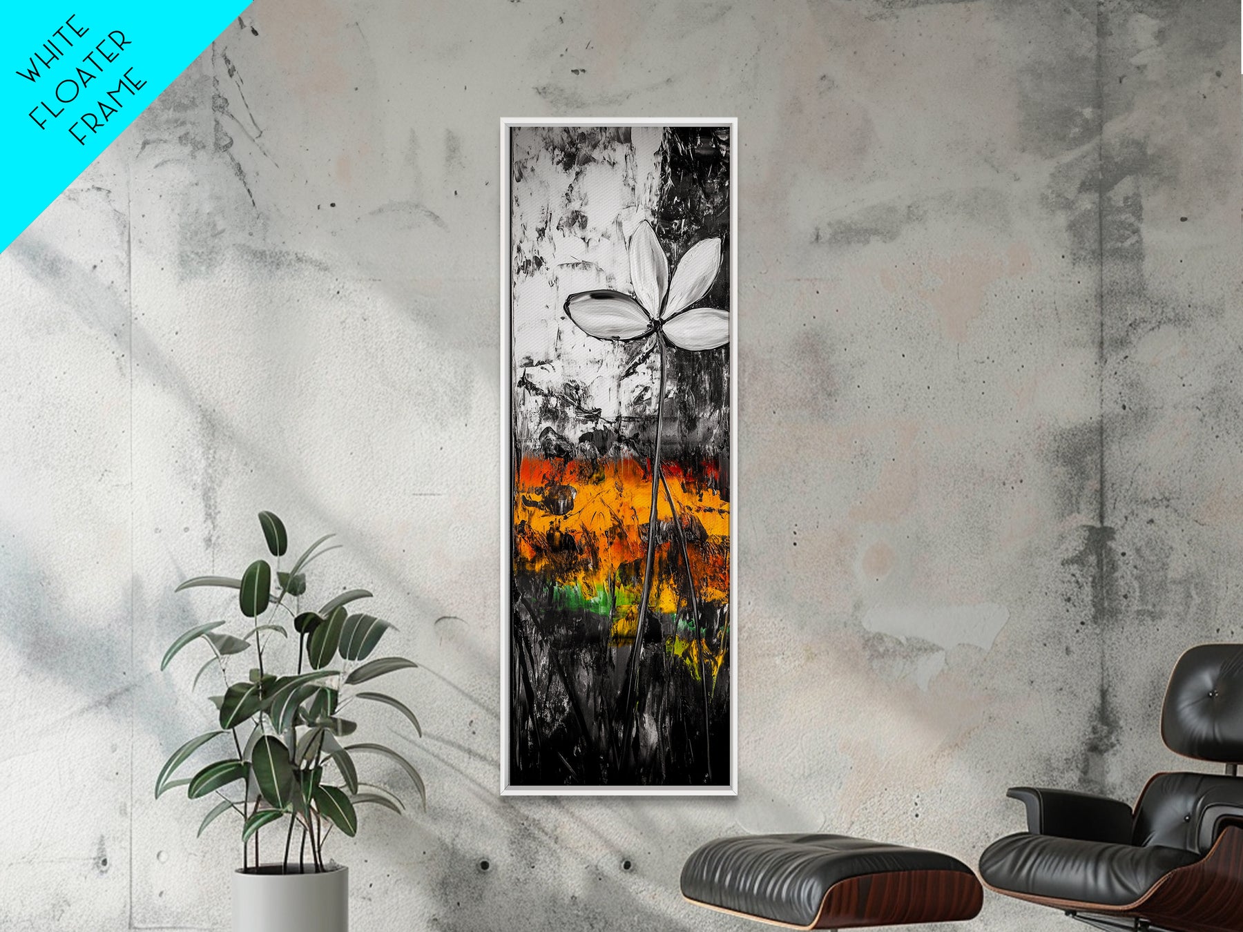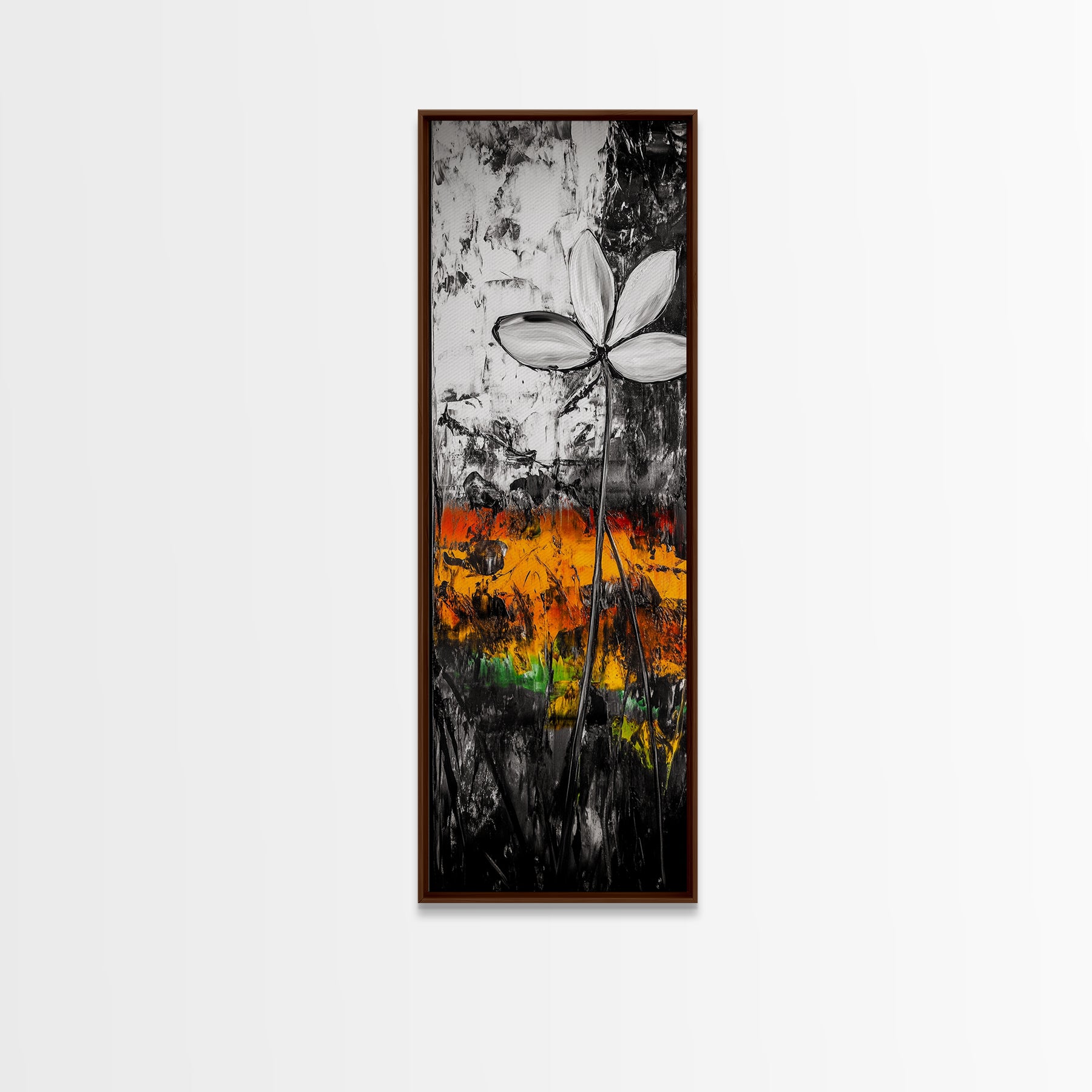 Black and White, Abstract Flower, Textured Modern, Framed Canvas Print, Minimalist Wall Art, Monochrome Decor, Office Artwork