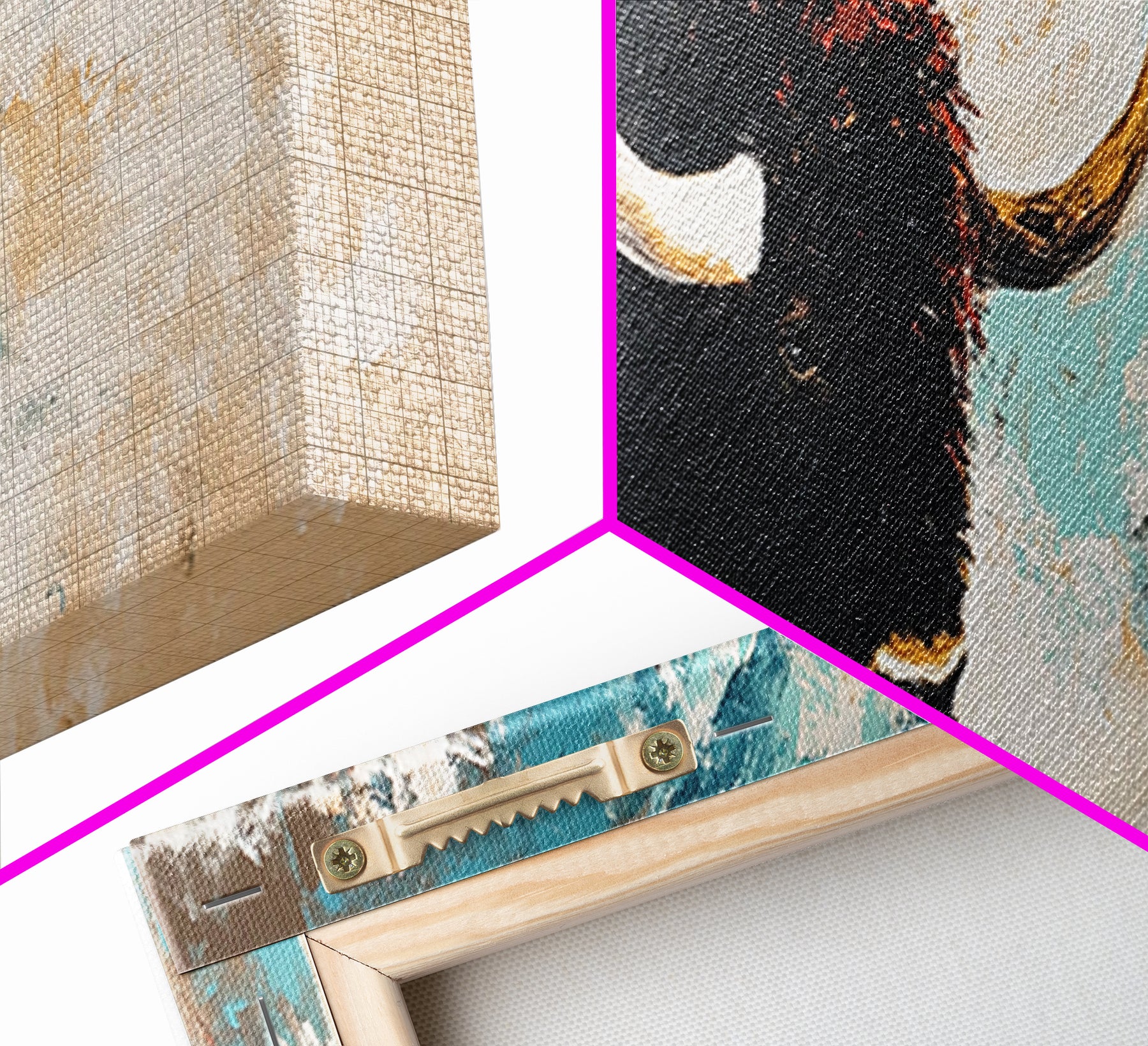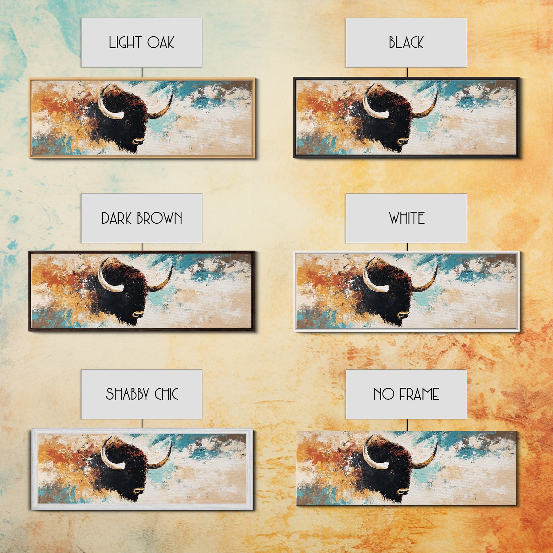 Black and White Buffalo, western wall art, rustic decor, extra wide art, moody art, minimalist painting, framed canvas print, farmhouse art