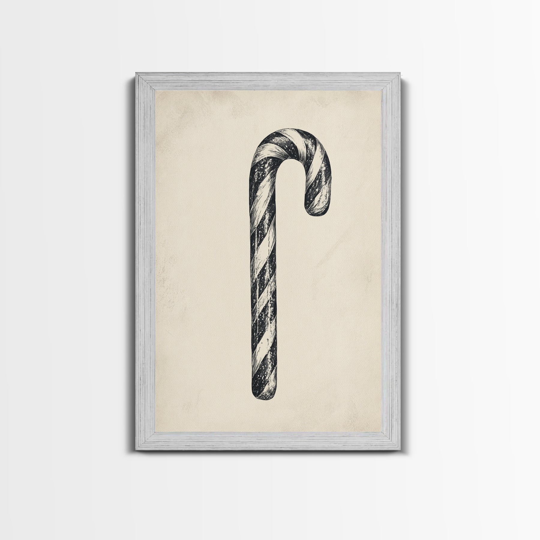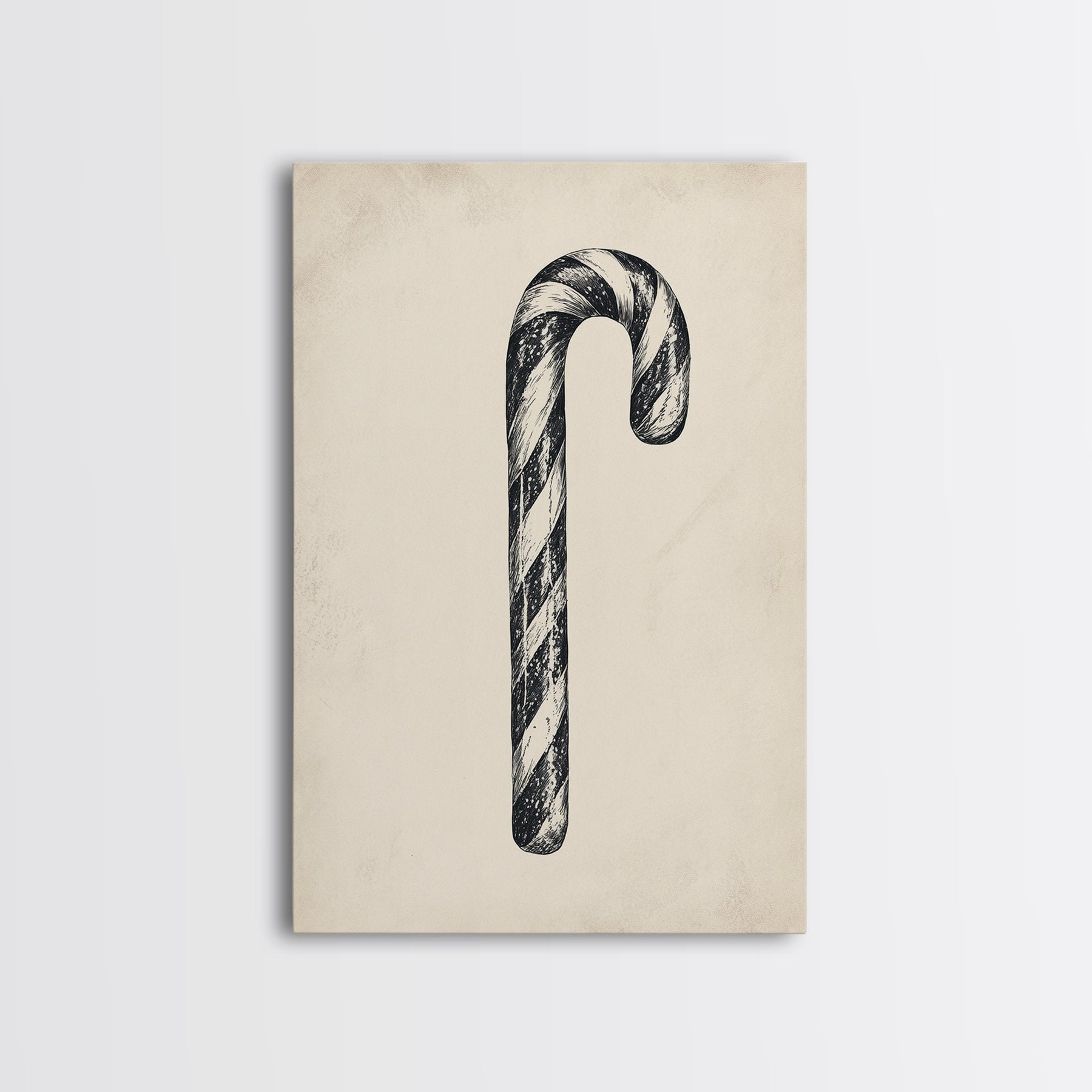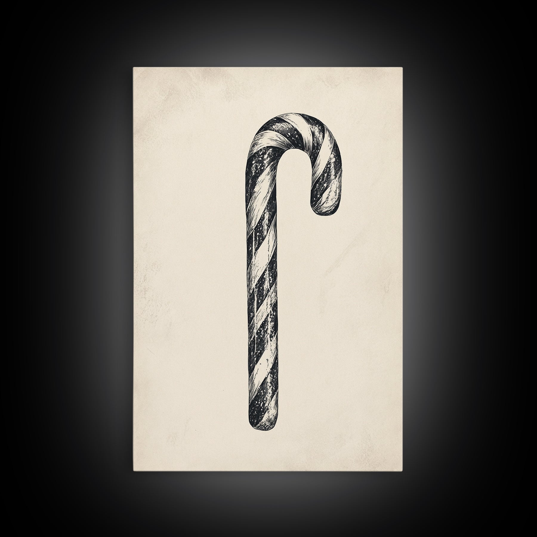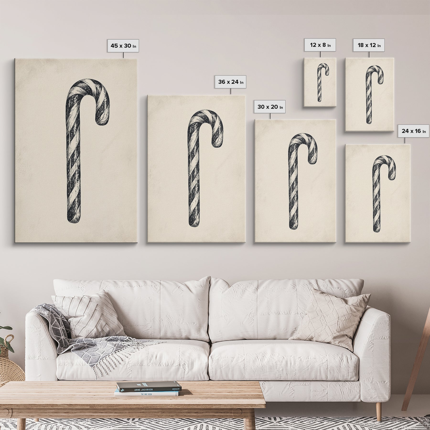 Black and White Candy Cane Sketch, Canvas Print, Christmas Decor, Christmas Painting, Christmas Wall Art