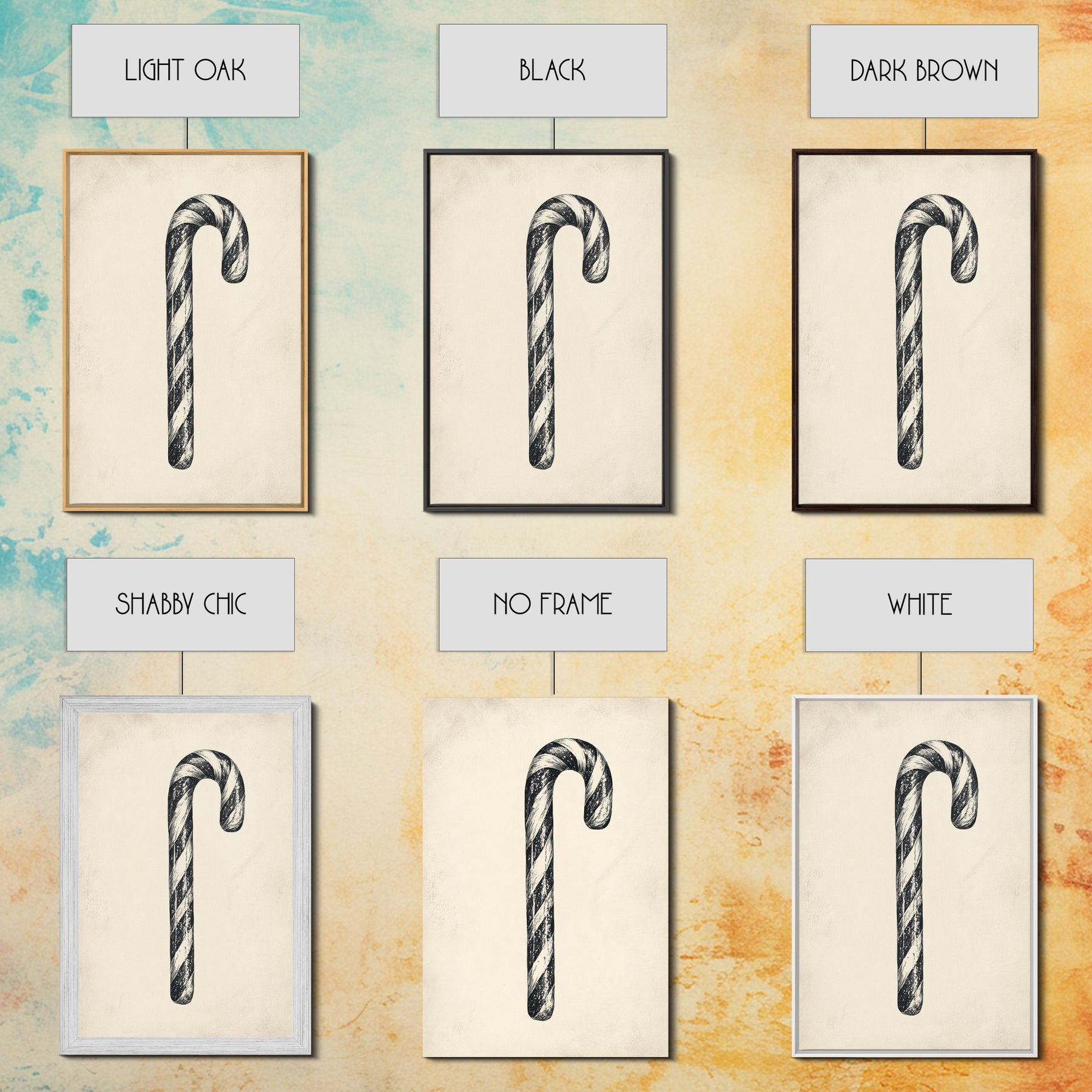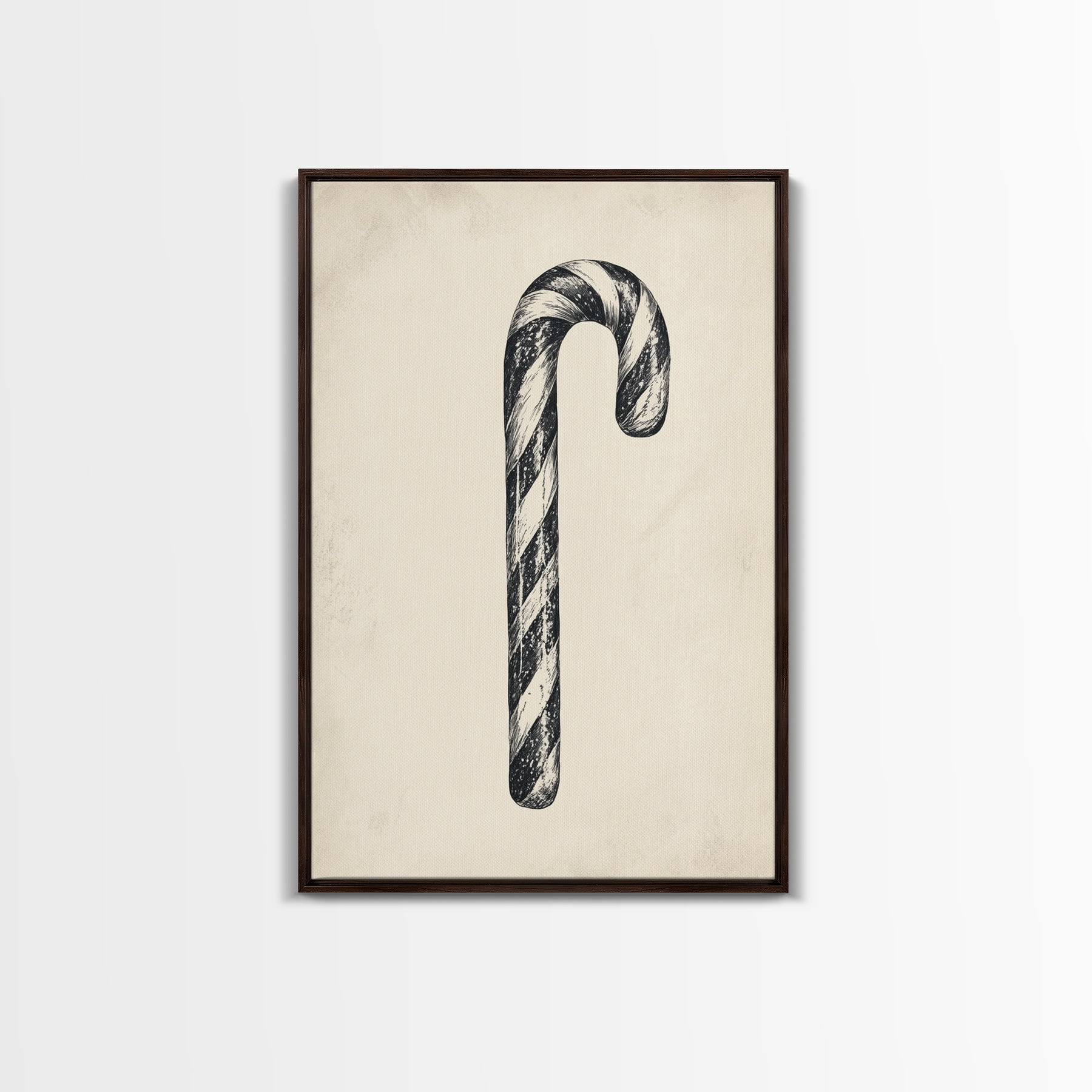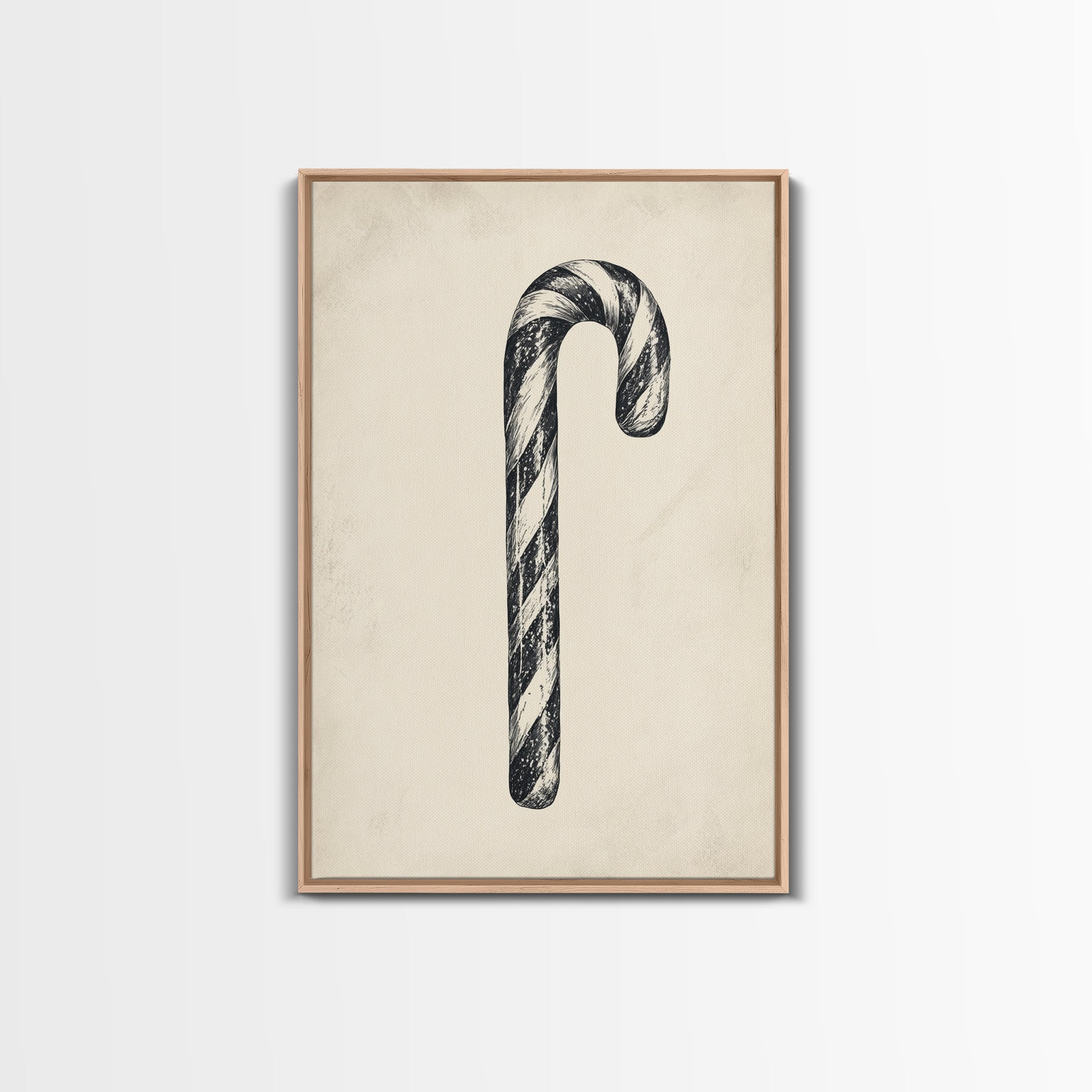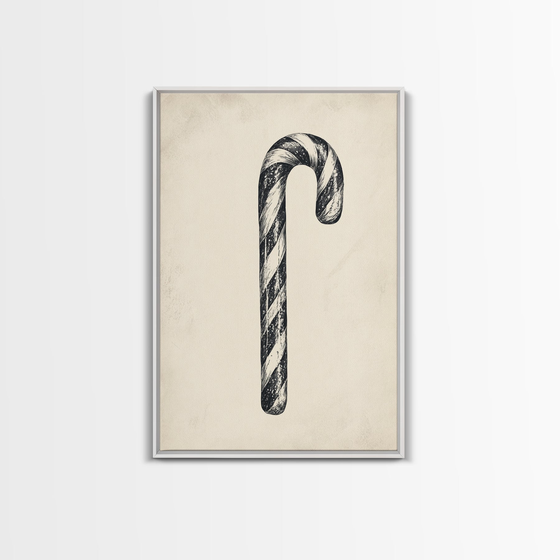 Black and White Candy Cane Sketch, Canvas Print, Christmas Decor, Christmas Painting, Christmas Wall Art