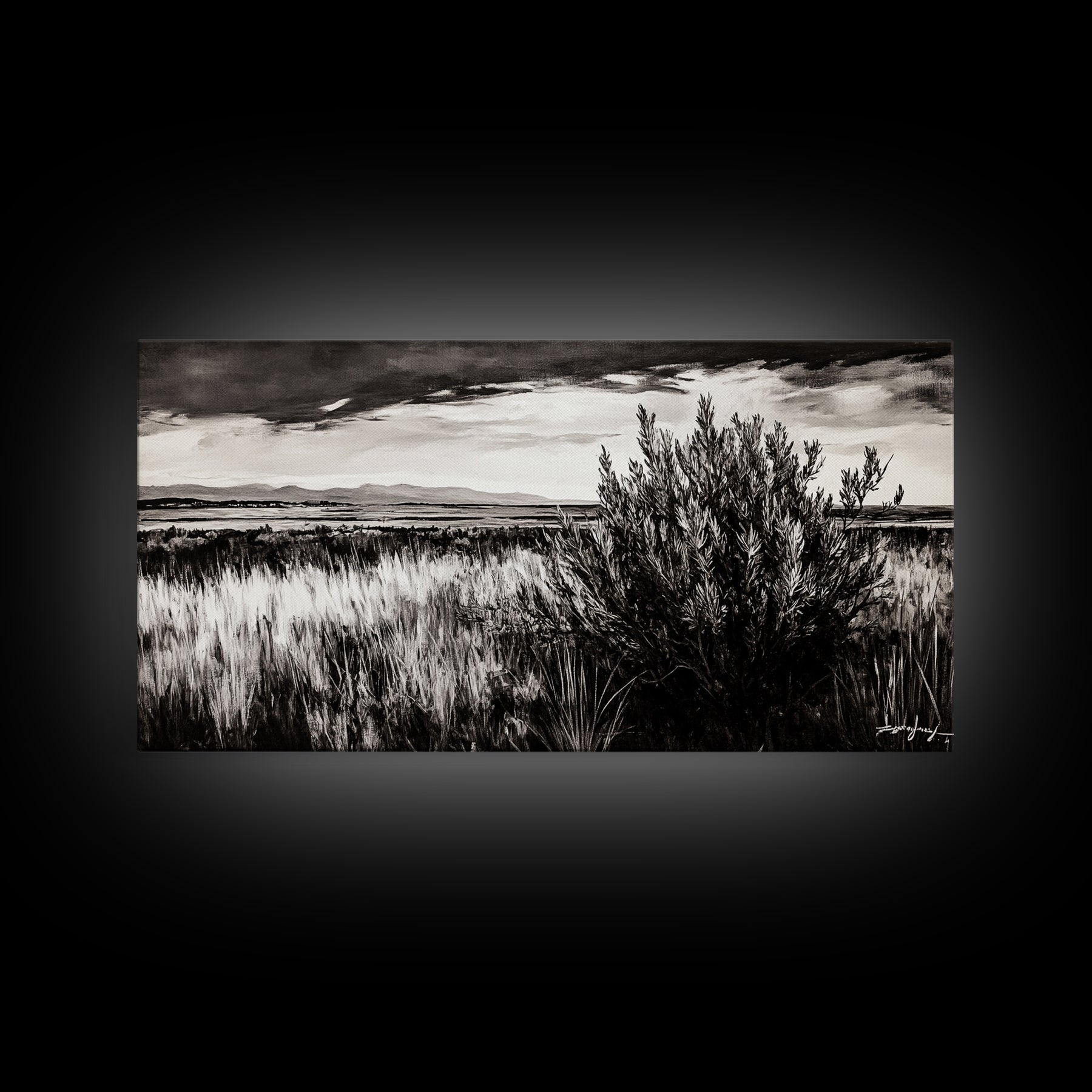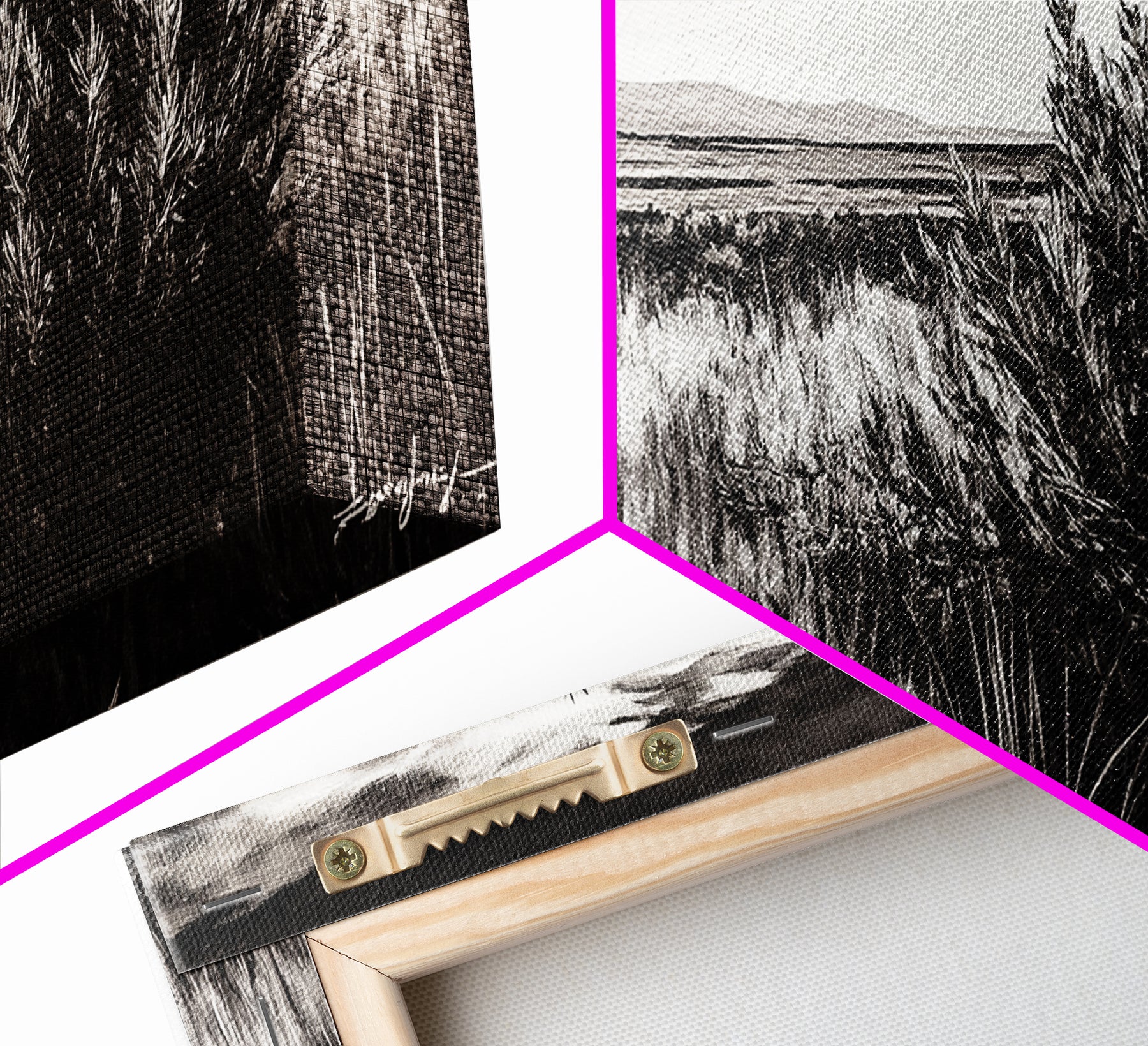 Black and White Landscape, Minimalist Canvas Print, Nature Wall Art, Rustic Country Scene, Neutral Home Decor, Living Room Art