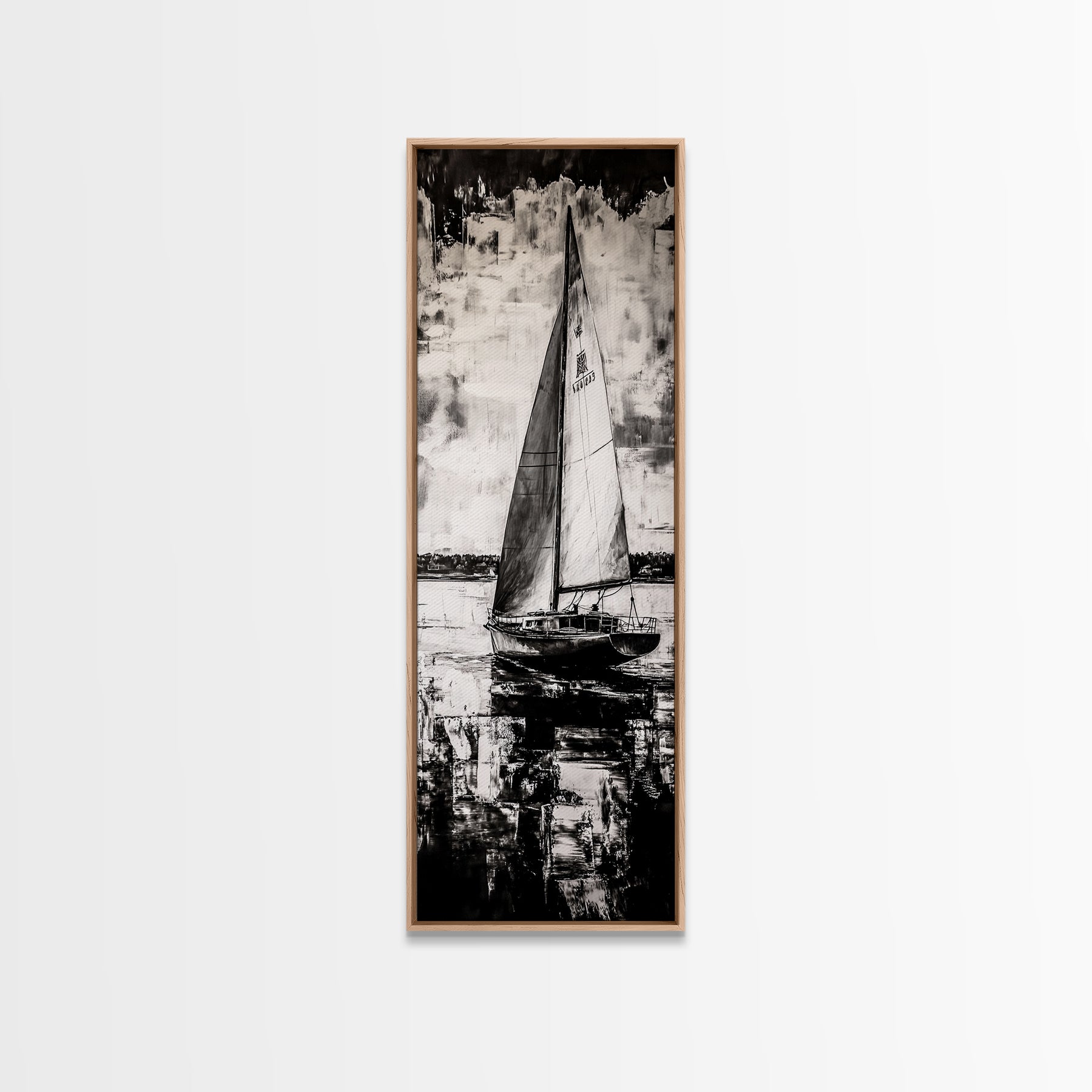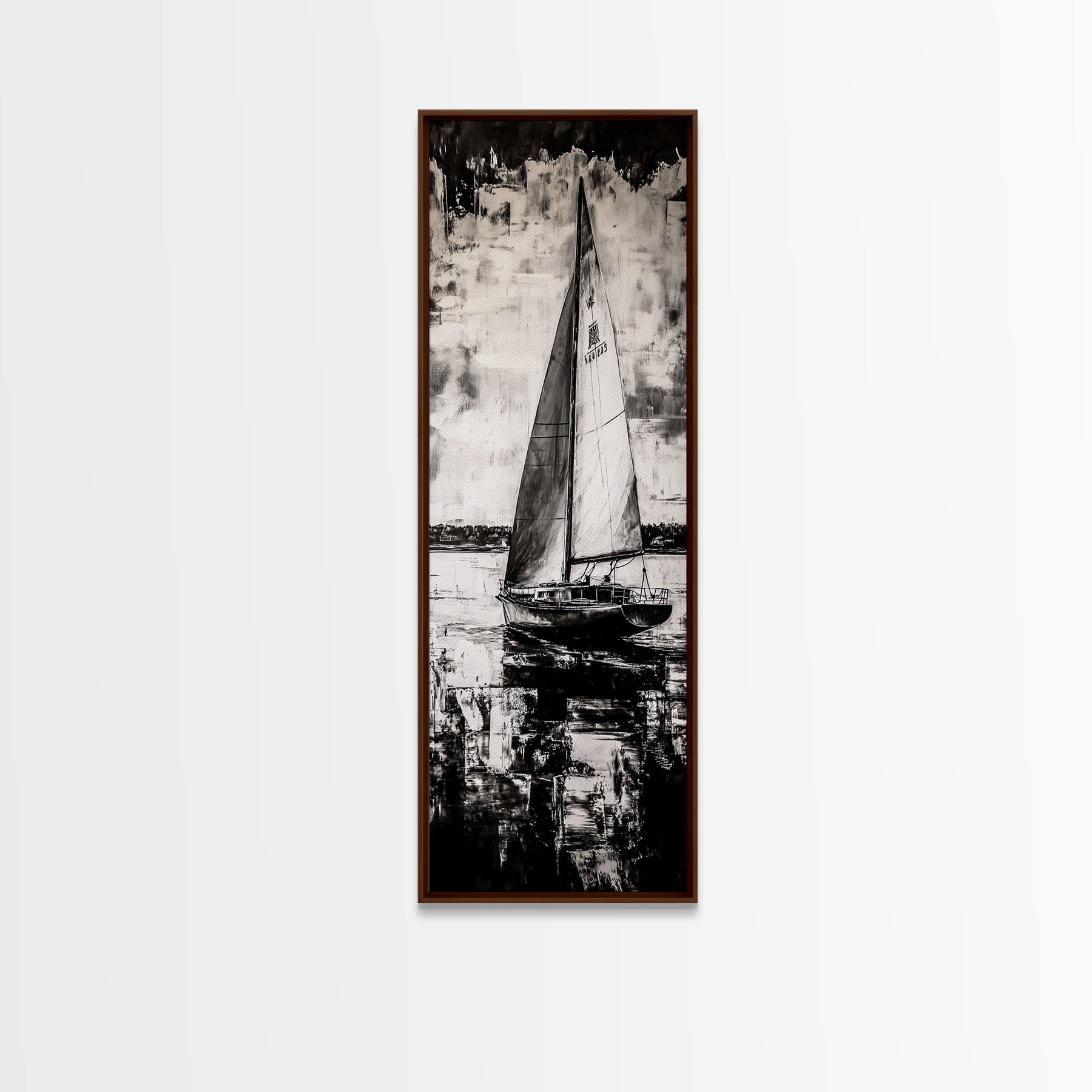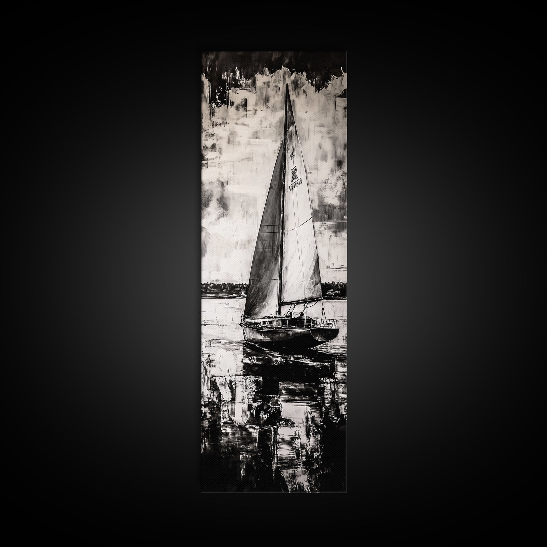 Black and White Sailboat, Nautical Wall Art, Minimalist Seascape Painting, Coastal Home Decor, Office or Bedroom Art, Framed Canvas Print