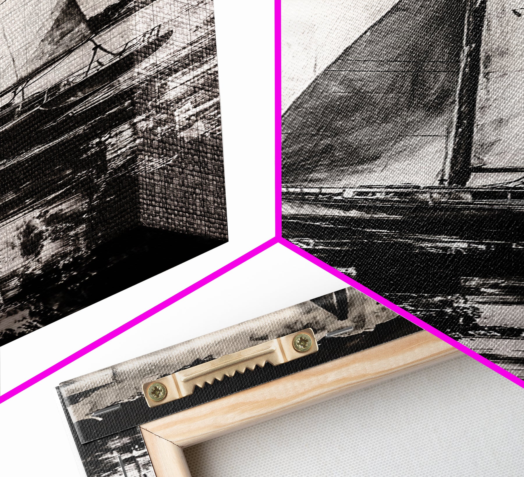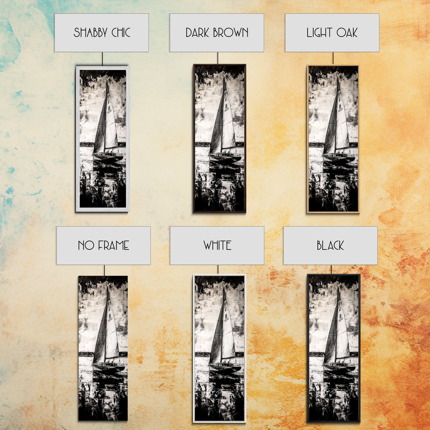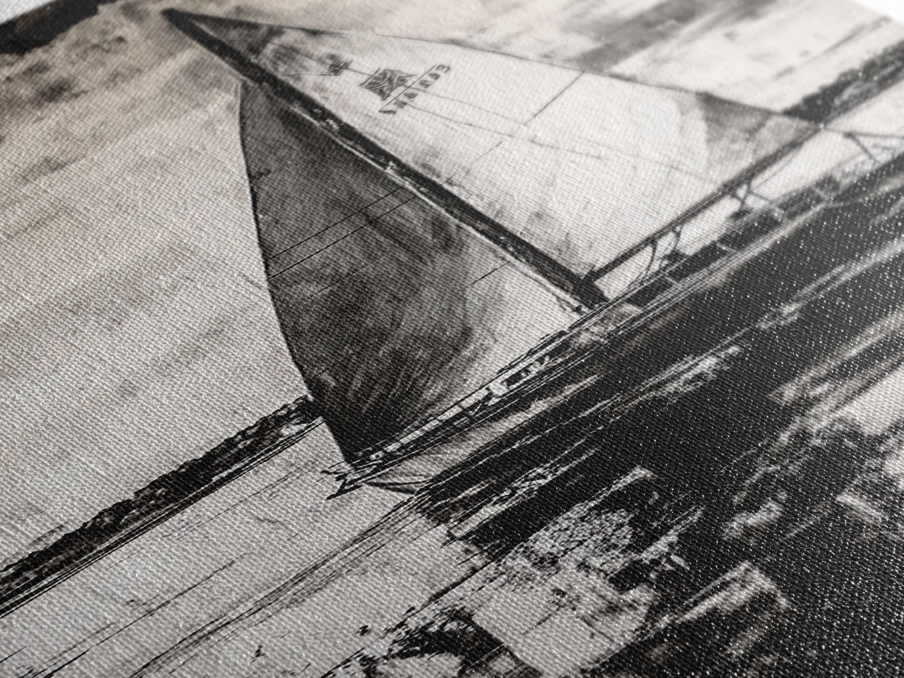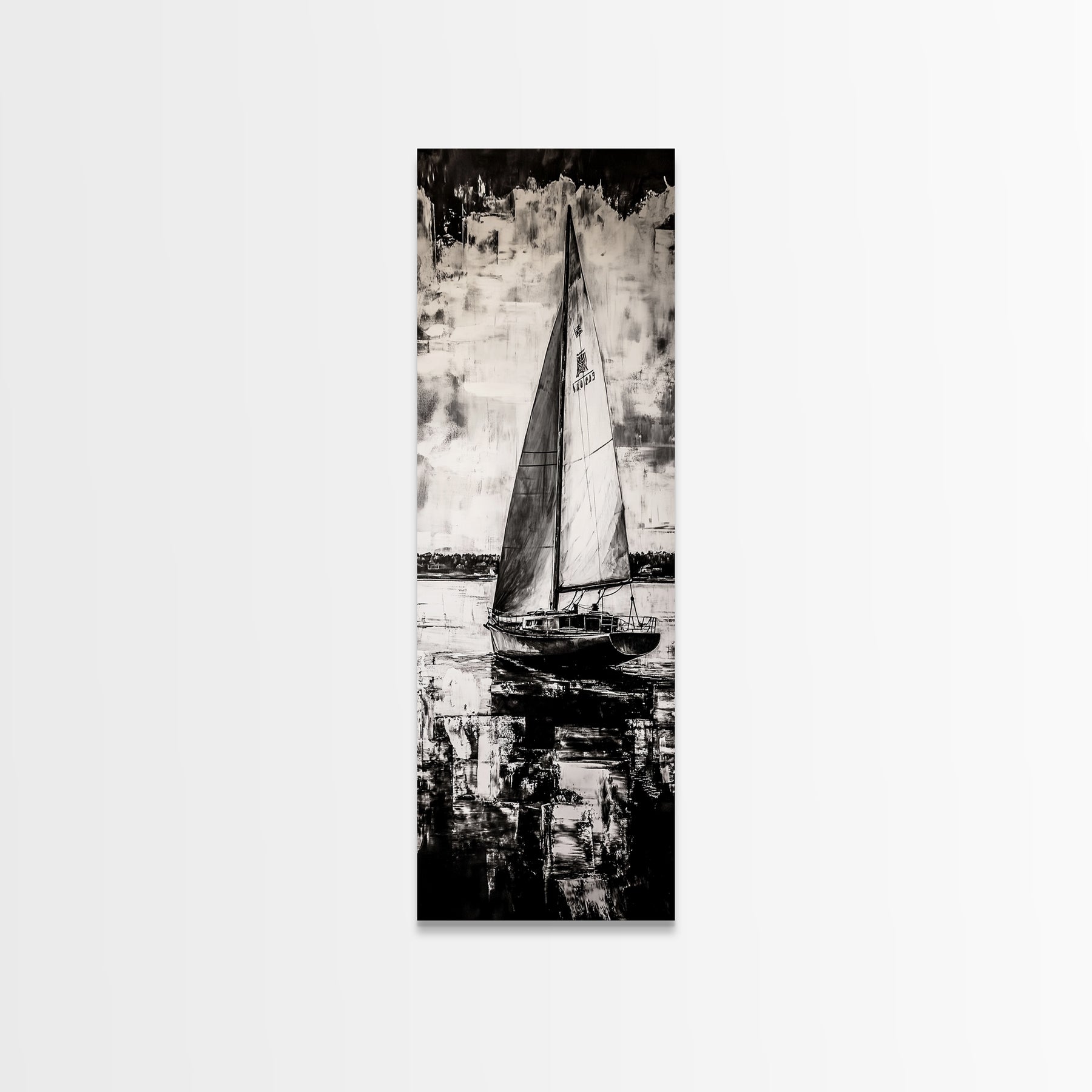 Black and White Sailboat, Nautical Wall Art, Minimalist Seascape Painting, Coastal Home Decor, Office or Bedroom Art, Framed Canvas Print