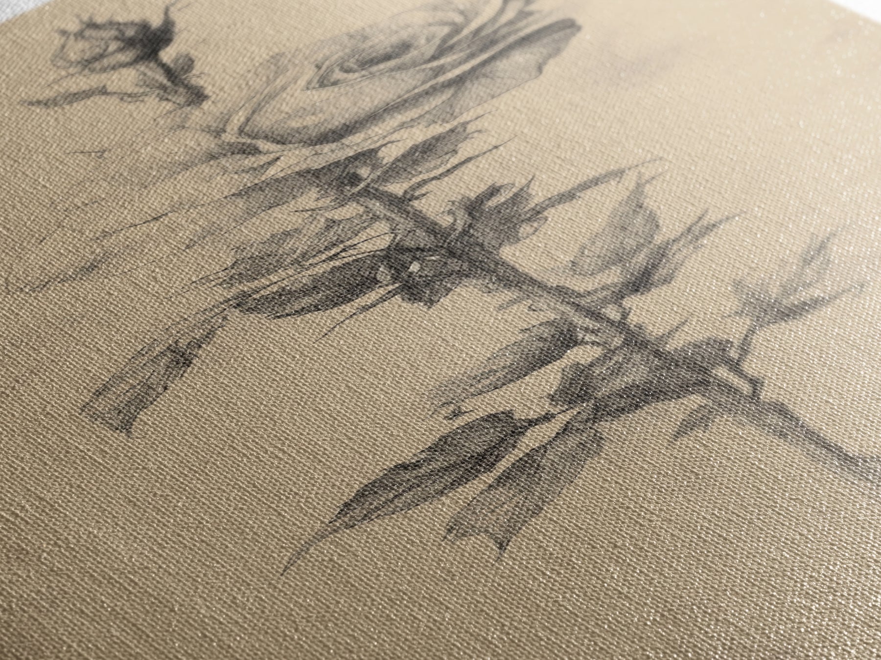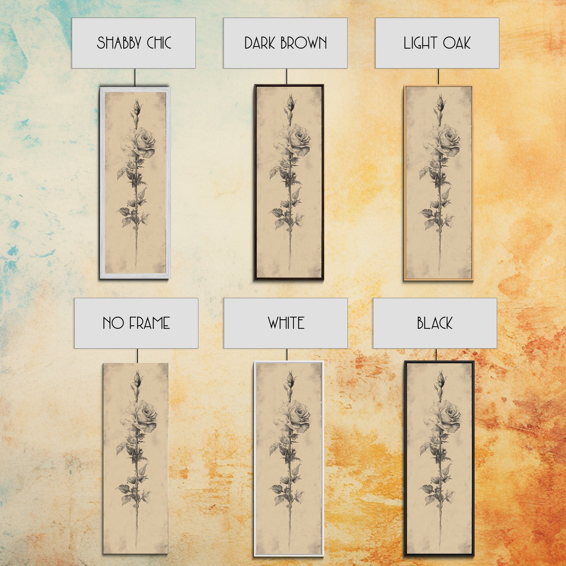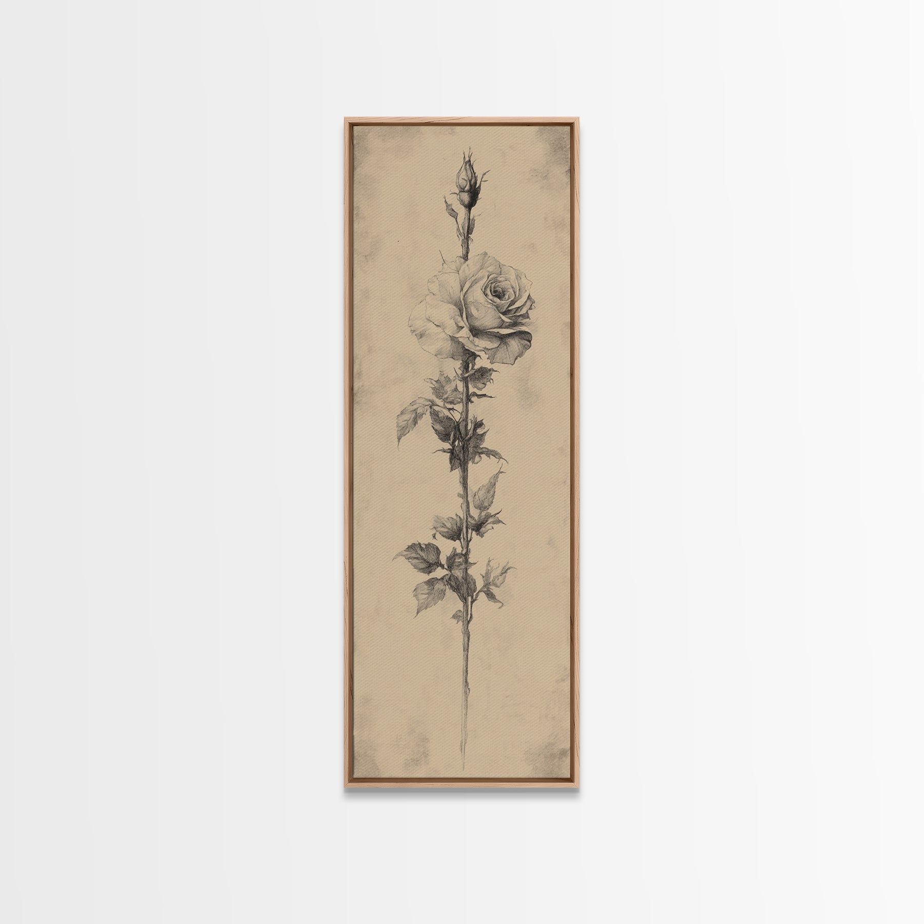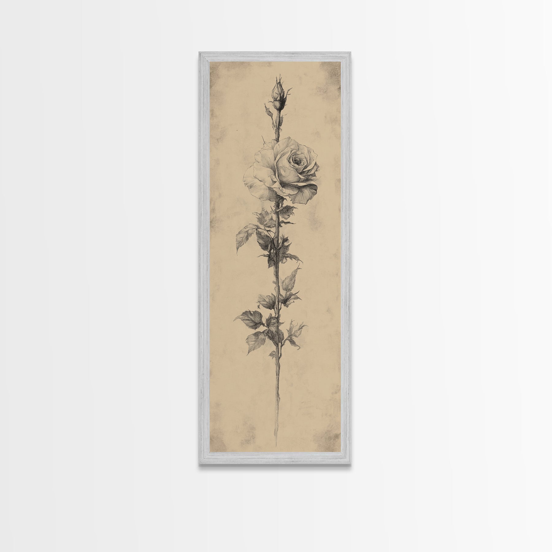 Black and White Sketch of a Rose, Framed Canvas Print, Narrow Art, Tall Skinny Art, Flower Painting, Paint of a Rose, Floral Prints