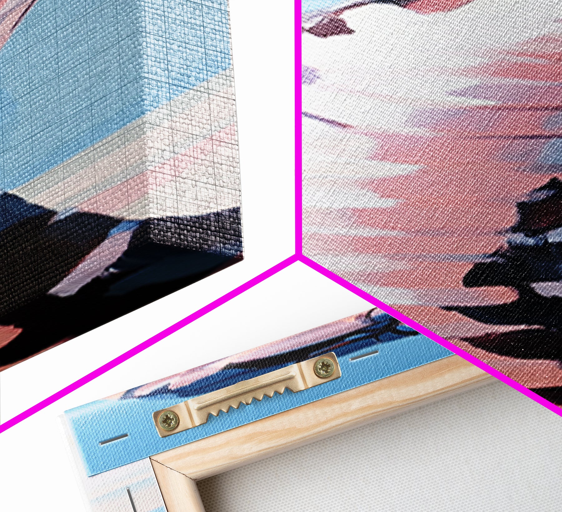 Hello and thank you for taking the time to view our modern high quality giclée artwork! We offer both posters and stretched canvas prints. Our posters are printed on Ultra Matte 60 lb / 230 GSM high quality photo paper, with a thickness of 10 mil. Our canvases are printed on museum grade 350 GSM canvas material with ECO friendly archival grade ink, then hand stretched and stapled over premium, FSC certified and shrink resistant frames. Designed and built to last a lifetime.