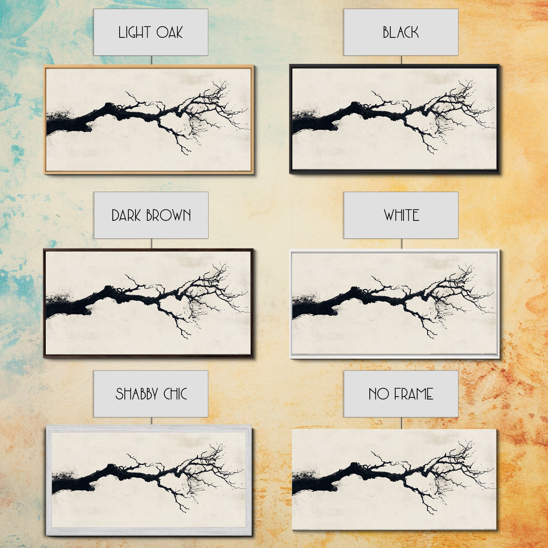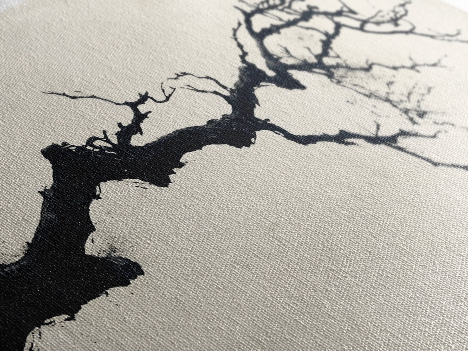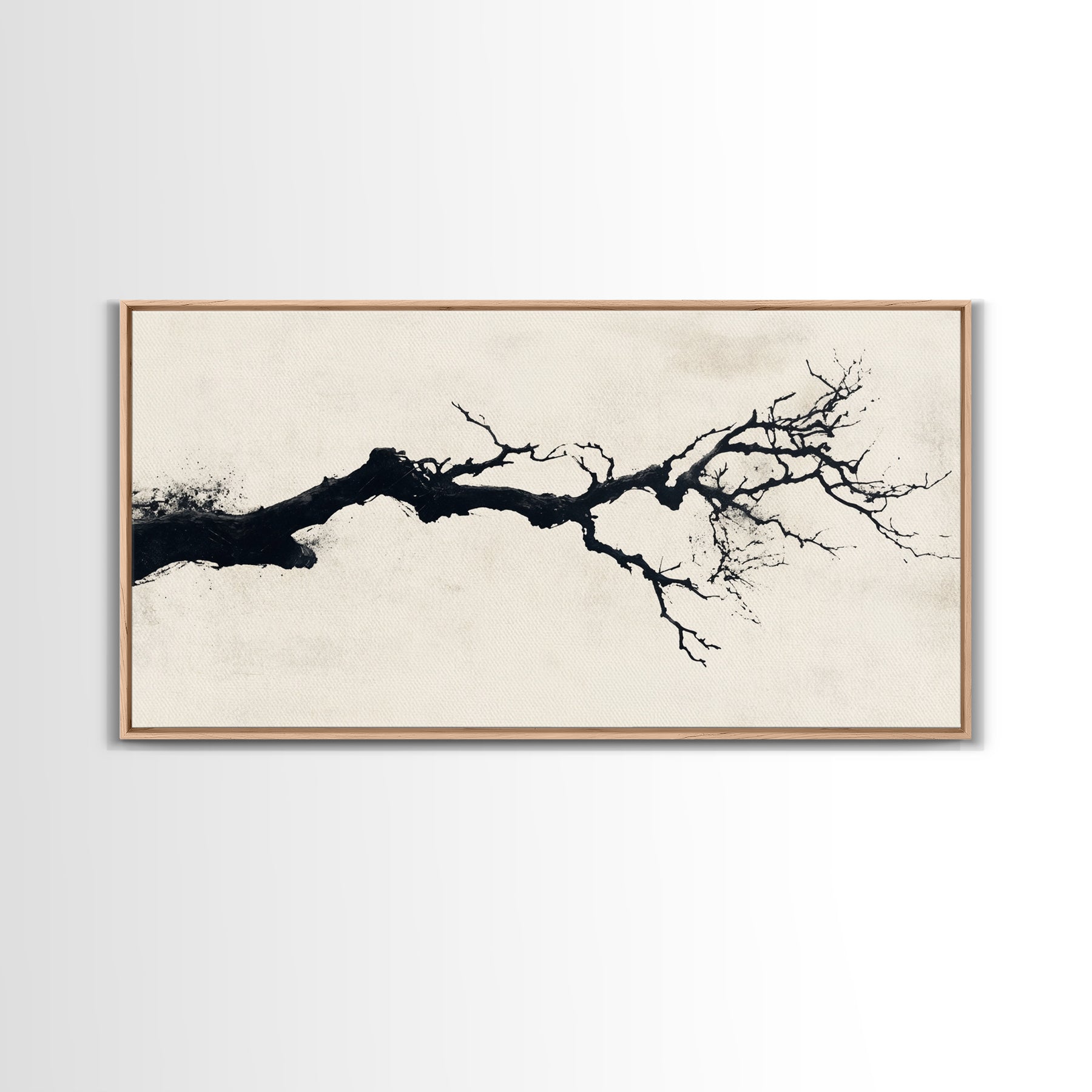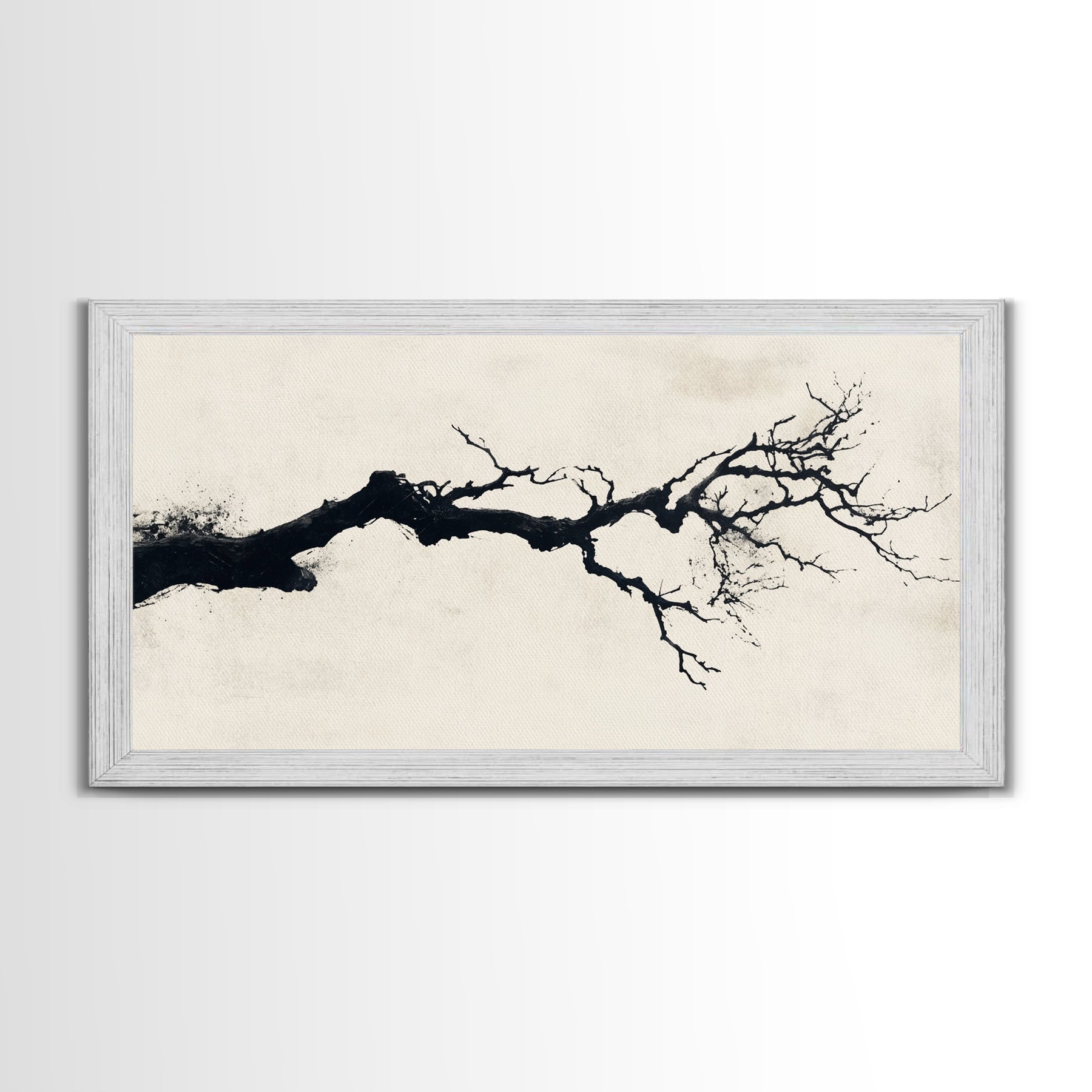 Black and White Wall Art, Framed Canvas Print, Dead Branch Painting on a Black Background, Charcoal Sketch, Charcoal Painting Wall Art
