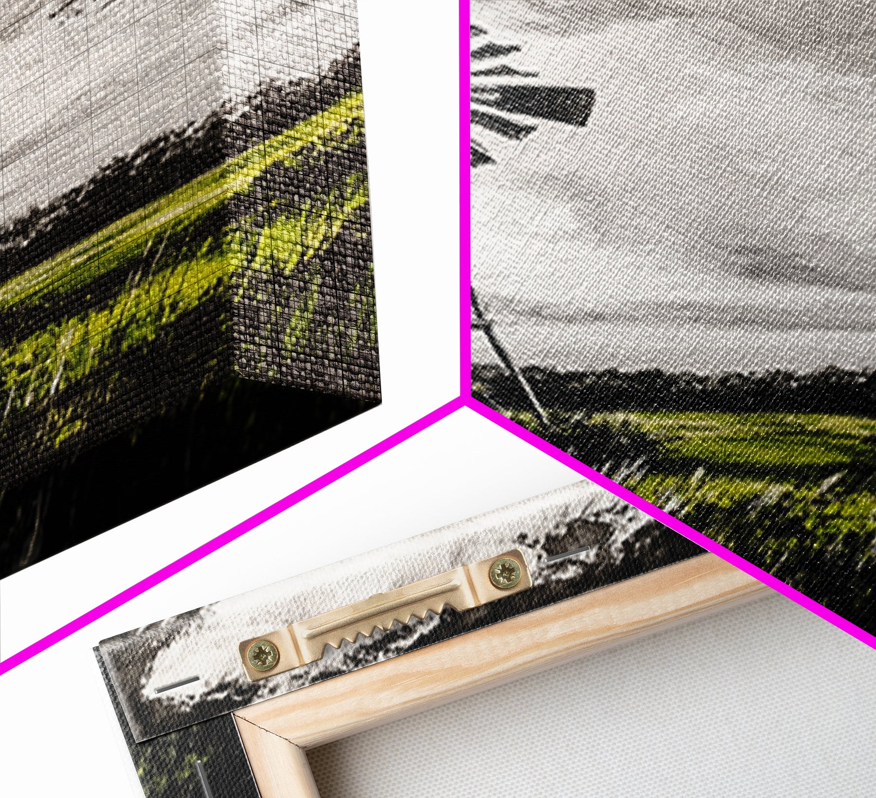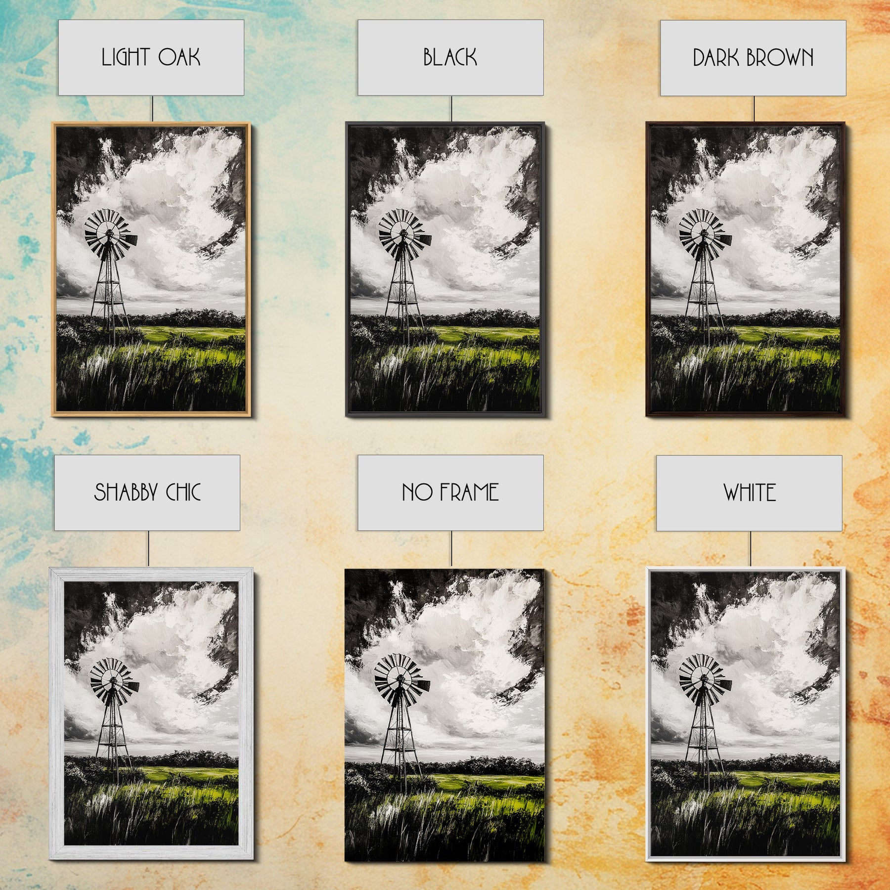 Black and White Windmill, windmill wall art, rustic decor, farmhouse art, landscape painting, framed canvas print, above bed wall art