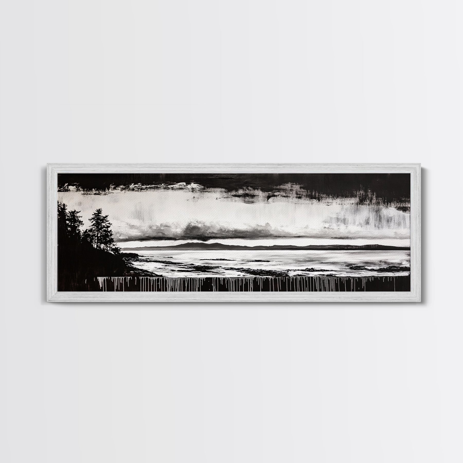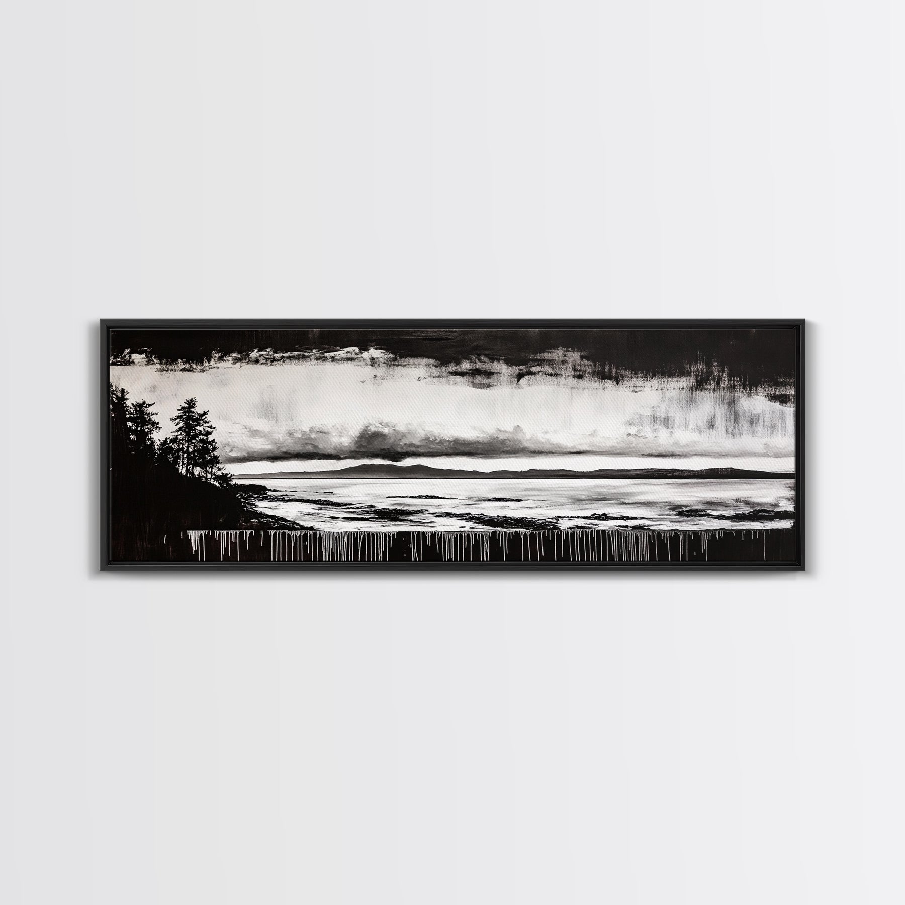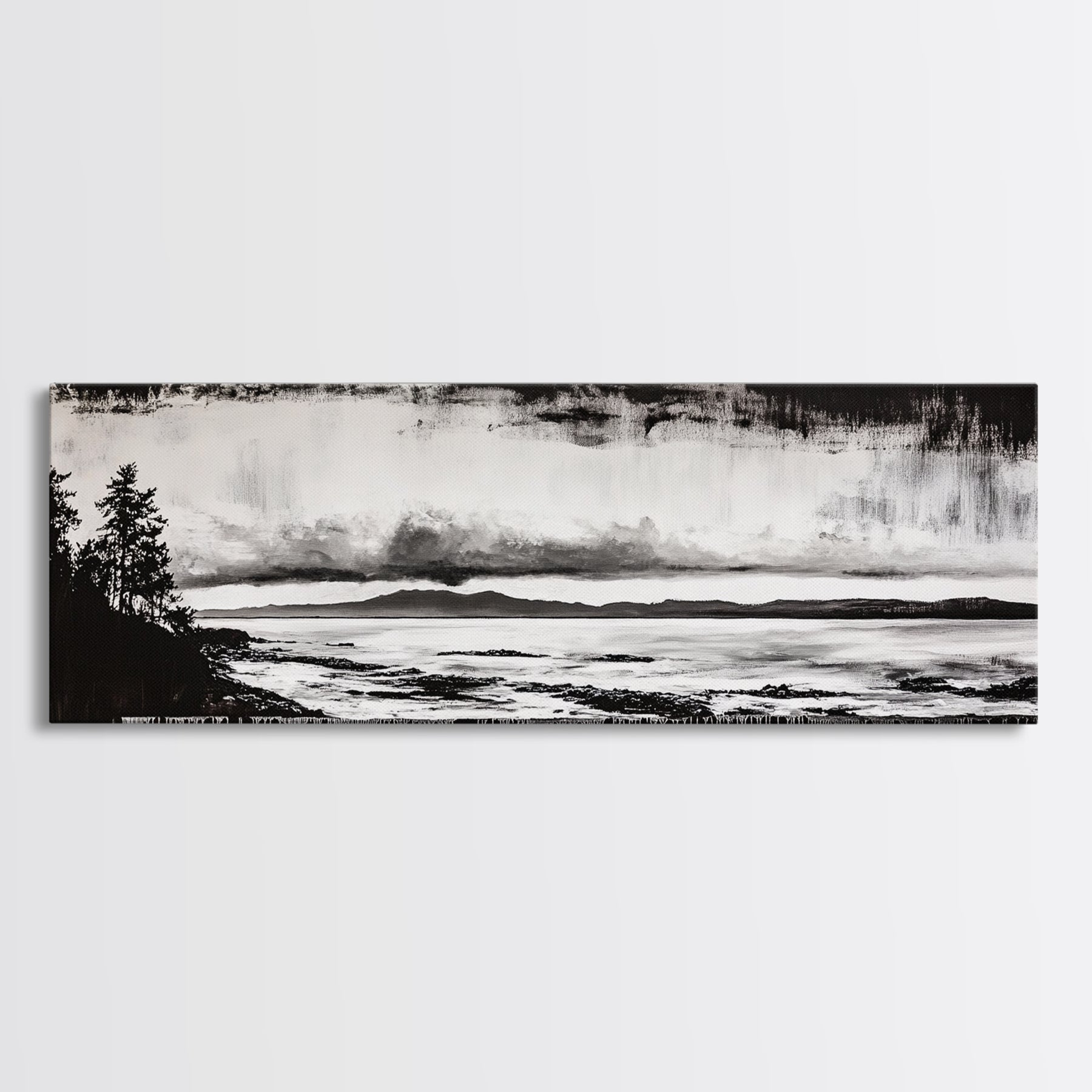 Black White Seascape, Ocean Storm, Dramatic Sky, Framed Canvas Print, Minimalist Art, Coastal Wall Decor, Office Accent, Nautical Home Art