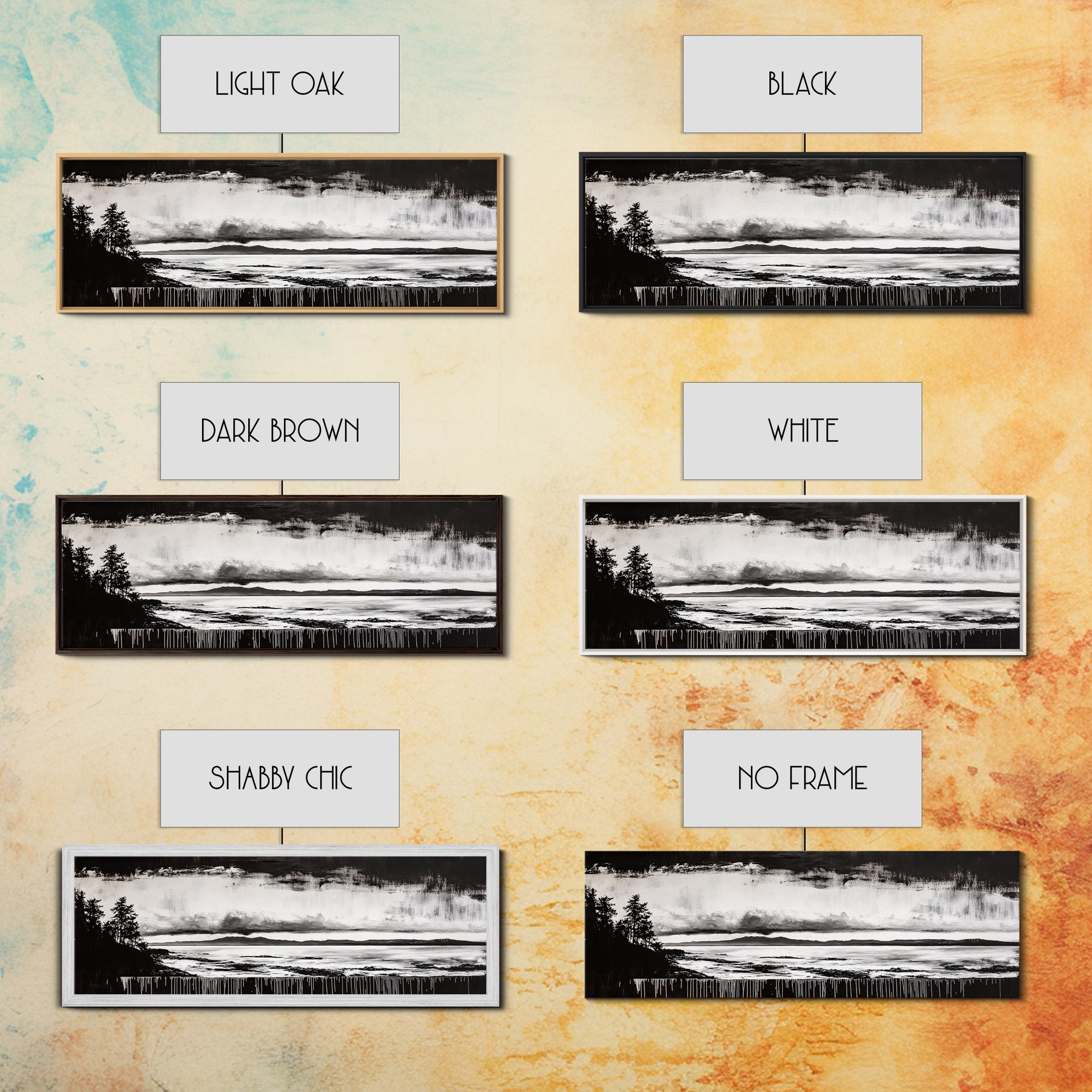 *Optional frames add a total of 1.5 inches to each dimension, for example a 10x20 canvas with a frame will be 11.5 by 21.5 inches total. All framed canvas are 1.5" total depth.