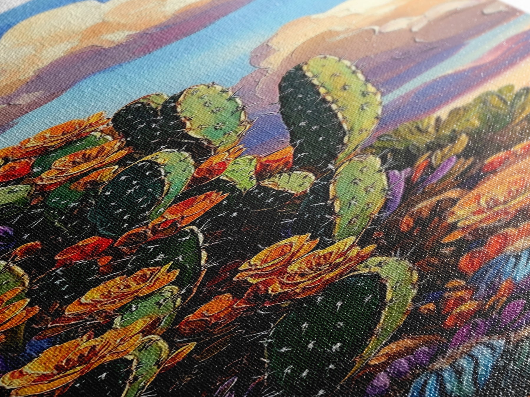 Blooming Cactus Art Framed Canvas Print Desert Floral Wall Art, Botanical Prints, Southwest Wall Art, Nature Art, Tall Narrow Art