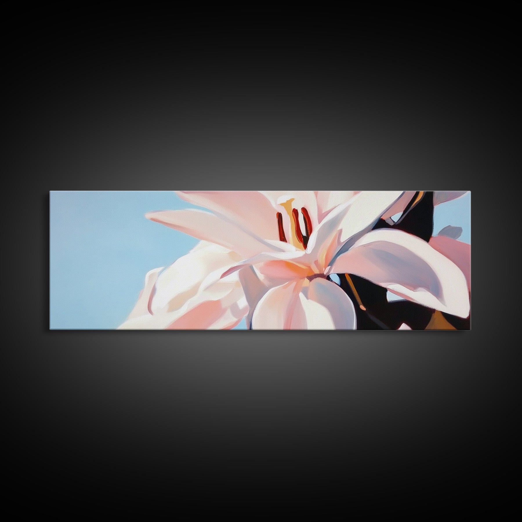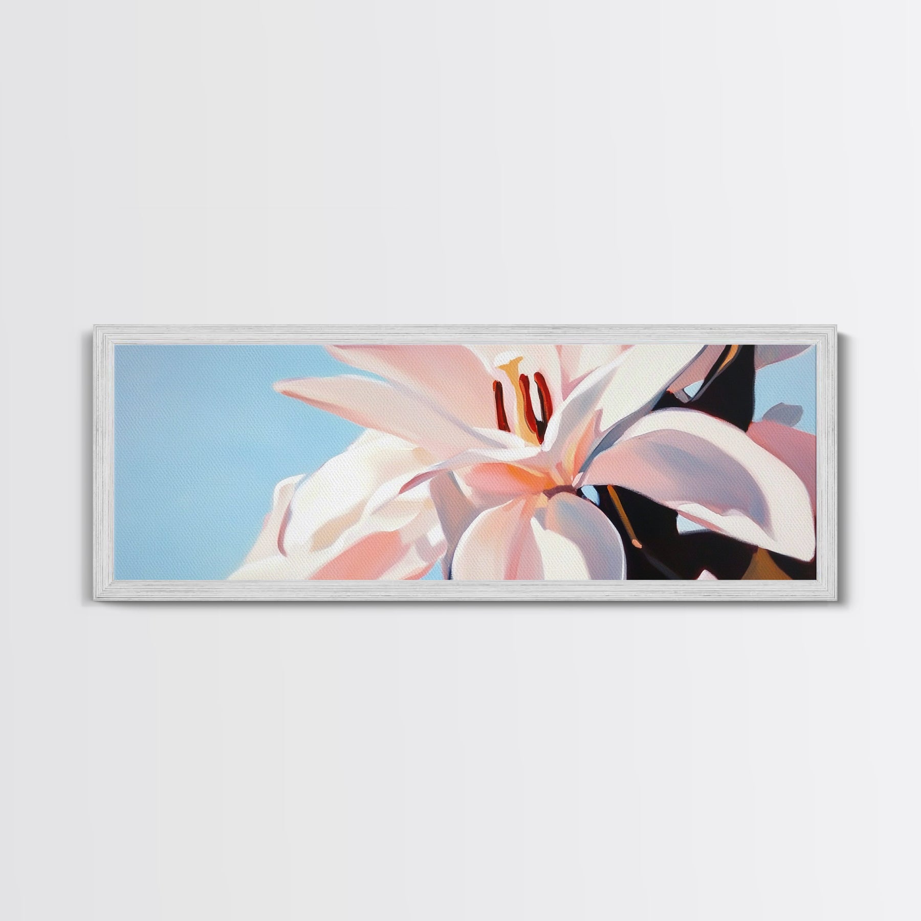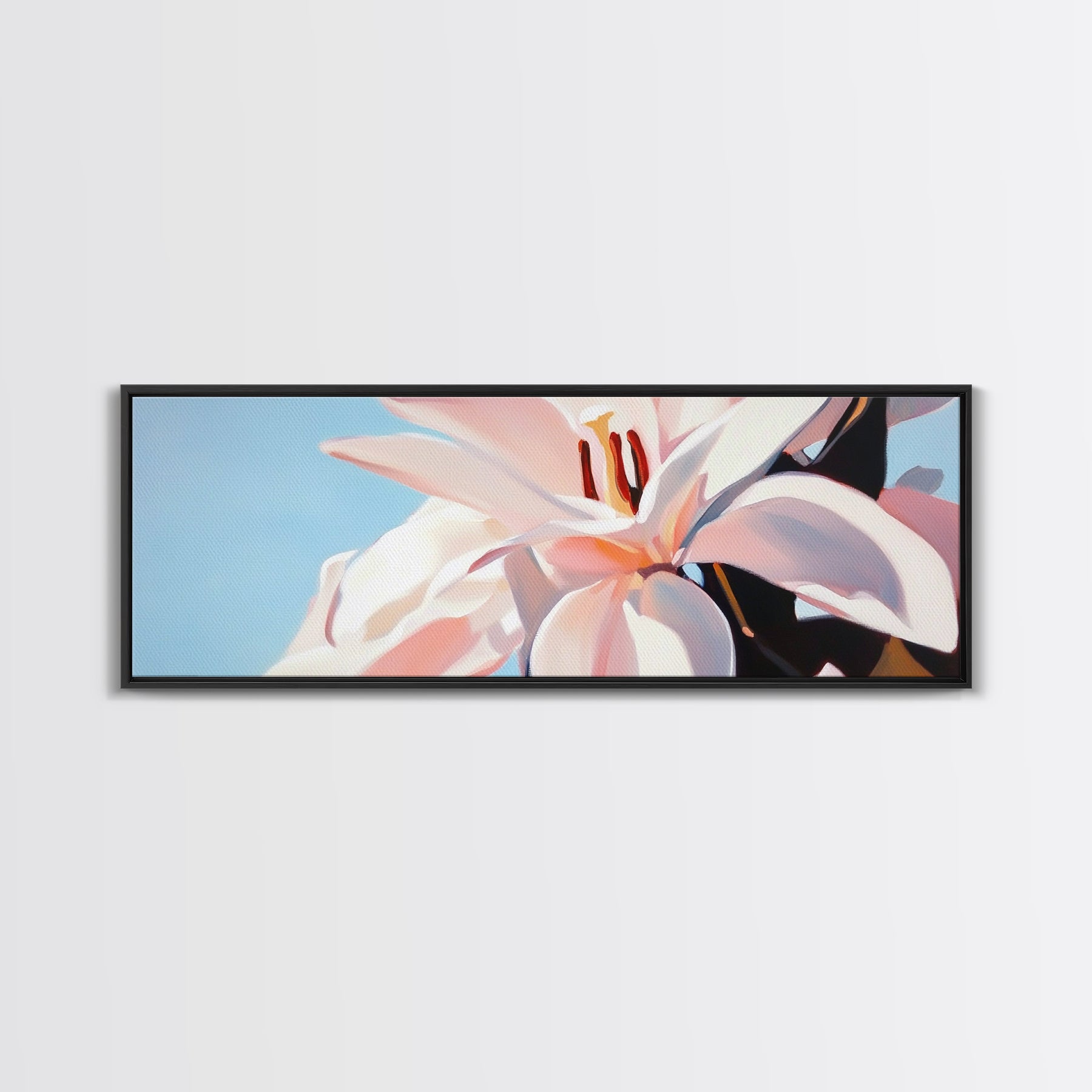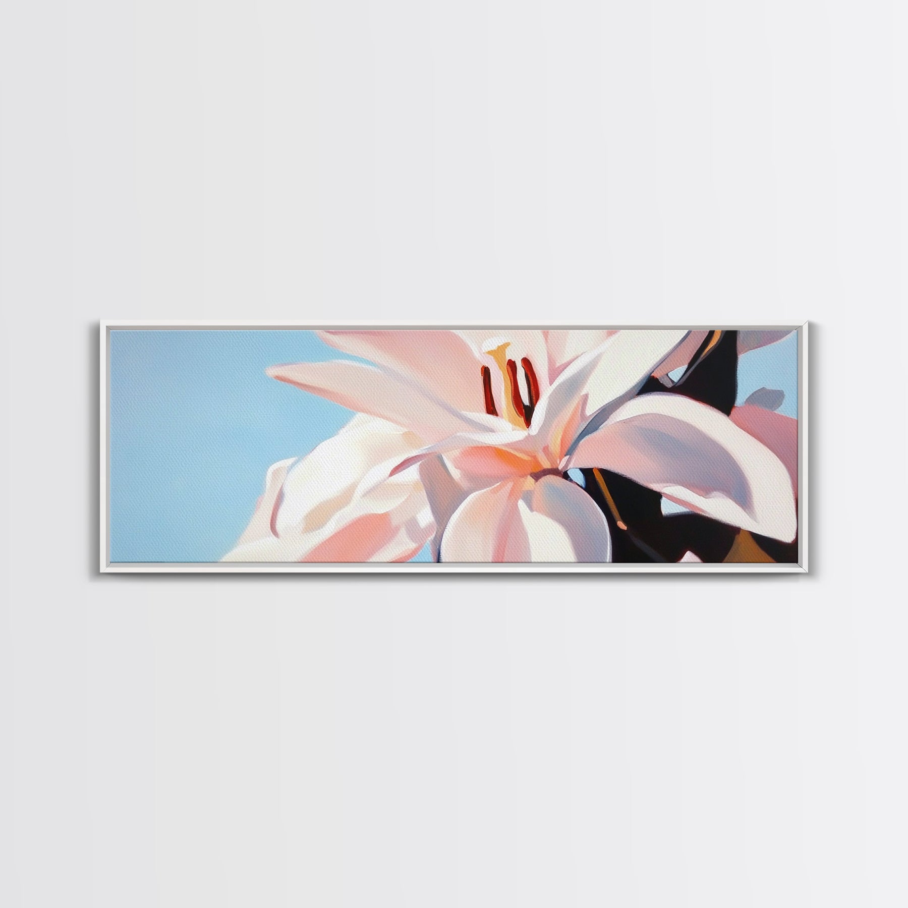Blooming Lily, Floral, Nature, Framed Canvas Print, Botanical Wall Art, Pastel Home Decor, Feminine Aesthetic, Living Room Wall Art