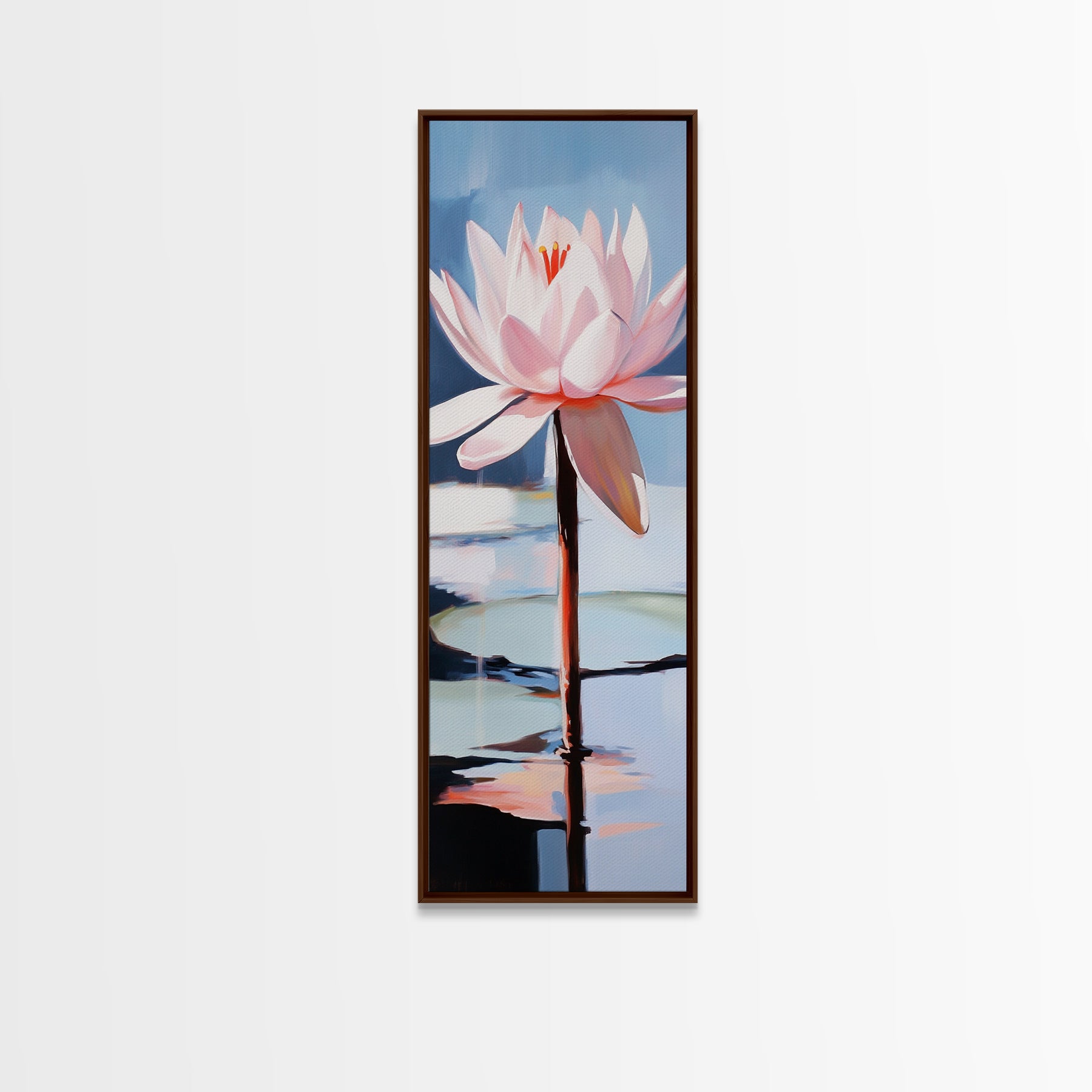 Blooming Lotus, Nature Inspired, Zen Aesthetic, Framed Canvas Print, Spa Wall Decor, Tranquil Water Art, Botanical Painting