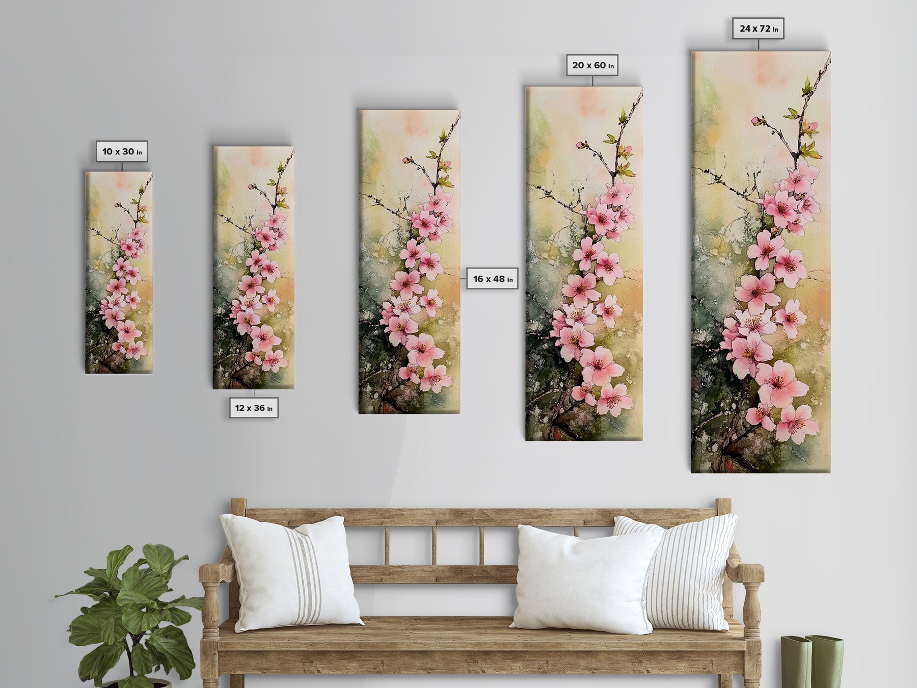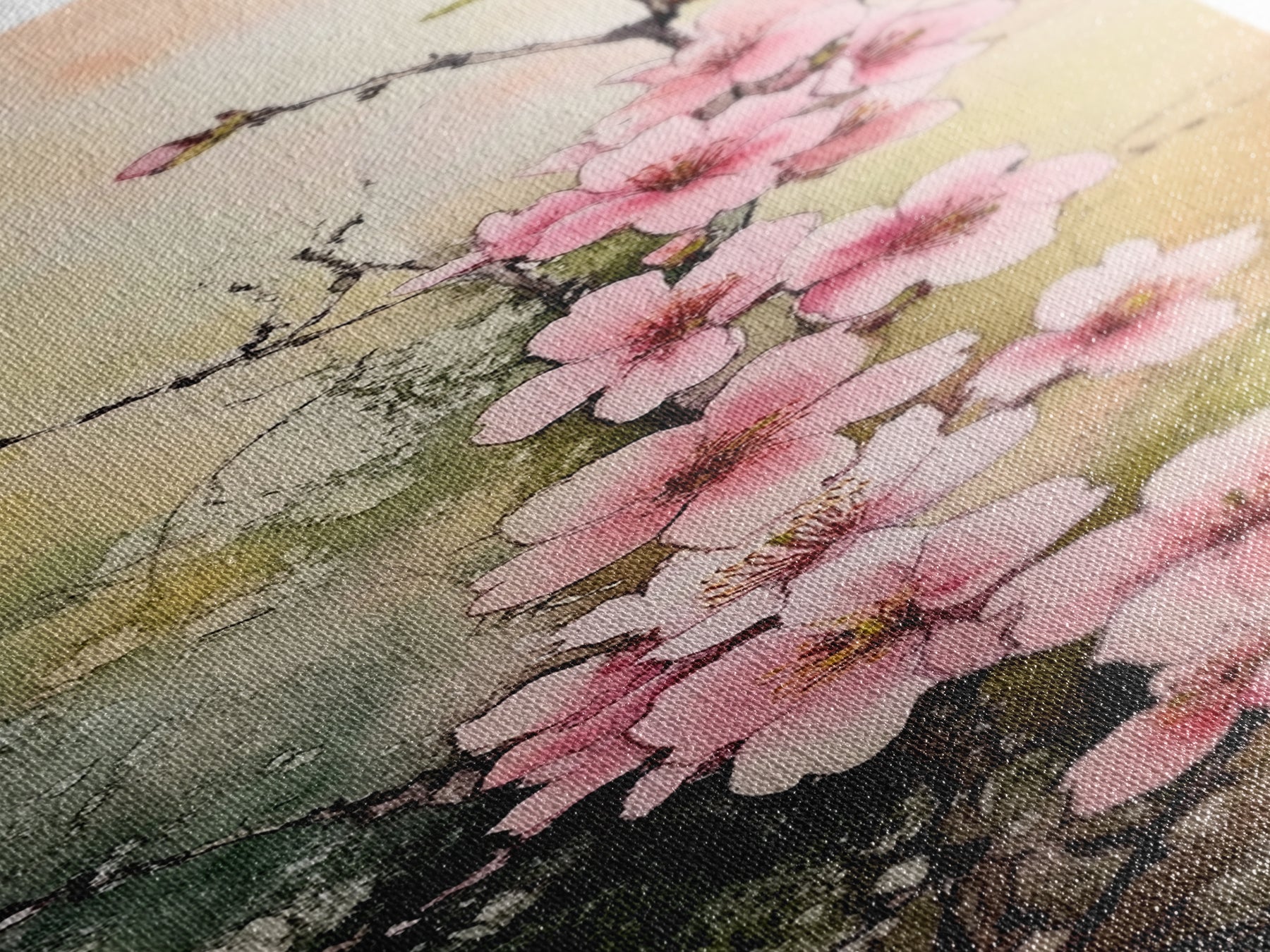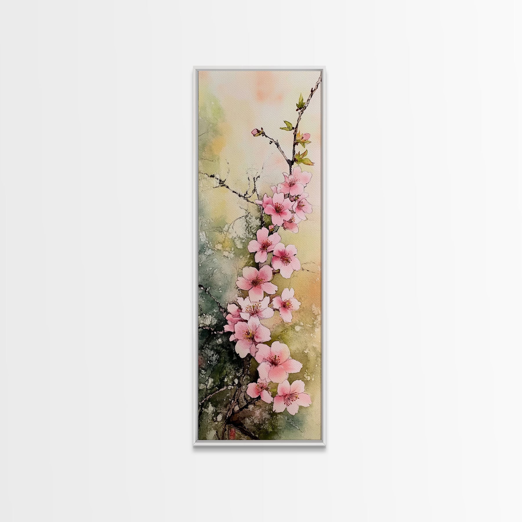 Blooming Pink Cherry Blossoms Art - Framed Canvas Print for Japanese Wall Art, Botanical Decor, Spring Bloom Painting, Nature-Inspired Print