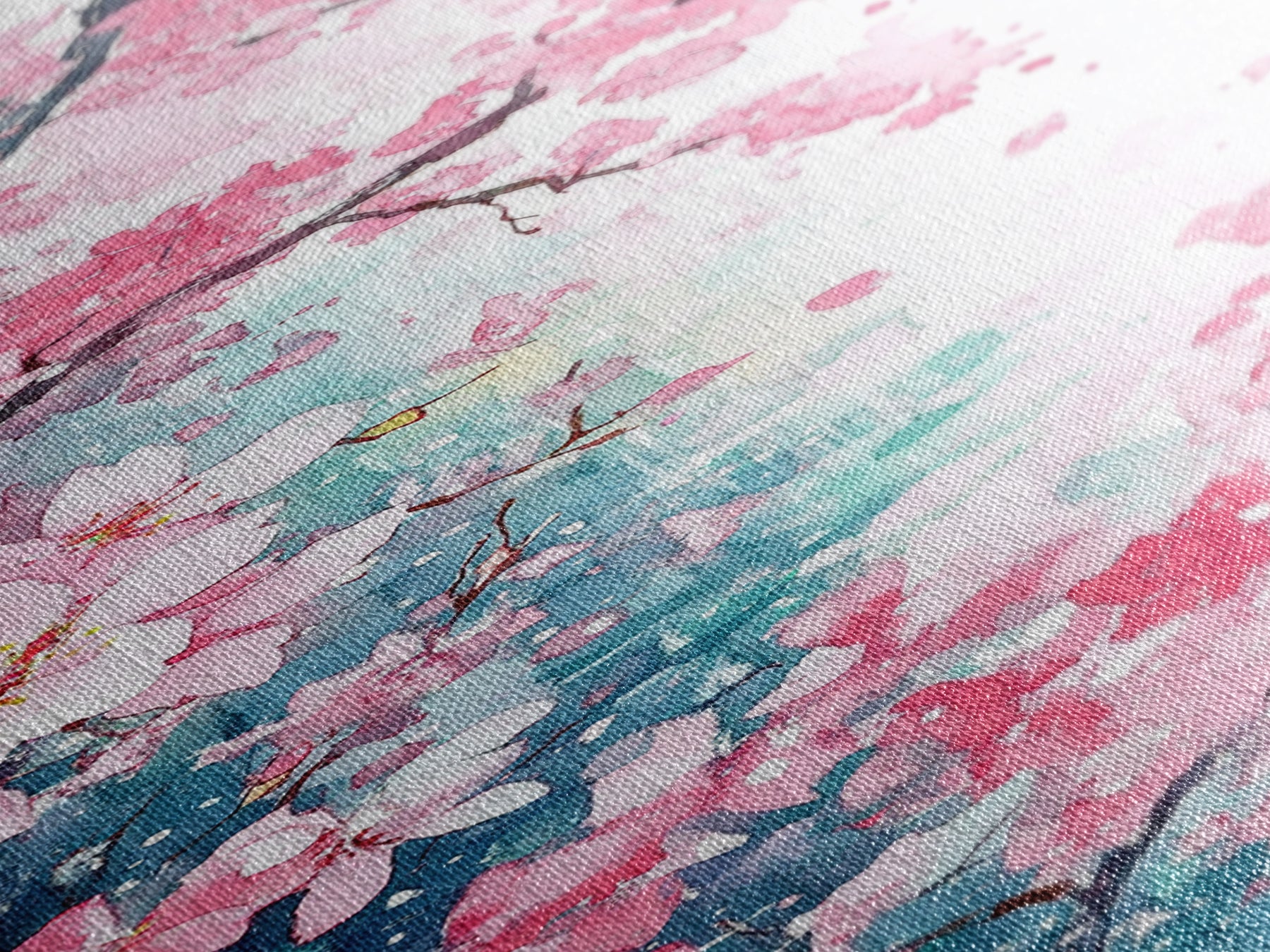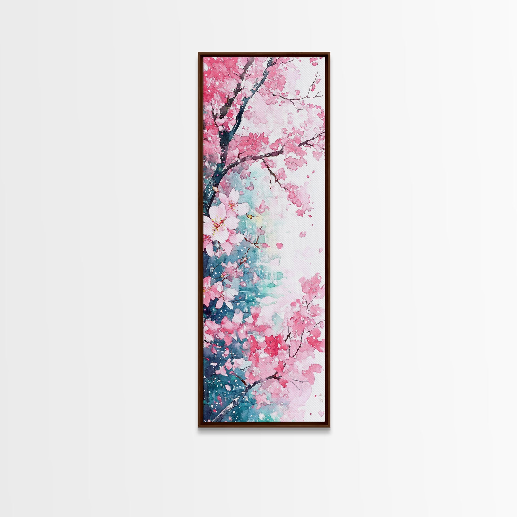 Blooming Pink Sakura Flowers Art - Framed Canvas Print for Japanese Decor, Cherry Blossom Art, Botanical Wall Decor, Pink Floral Painting