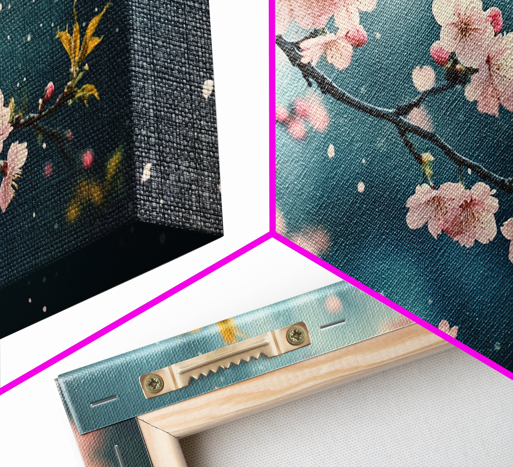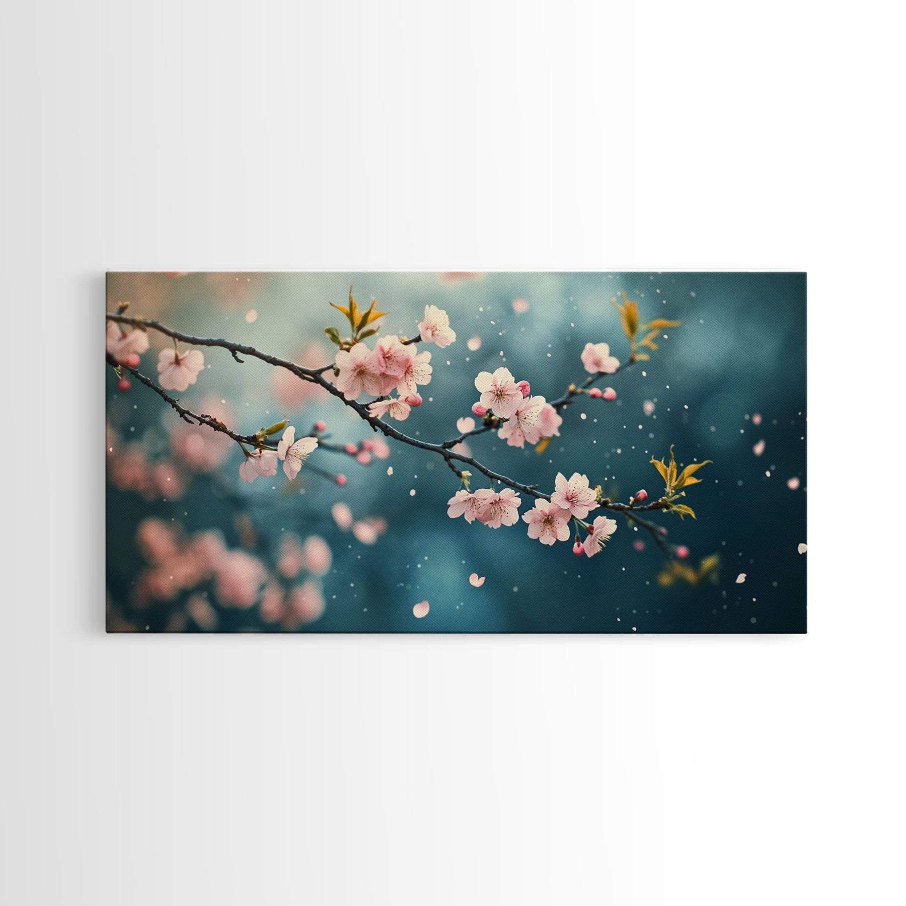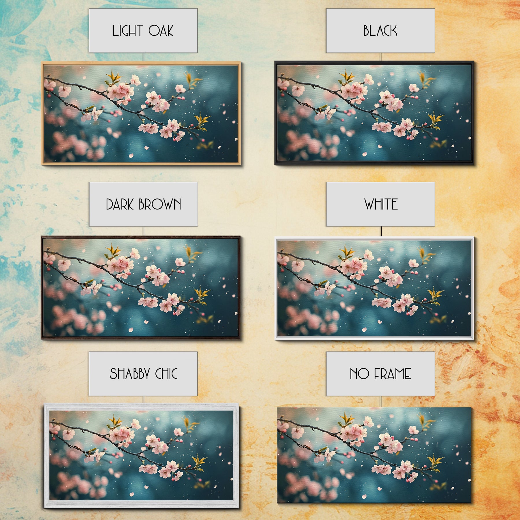 Blossoming Cherry Branch Framed Canvas Print Japanese Style Rustic Decor Great Gift Idea Botanical Prints Beautiful Bedroom Wall Art