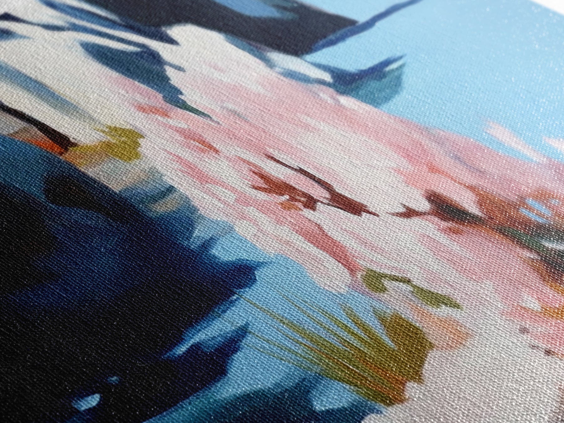 Most of our canvases are made in the USA, with the exception of canvases ordered with the light oak unstained frames, and any large canvases (24x48, 30x60, 16x48 and 20x60) ordered WITH a frame. These are temporarily made in and shipped from Europe, while we try to find a more consistent supplier in the USA.