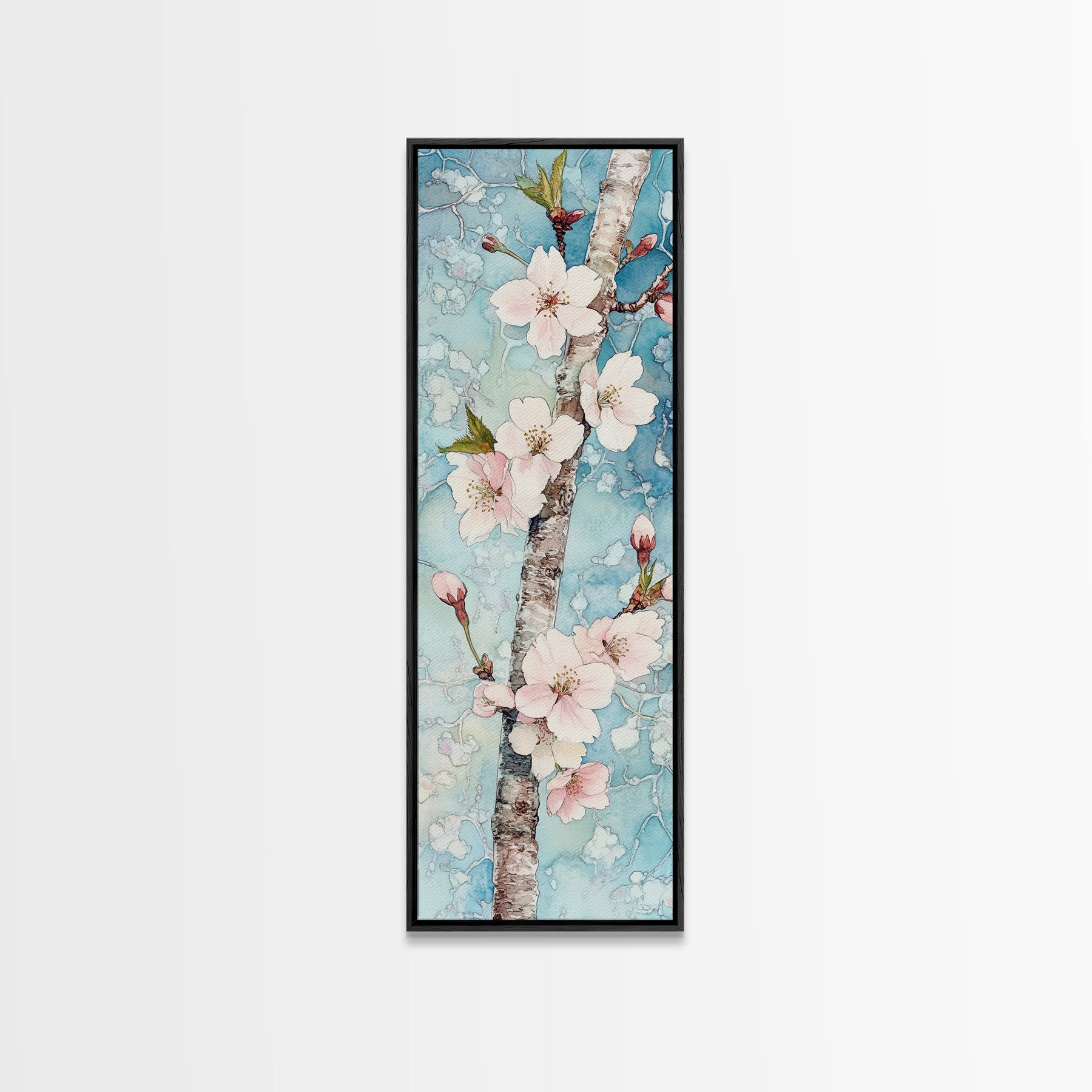 Blossoming Sakura Tree Branch Artwork - Framed Canvas Print for Japanese Wall Art, Cherry Blossom Decor, Pink Floral Art, Botanical Wall Print