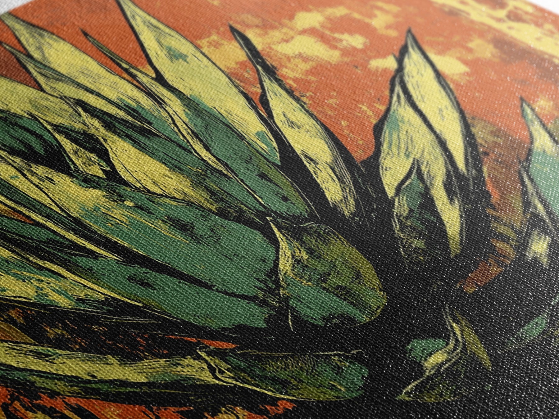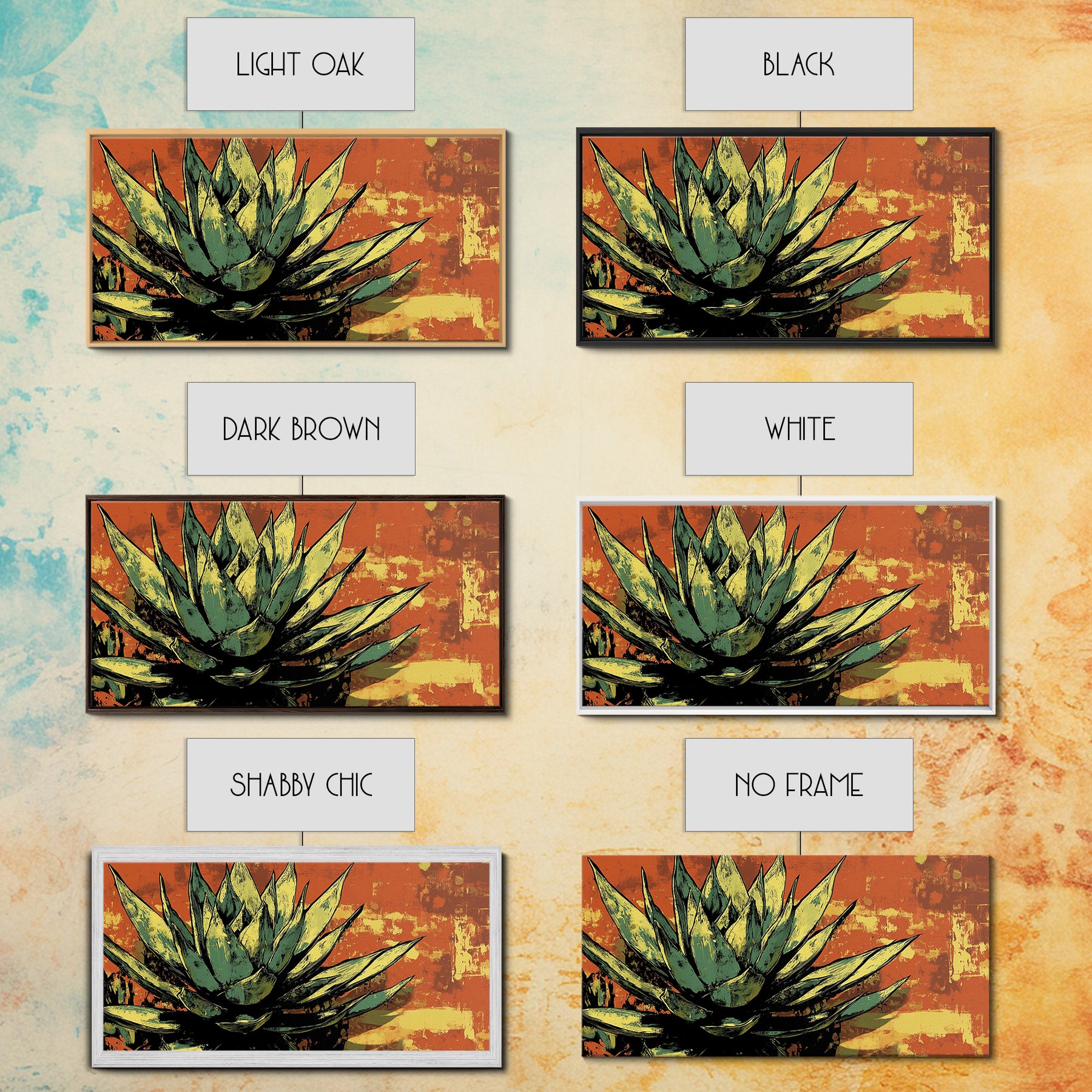 Blue Agave Pueblo Art Framed Canvas Print - Art of Arizona - Mexicano Home Decor - Chicano Art - Agave Painting - Bar Decor - Living Room Art
