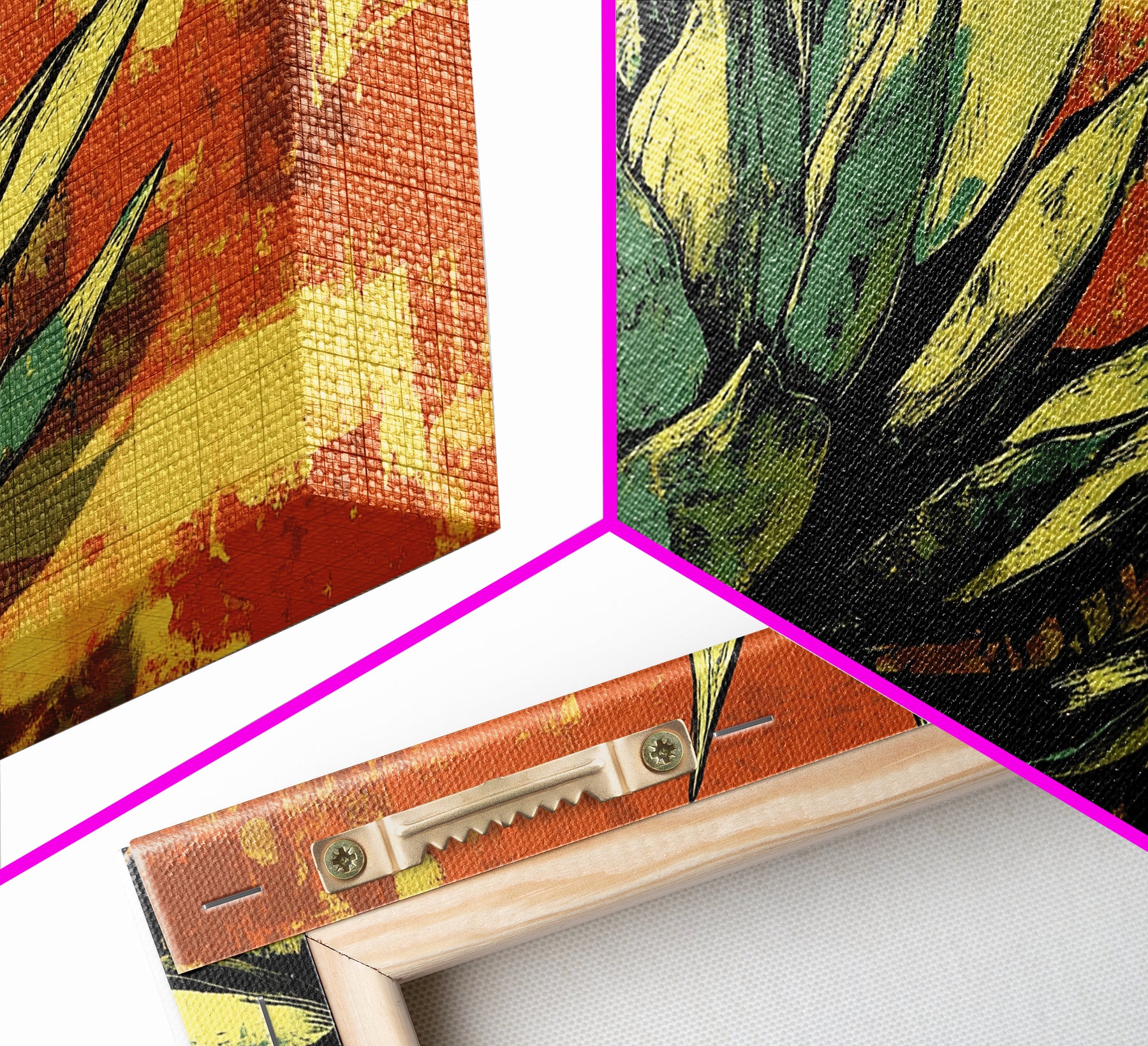 *Optional frames add a total of 1.5 inches to each dimension, for example a 10x20 canvas with a frame will be 11.5 by 21.5 inches total. All framed canvas are 1.5" total depth.