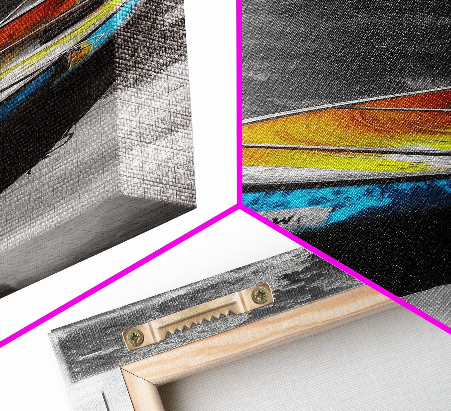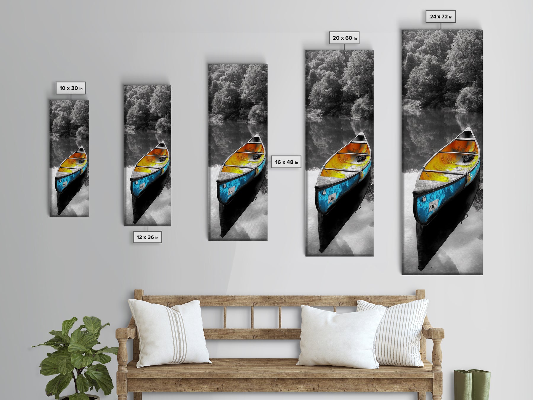 *Optional frames add a total of 1.5 inches to each dimension, for example a 10x20 canvas with a frame will be 11.5 by 21.5 inches total. All framed canvas are 1.5" total depth.