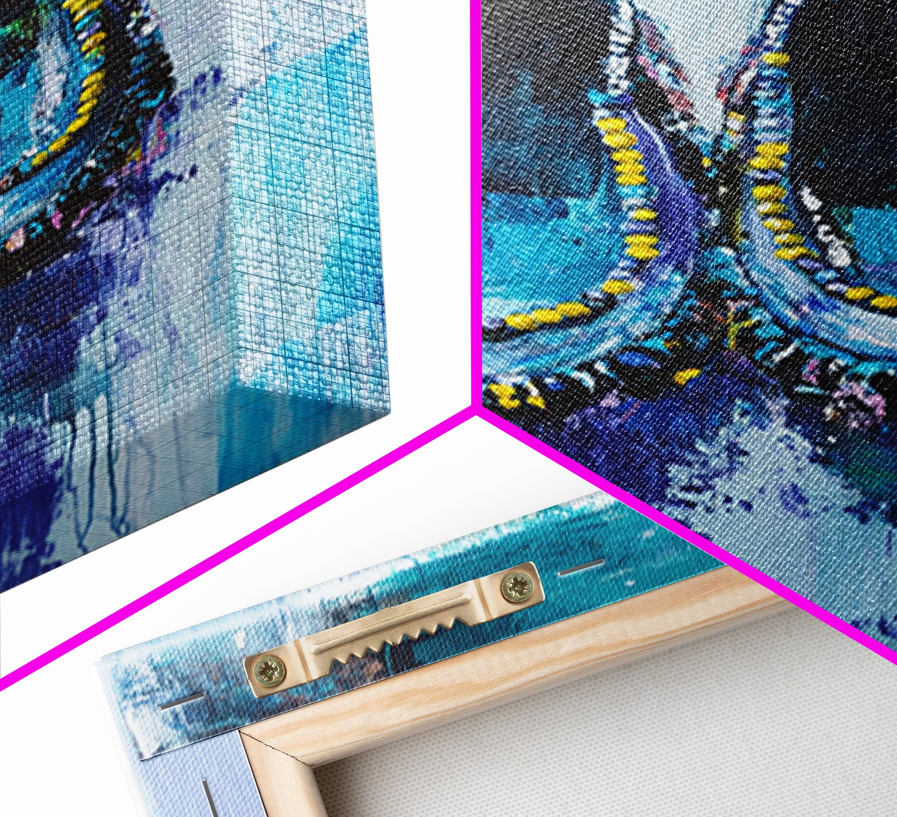 Hello and thank you for taking the time to view our modern high quality giclée artwork! We offer both posters and stretched canvas prints. Our posters are printed on Ultra Matte 60 lb / 230 GSM high quality photo paper, with a thickness of 10 mil. Our canvases are printed on museum grade 350 GSM canvas material with ECO friendly archival grade ink, then hand stretched and stapled over premium, FSC certified and shrink resistant frames. Designed and built to last a lifetime.