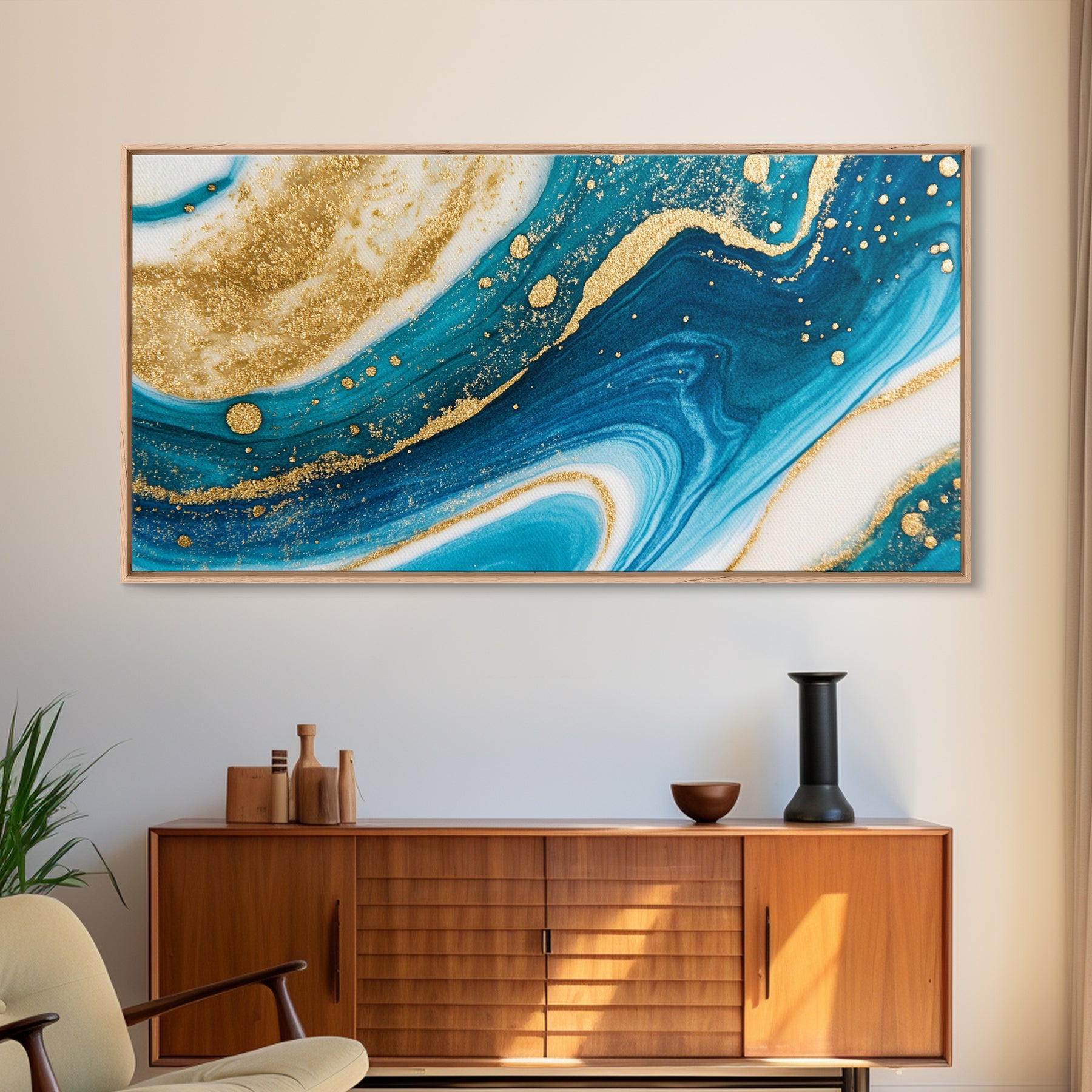 Blue, White and Gold Marble Canvas Print - Marble Painting - Centerpiece Wall Art - Statement Piece - Bold Artwork - Trendy Art - Abstract Art
