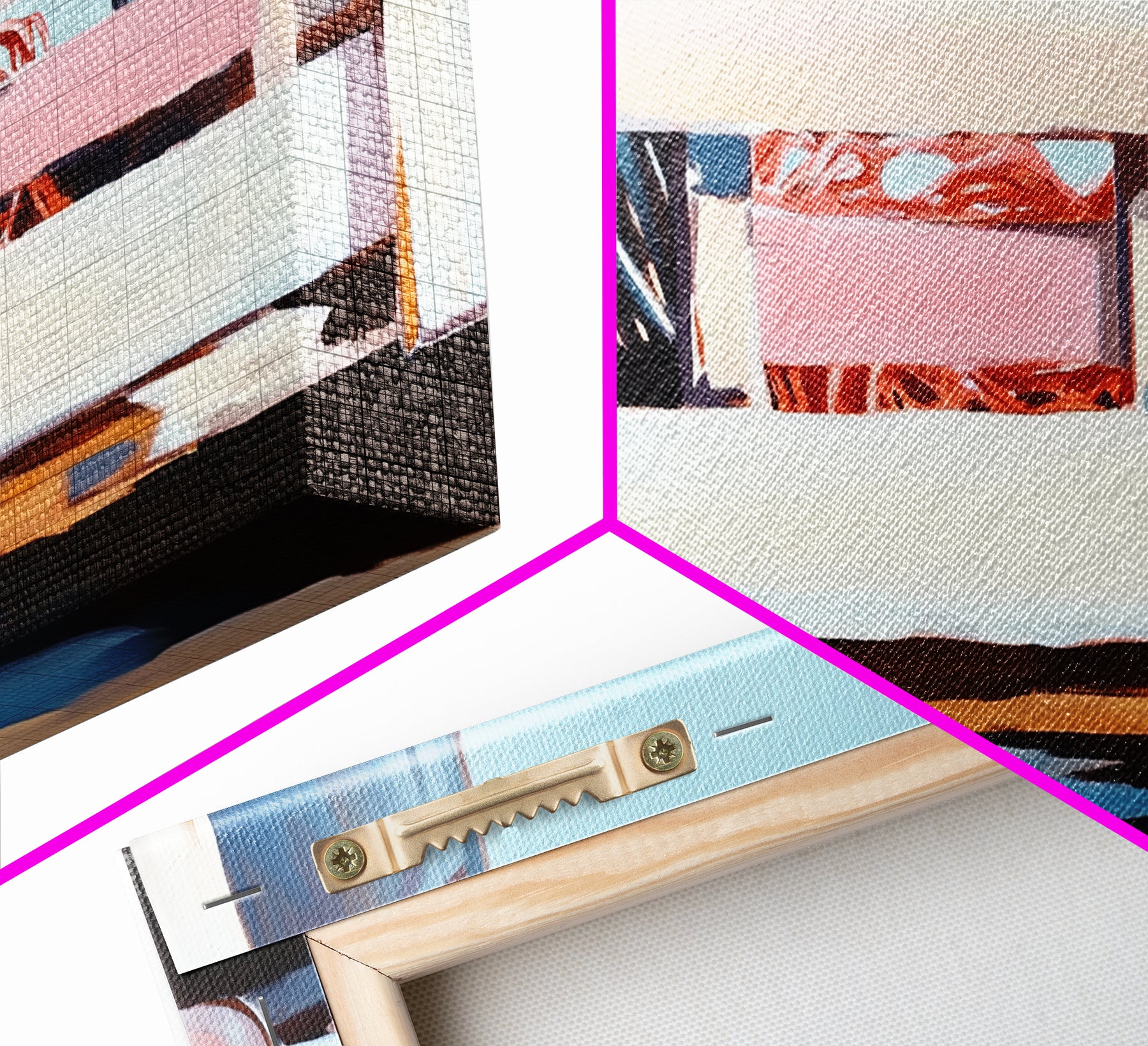 Hello and thank you for taking the time to view our modern high quality giclée artwork! We offer both posters and stretched canvas prints. Our posters are printed on Ultra Matte 60 lb / 230 GSM high quality photo paper, with a thickness of 10 mil. Our canvases are printed on museum grade 350 GSM canvas material with ECO friendly archival grade ink, then hand stretched and stapled over premium, FSC certified and shrink resistant frames. Designed and built to last a lifetime.