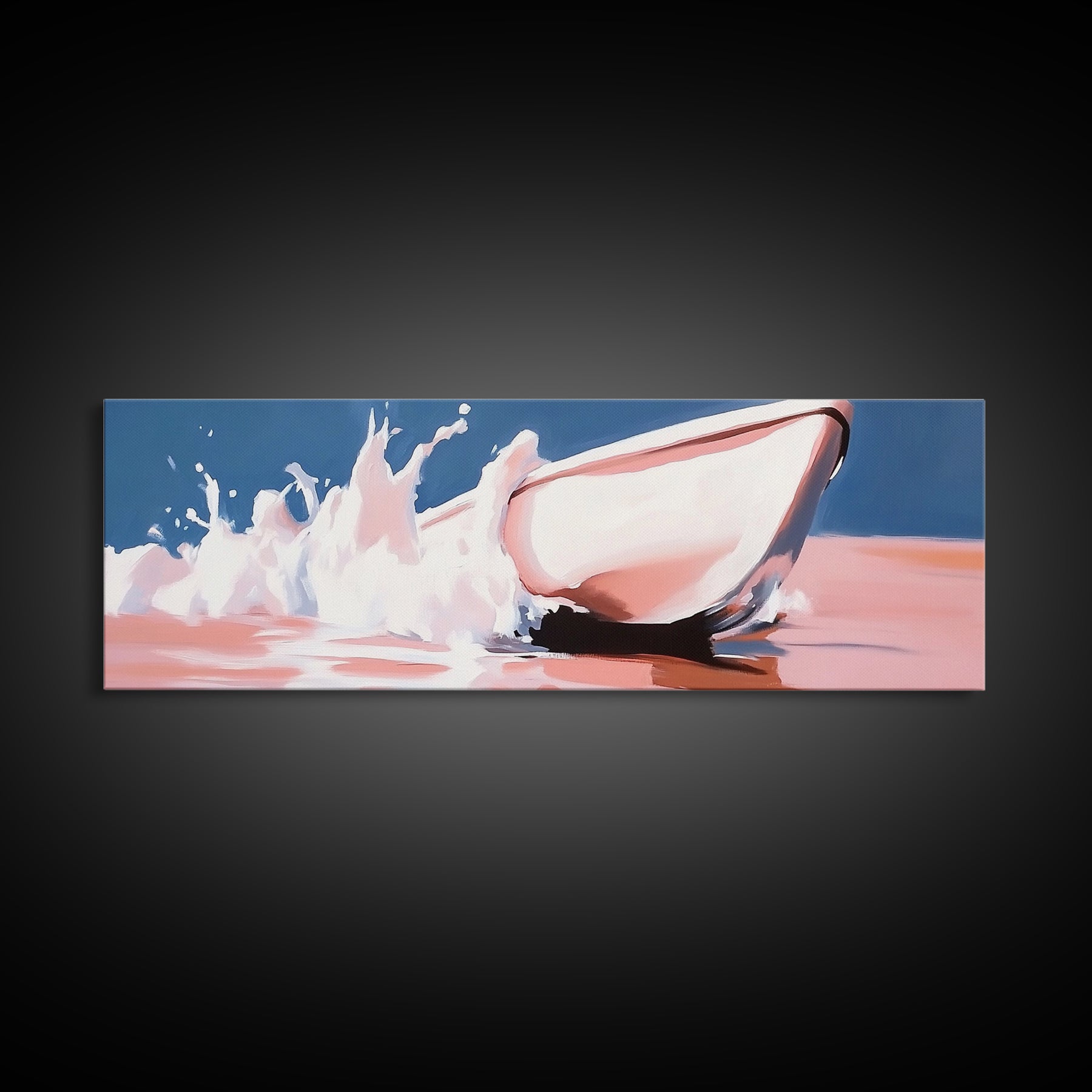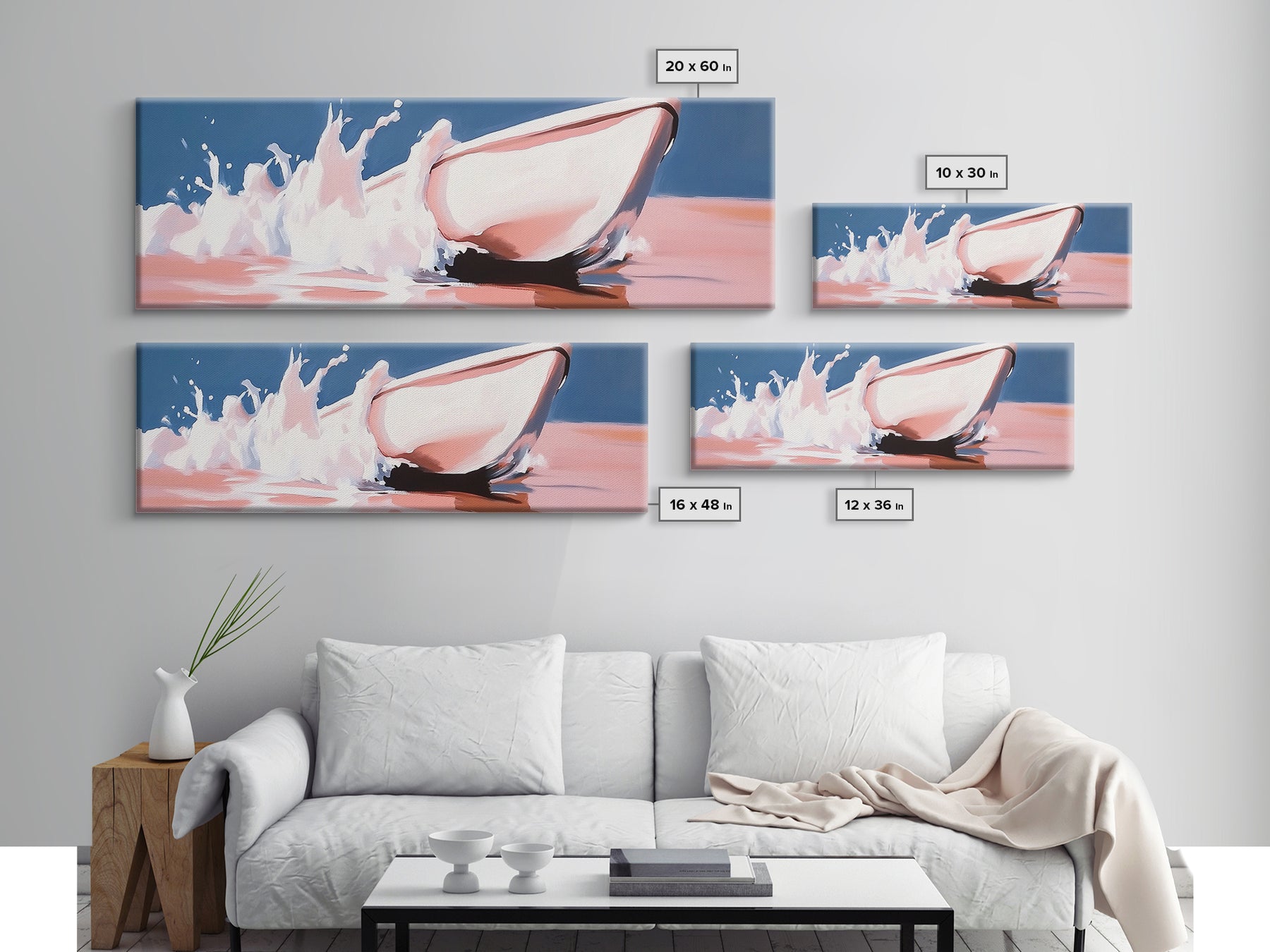 Boat Splash, Ocean Motion, Nautical Art, Framed Canvas Print, Coastal Wall Decor, Relaxing Beach Scene, Minimalist Seascape