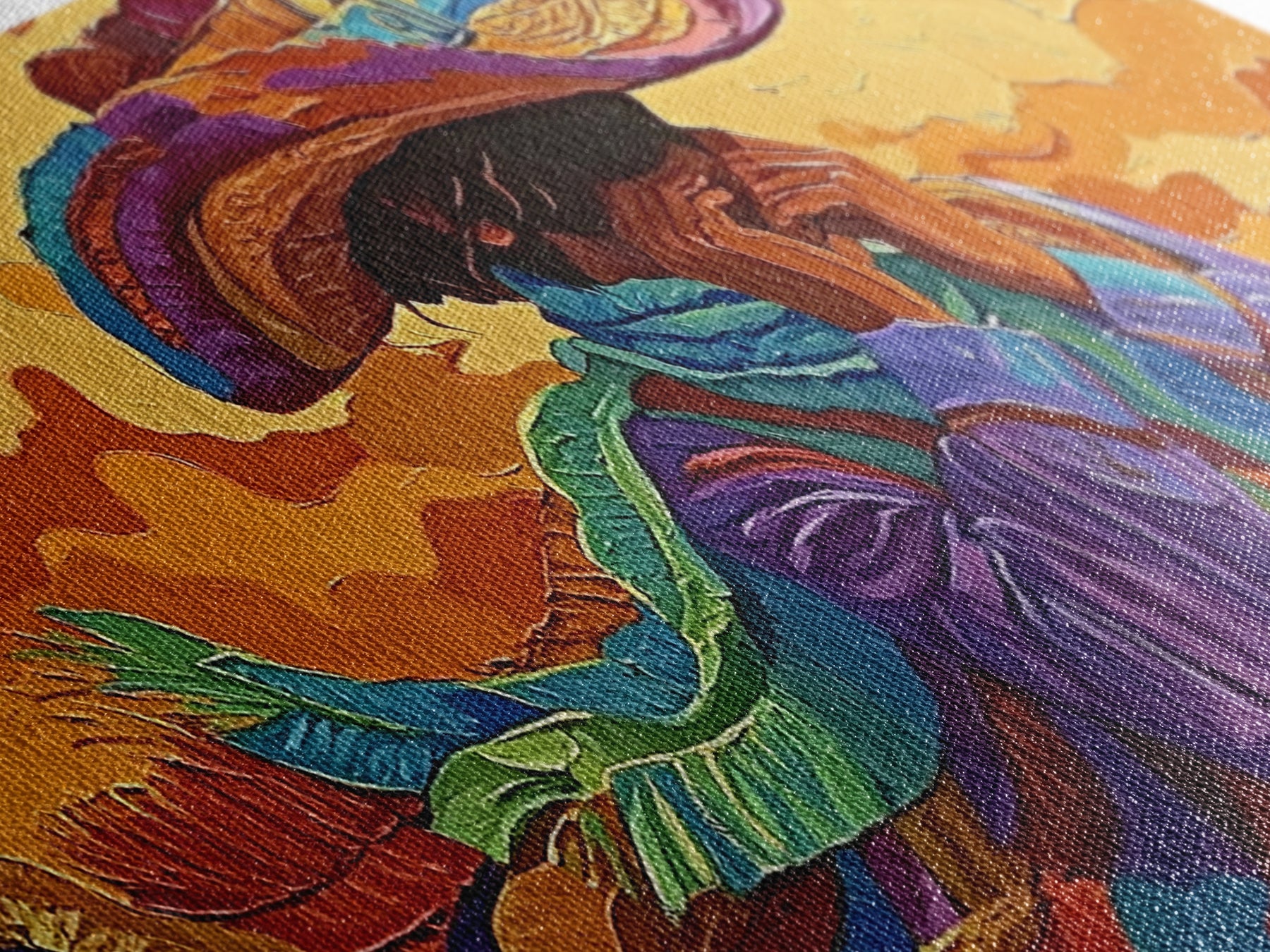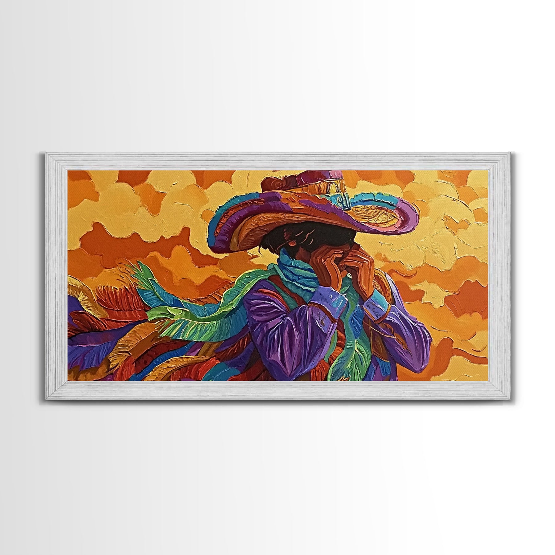 Bold Cowboy Portrait, western art, chicano art, rustic wall art, southwest wall art, moody art, colorful oil painting, canvas print